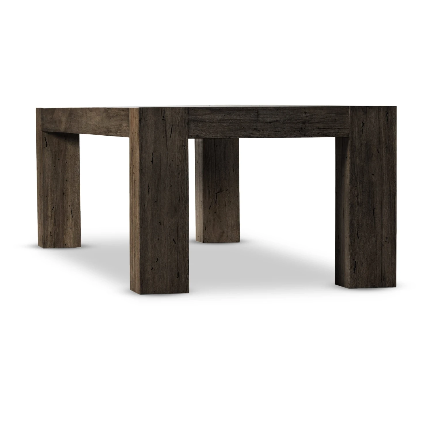 Made from thick-cut oak veneer with a faux rustic finish made to emulate wormwood oak, this clean-lined dining table features chunky squared legs and dovetail joinery detailing. Seats 10 comfortably.