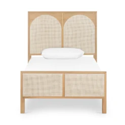 Au naturale. A light oak bed frame features wood-backed cane arches and panel footboard detailing, for a soft, neutral look with lasting modernity. Great in pairs. This bed is not compatible with an adjustable mattress.