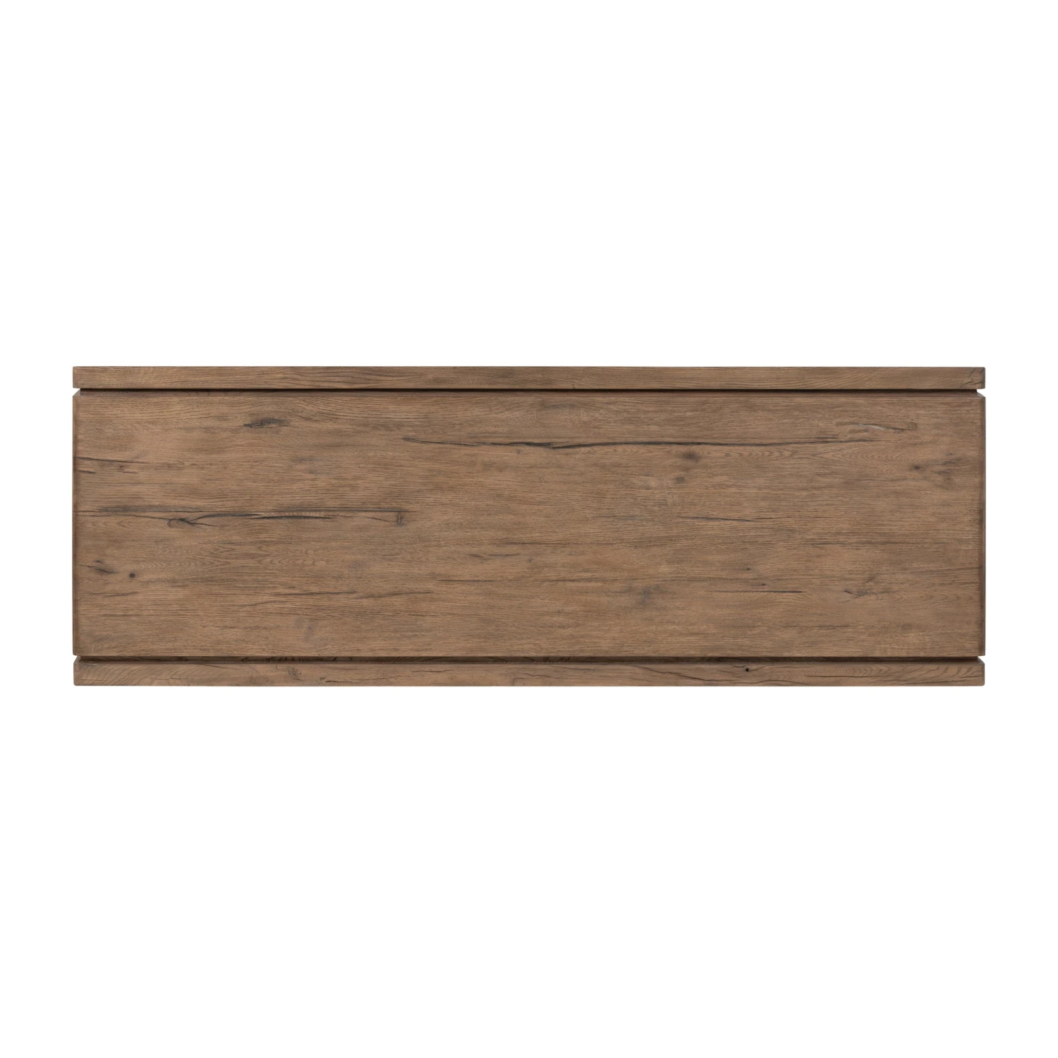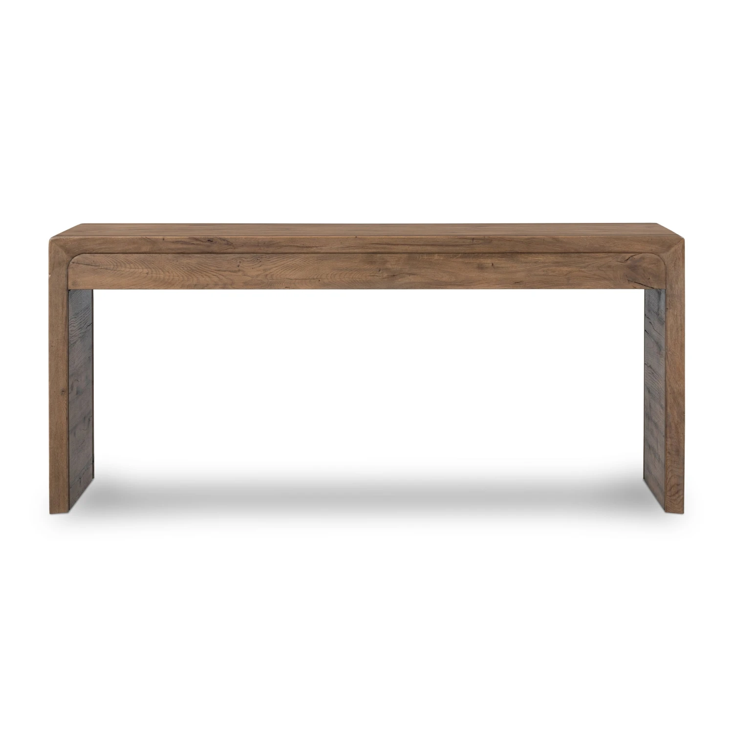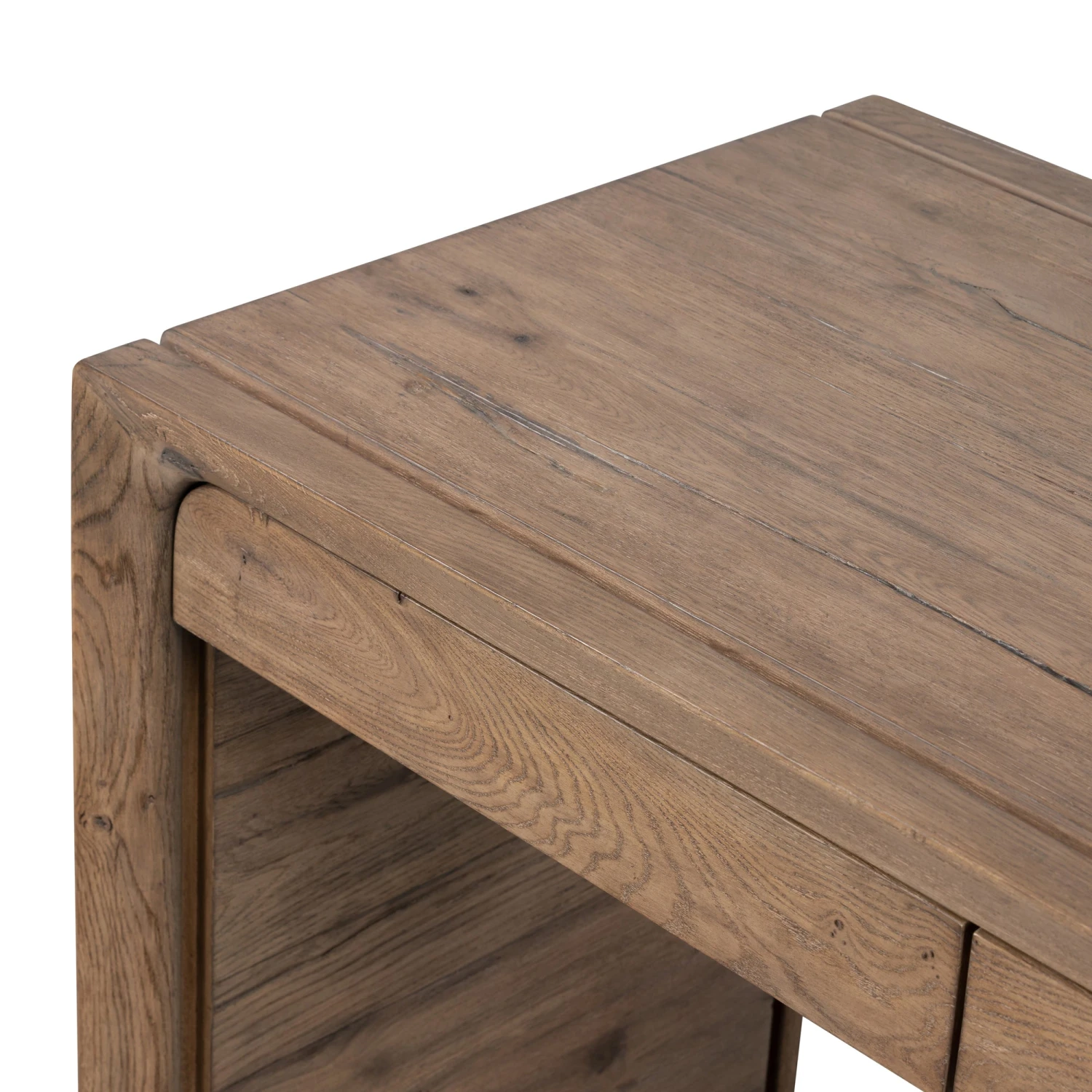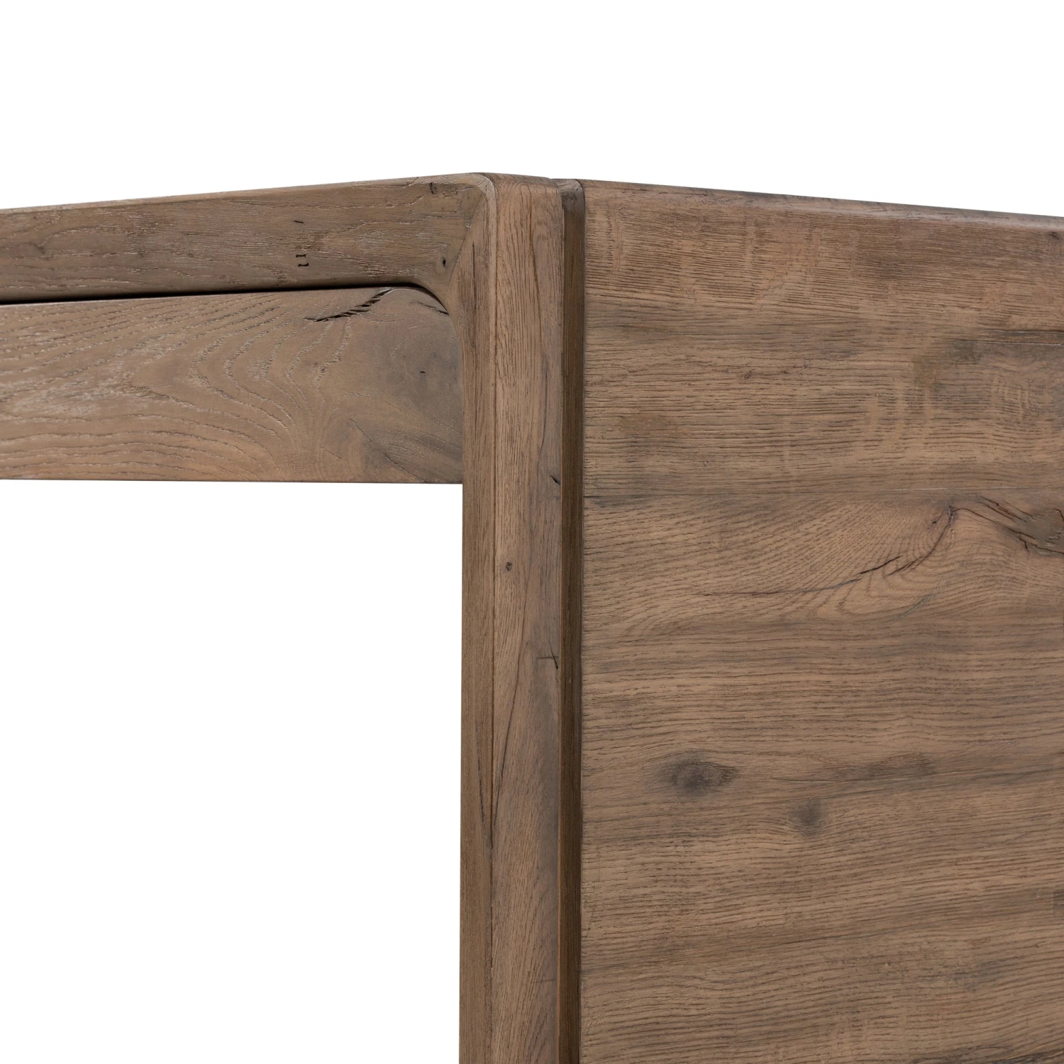 Made from solid reclaimed oak finished in a rustic grey, this slim-profile desk shapes subtly curved corners, bringing a handcrafted look to a minimalist form. Designed in partnership with longtime Four Hands collaborator Thomas Bina and Brazilian designer Ronald Sasson.
