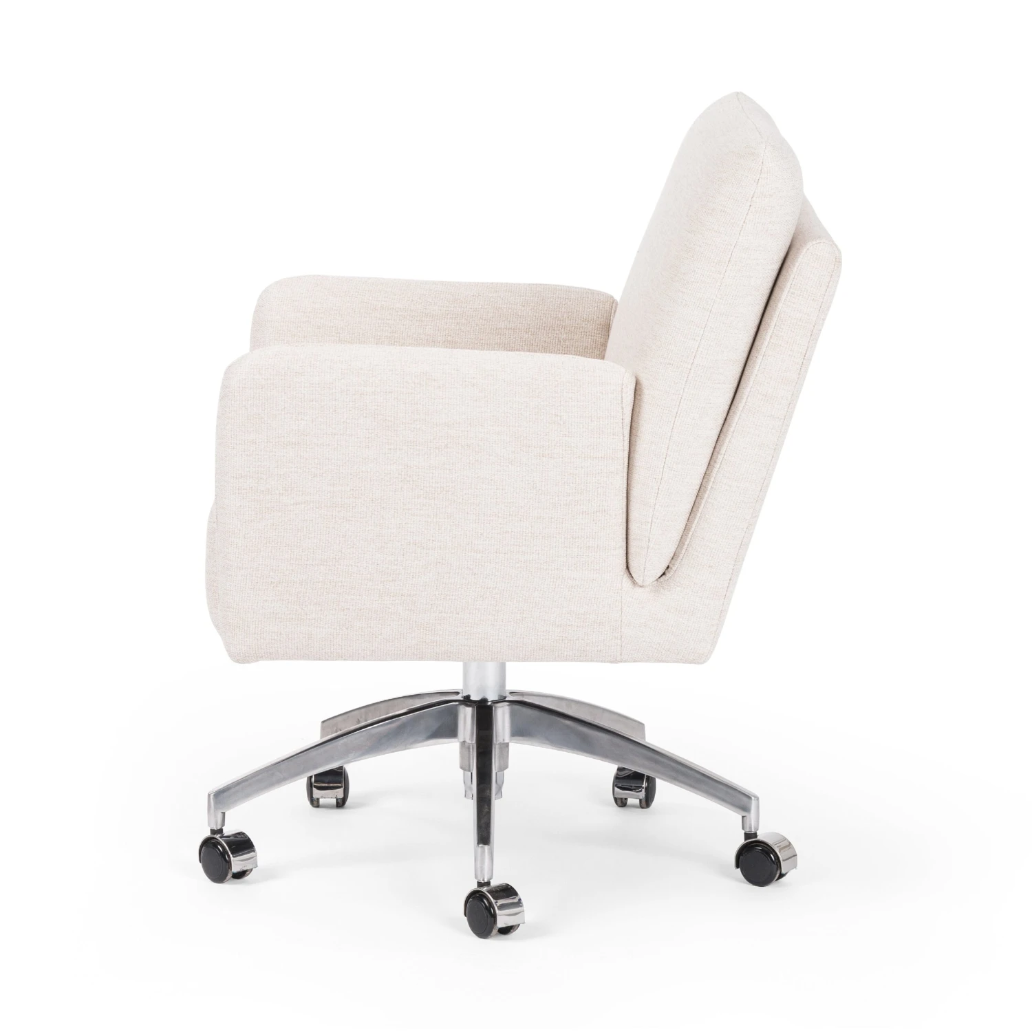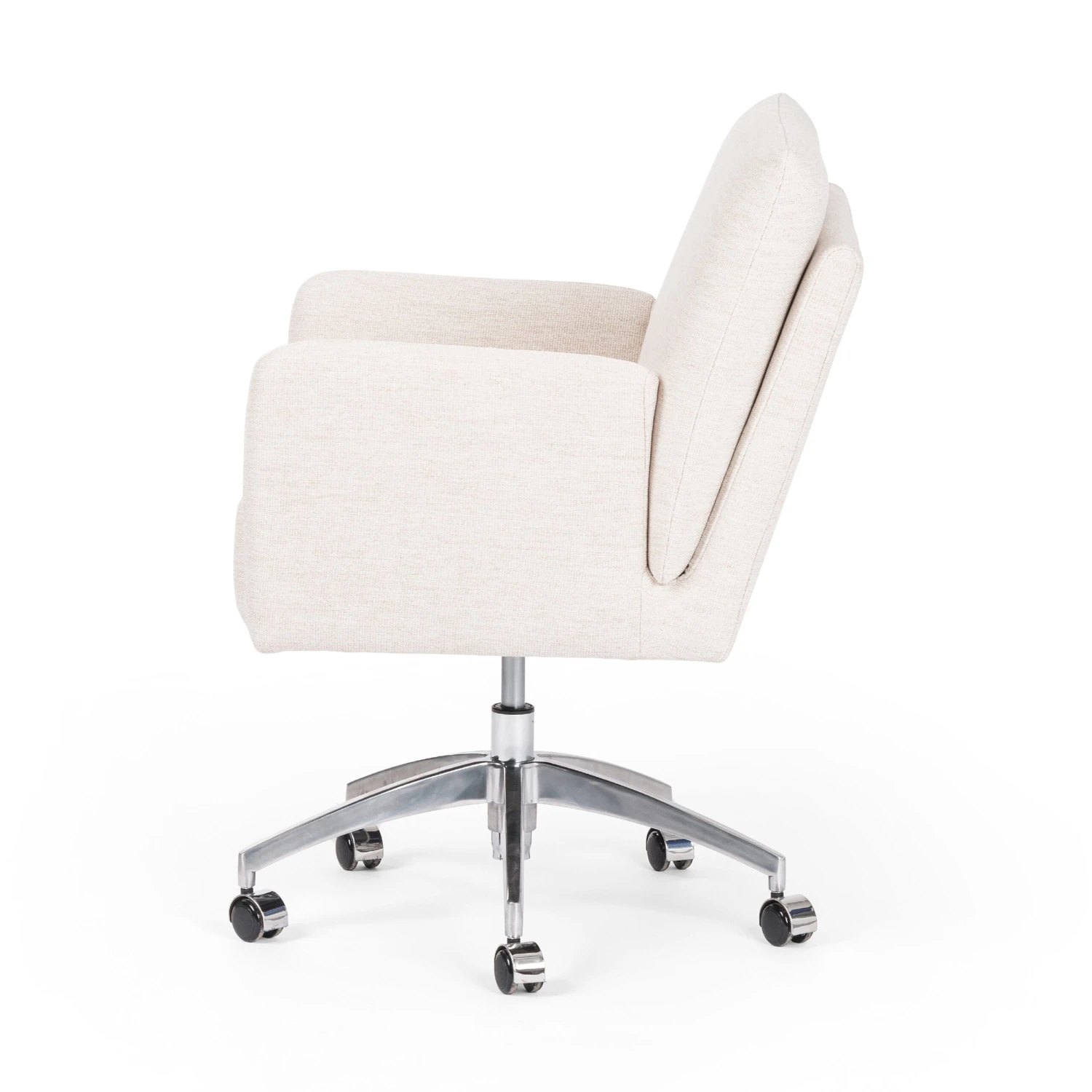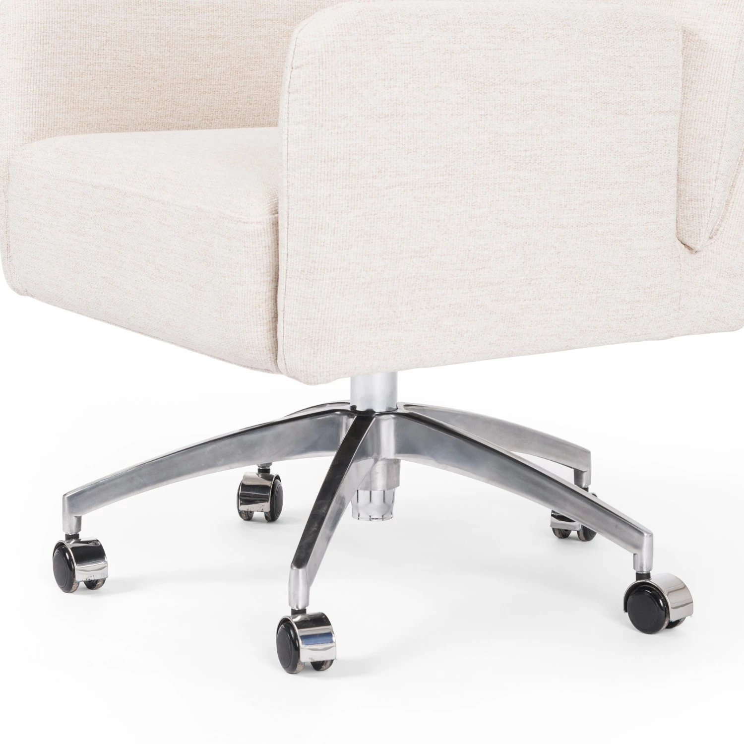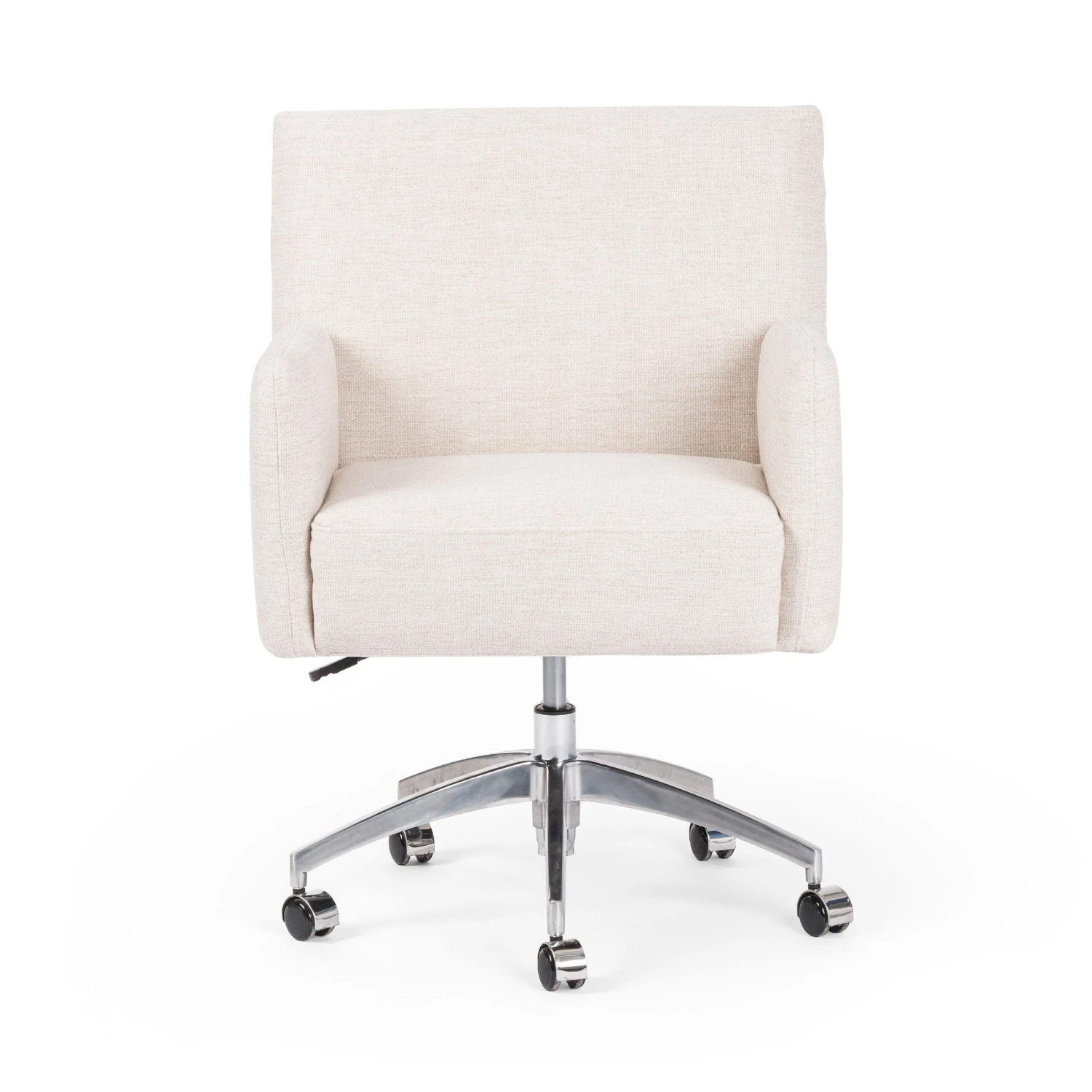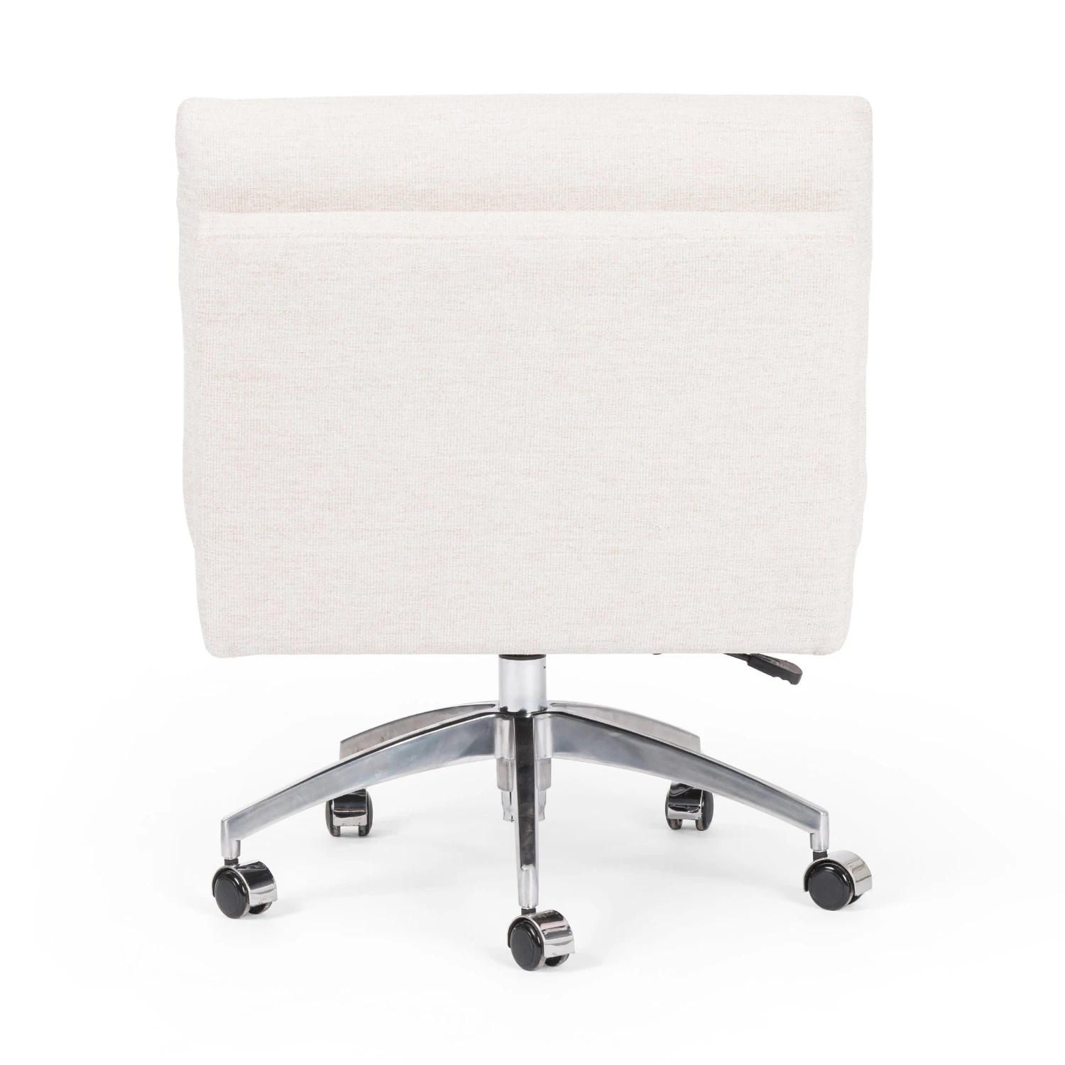 Stylish simplicity. Comfortable ivory polyester pairs with a polished aluminum swivel base, featuring casters plus height adjustability for modern ease.