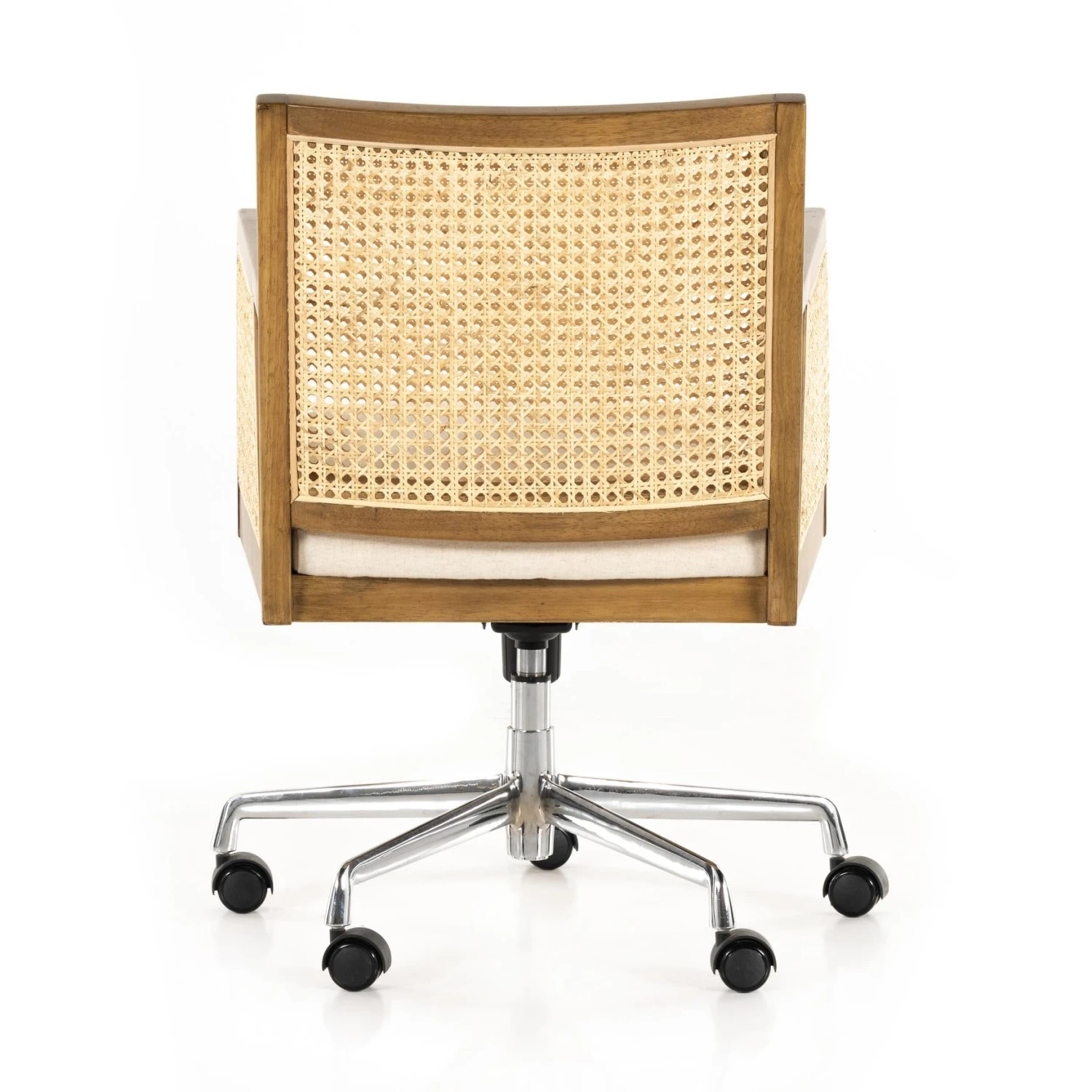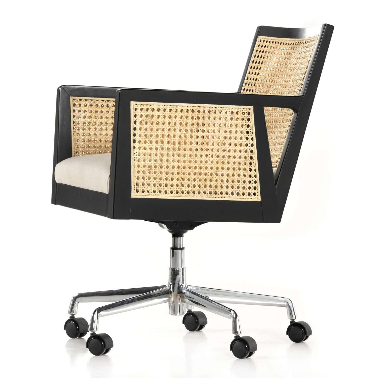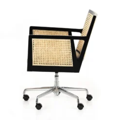 Mixed materials refresh retro styling. Toasted nettlewood frames a textural inlay of natural cane for great contrast, while performance fabric, adjustable seating and casters bring sensibility to the modern office. Performance fabrics are specially created to withstand spills, stains, high traffic and wear, ensuring long-term comfort and unmatched durability.