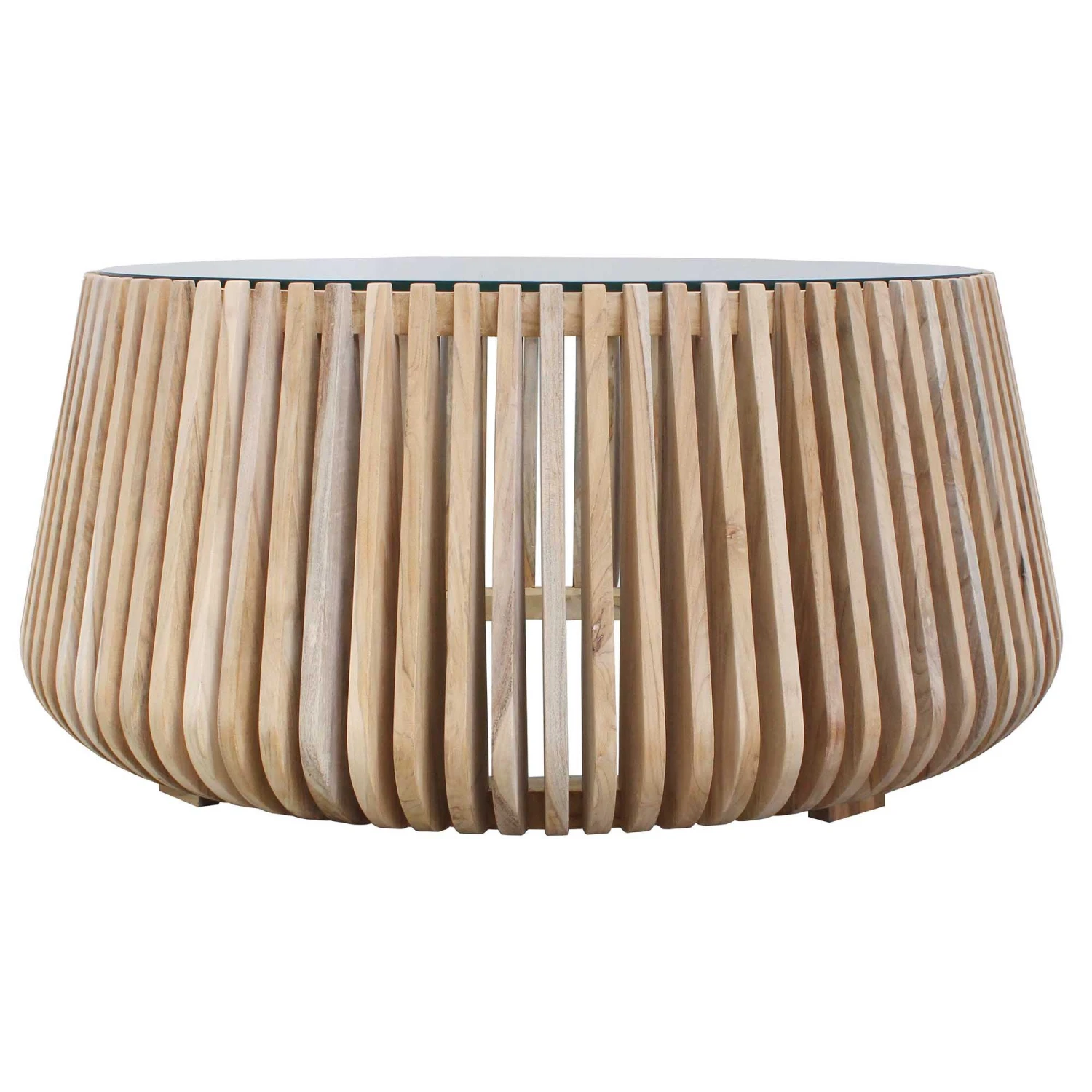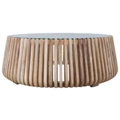 Unfinished plantation teakwood slats with 8mm thick tempered glass.