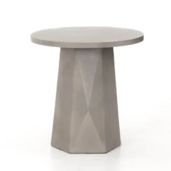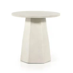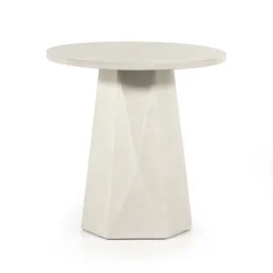 White-finished concrete forms a faceted base for impact from every angle. A rounded top is ready to make an organic statement indoors or out. Cover or store inside during inclement weather and when not in use.