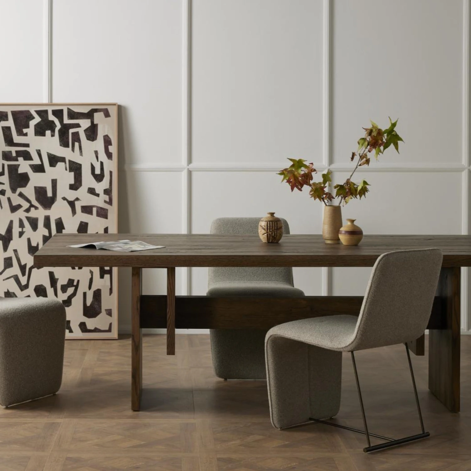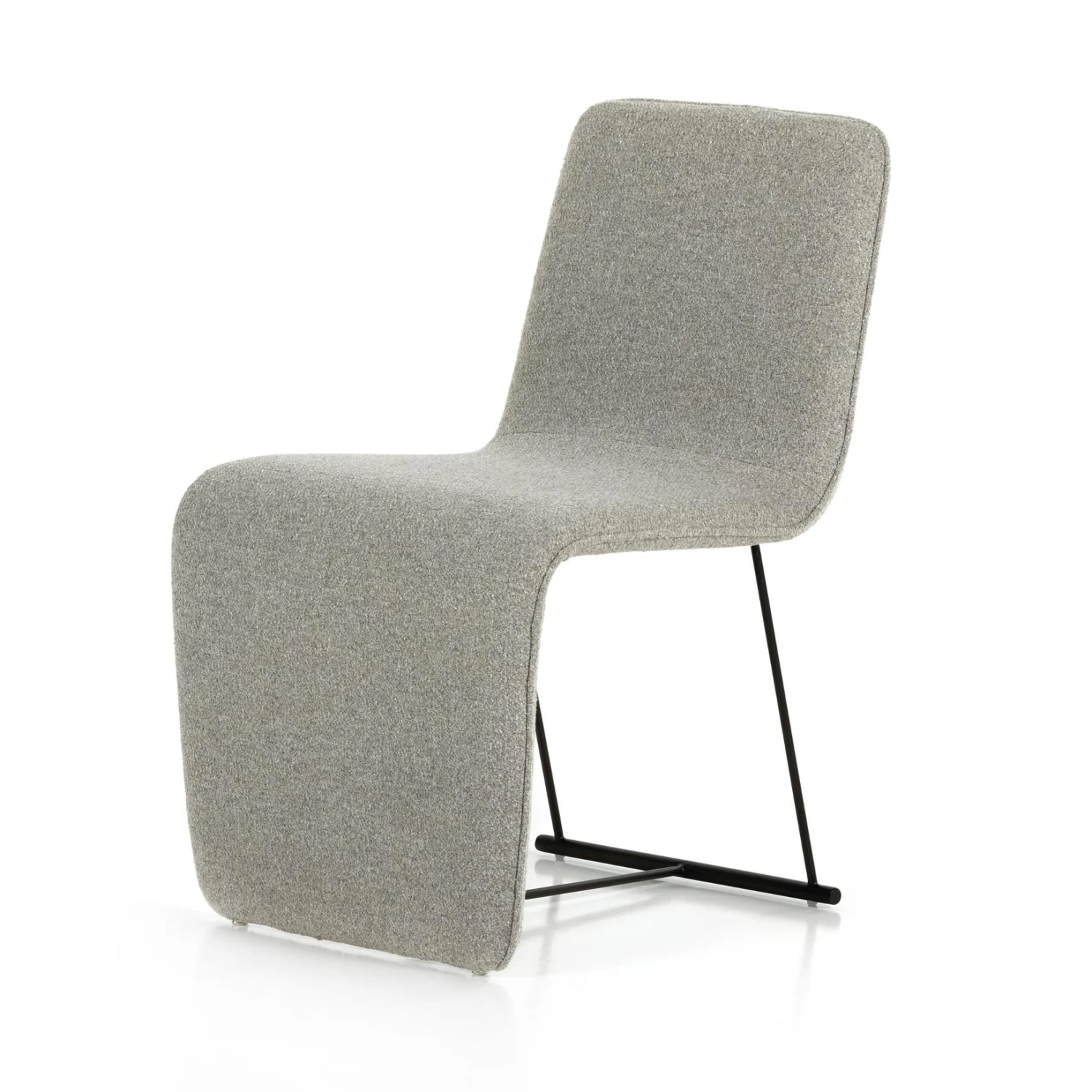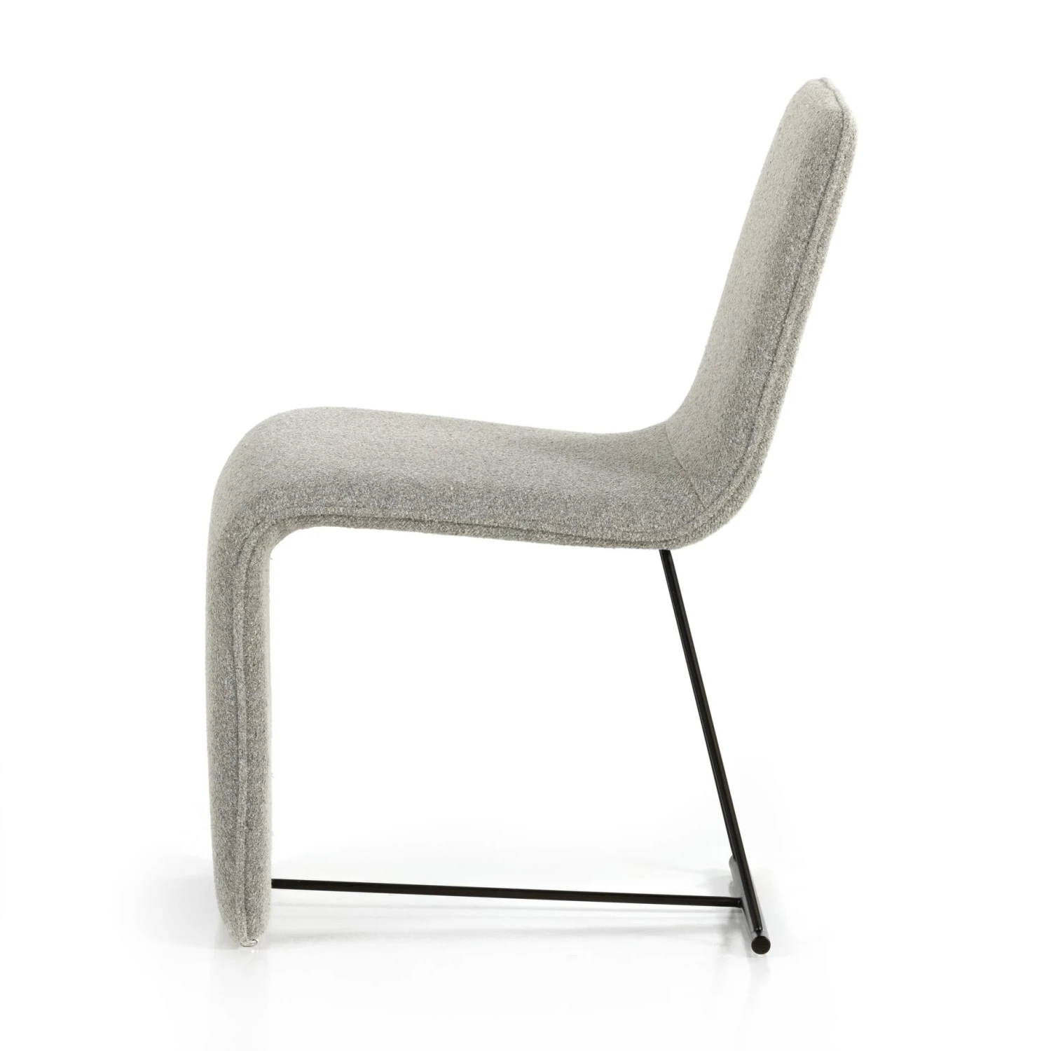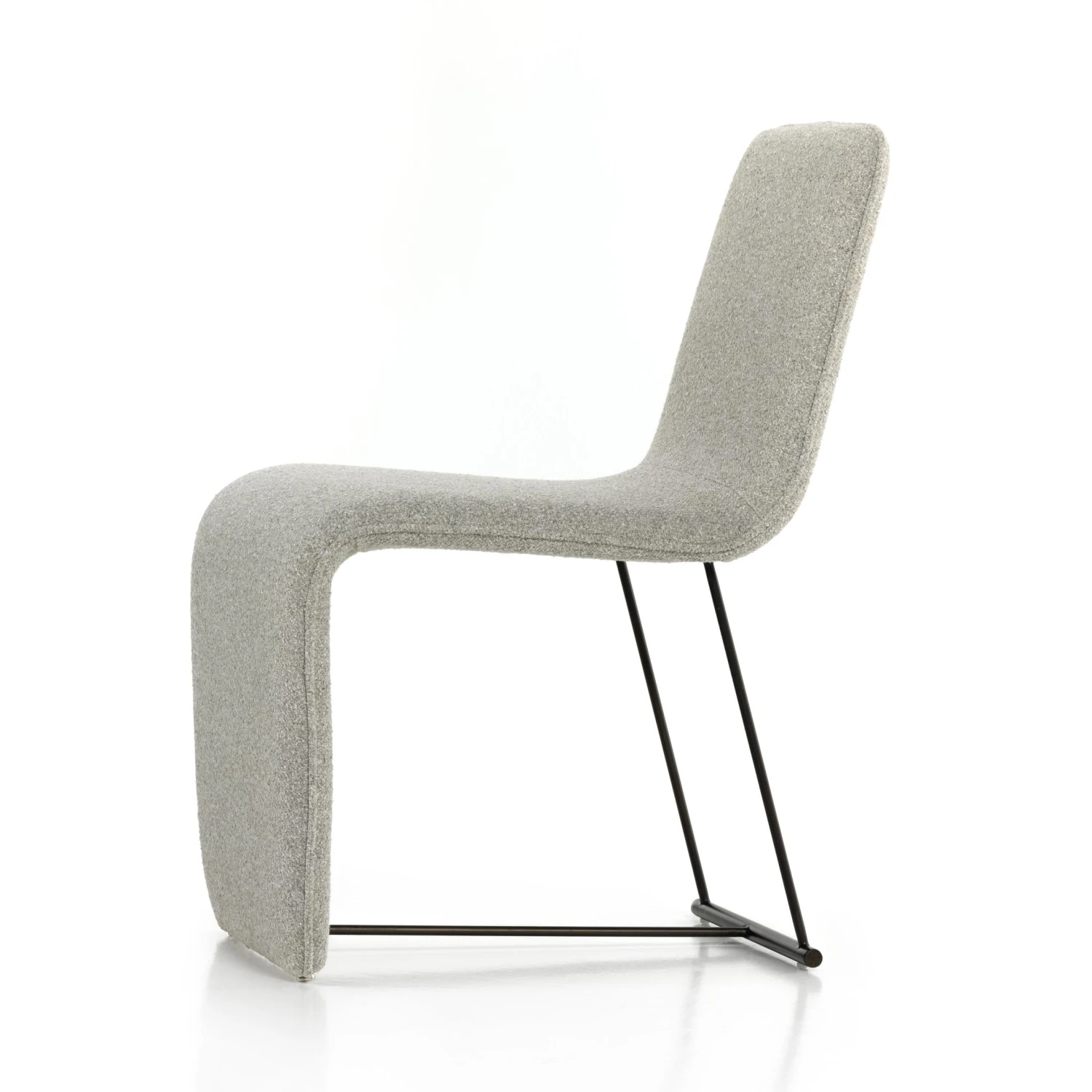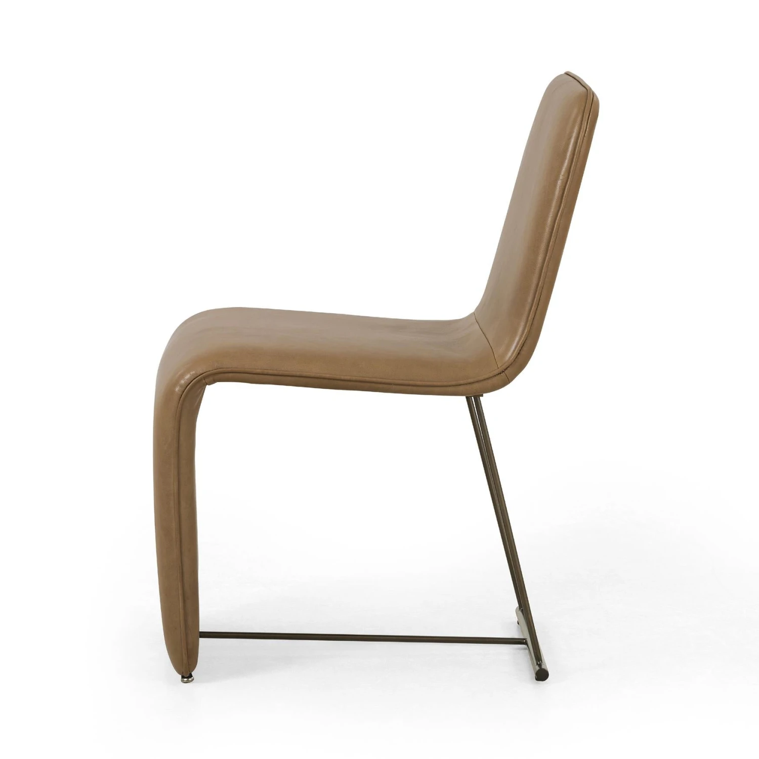 A shape-centric show-stopper. Made from buttery top-grain leather, taupe-colored seating coolly curves for an updated take on cantilever-style shaping. A spare bronzed iron frame lends lightness to the whole vibe.