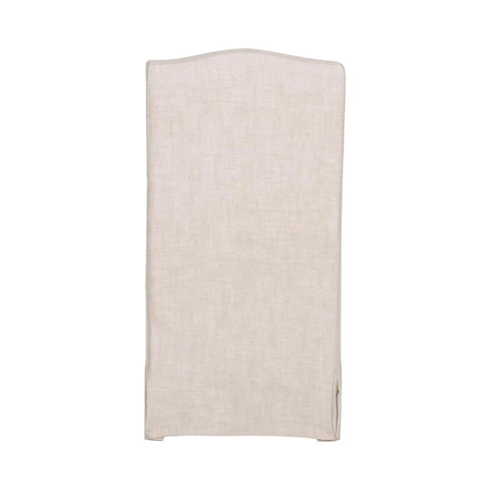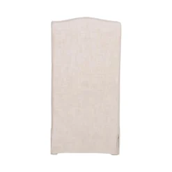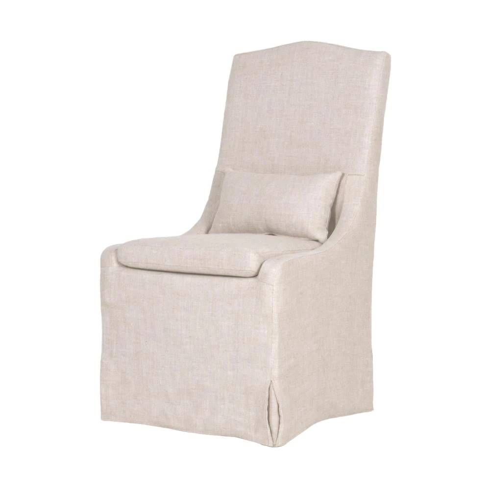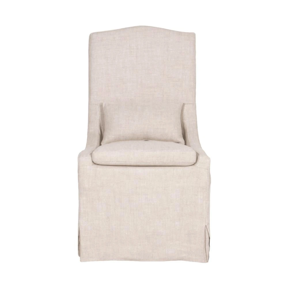 Add a touch of class and sophistication to your kitchen or dining space with these upholstered dining chairs. The side chairs feature a removable slip cover made with a beautiful performance French linen in a creamy bisque color. This slip cover design complements the scalloped seat back, giving them a classic look that would work well in either formal or informal dining spaces. Paired with a removable seat cushion and lumbar pillow, the chairs provide comfort with style and will be the perfect addition to any transitional or traditional dining room.