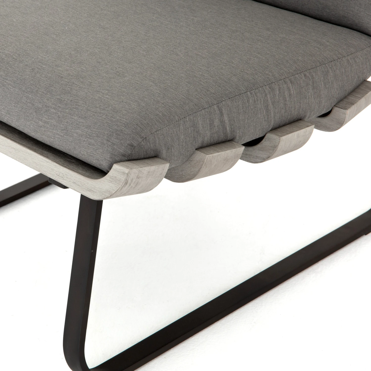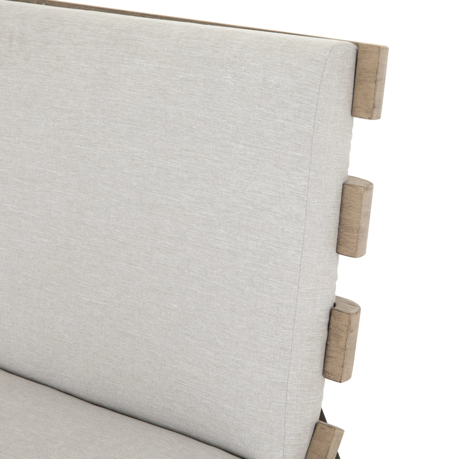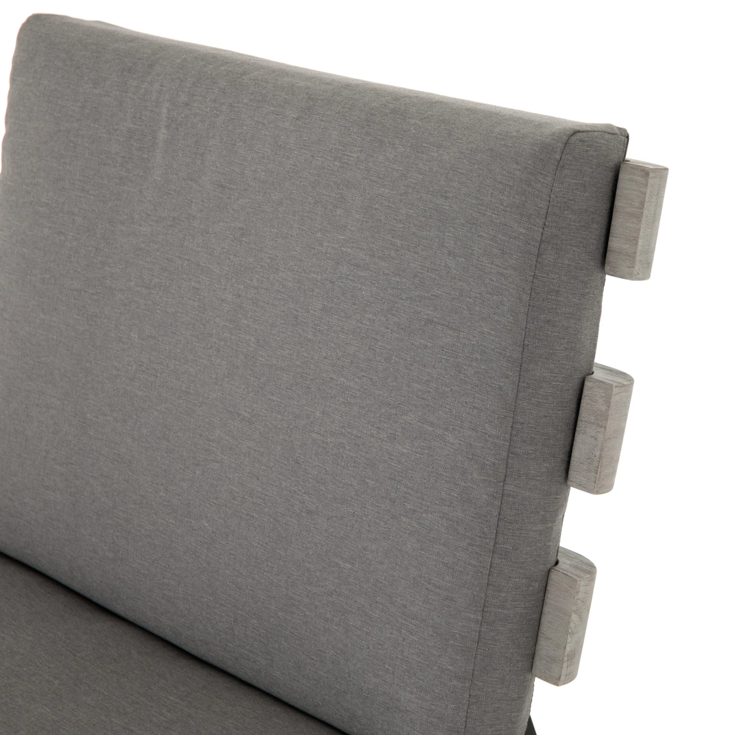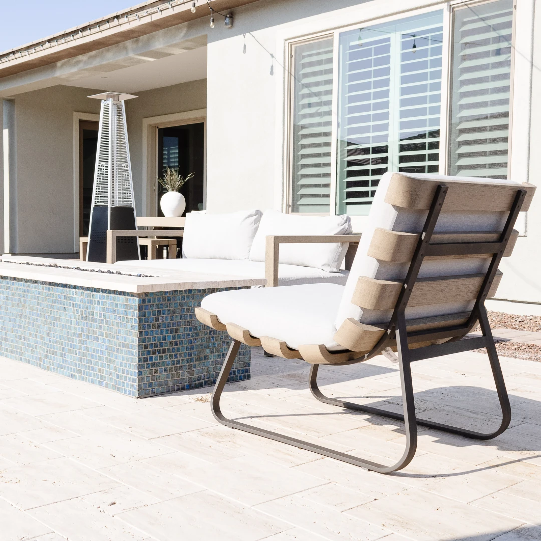 A slatted frame of FSC®-certified teak supports spacious lounge-style seating. Cushions are covered in UV-resistant, water-repellent fabric. Finished with bronze aluminum legs. Cover or store indoors during inclement weather and when not in use.