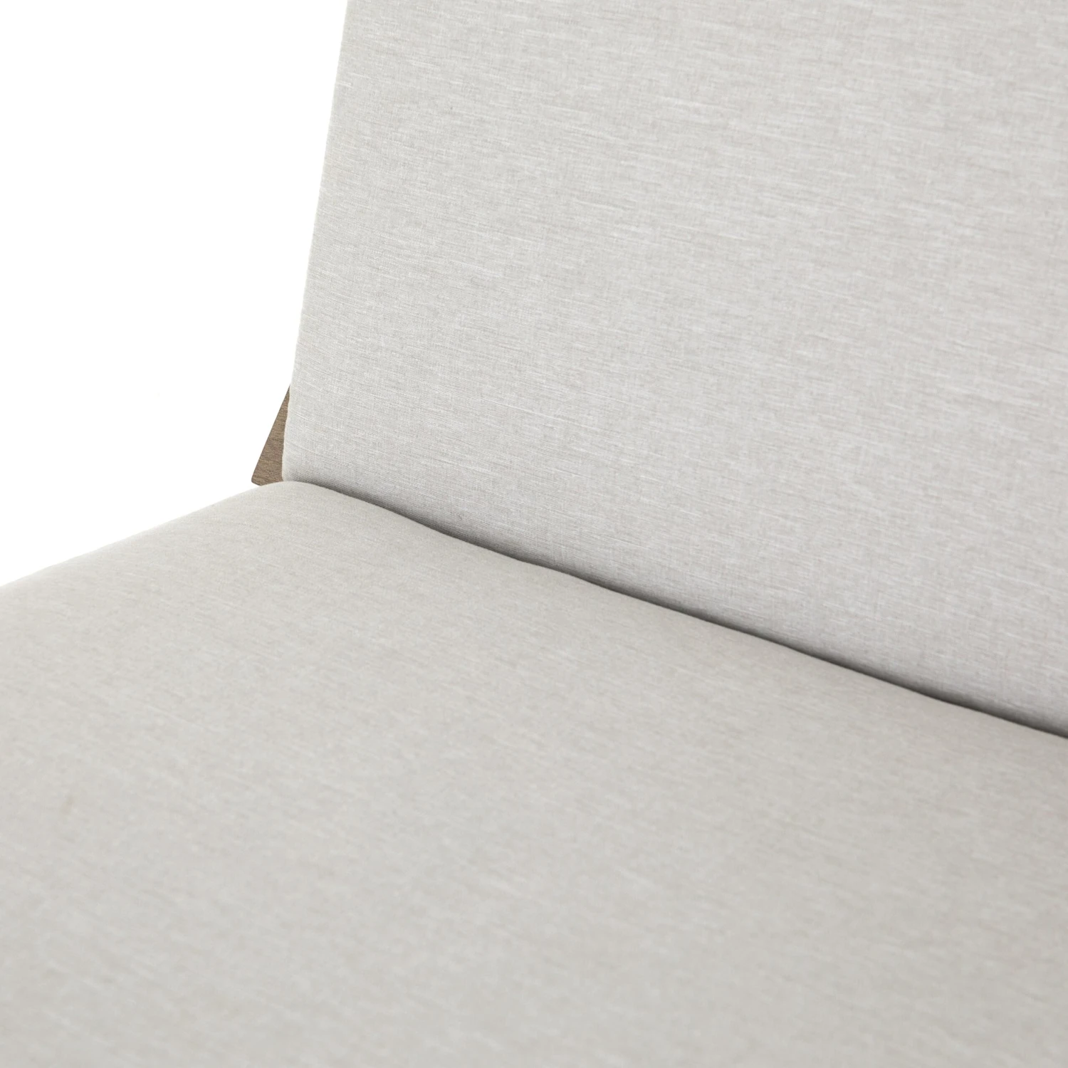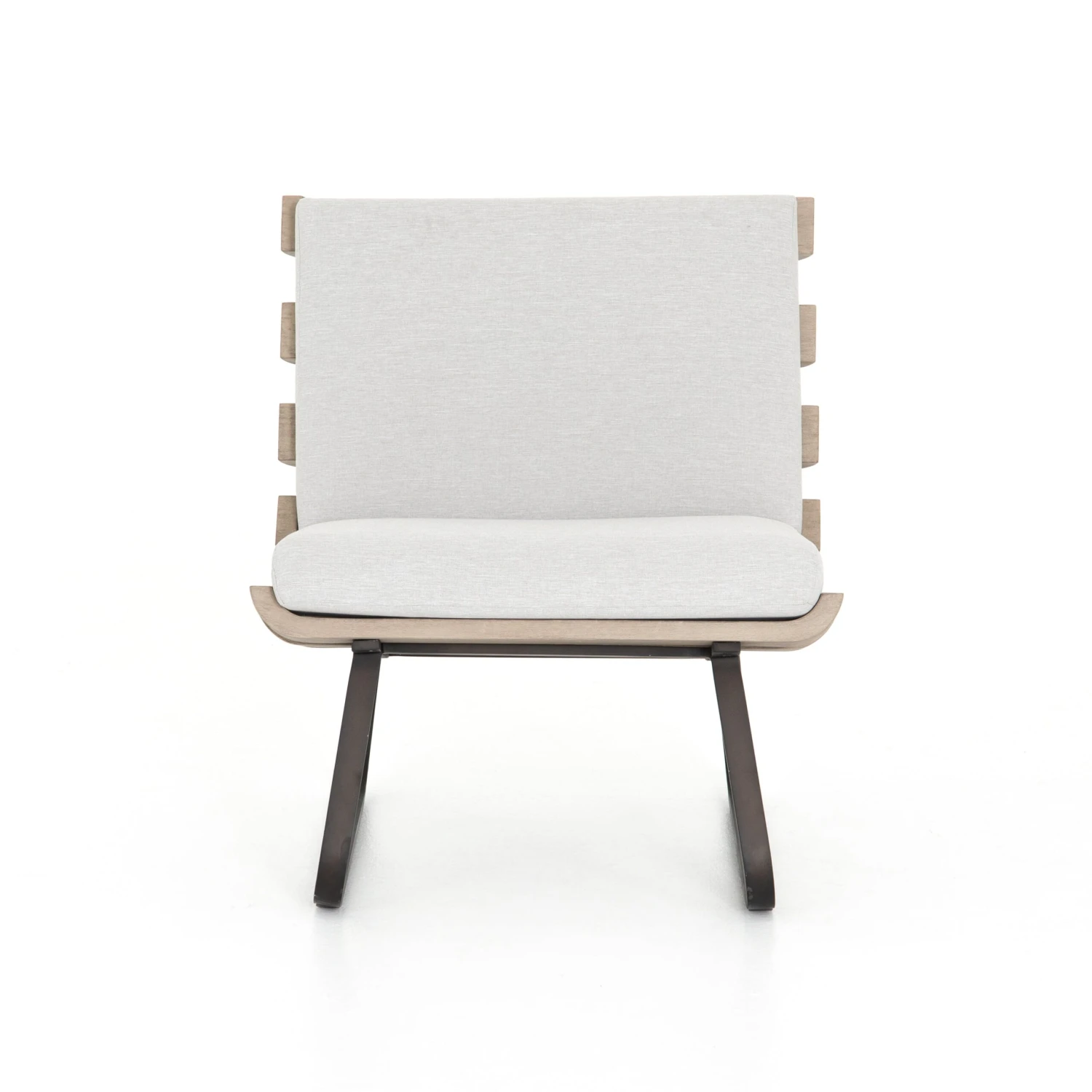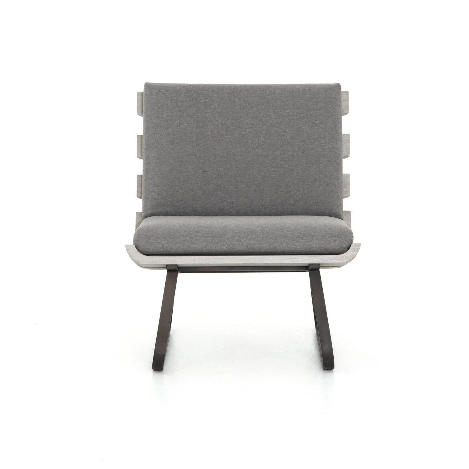 A slatted frame of FSC®-certified teak supports spacious lounge-style seating. Cushions are covered in UV-resistant, water-repellent fabric. Finished with bronze aluminum legs. Cover or store indoors during inclement weather and when not in use.