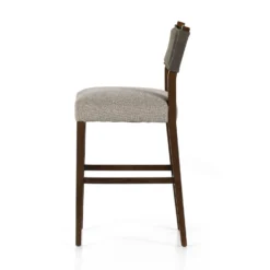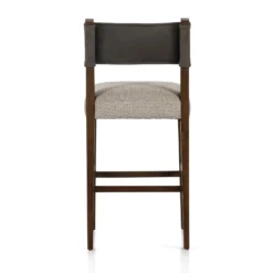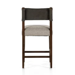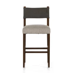 Perfectly sized for the counter, dark-finished parawood frames squared seating of high-performance fabric, with top-grain leather backing. Performance fabrics are specially created to withstand spills, stains, high traffic and wear, ensuring long-term comfort and unmatched durability.