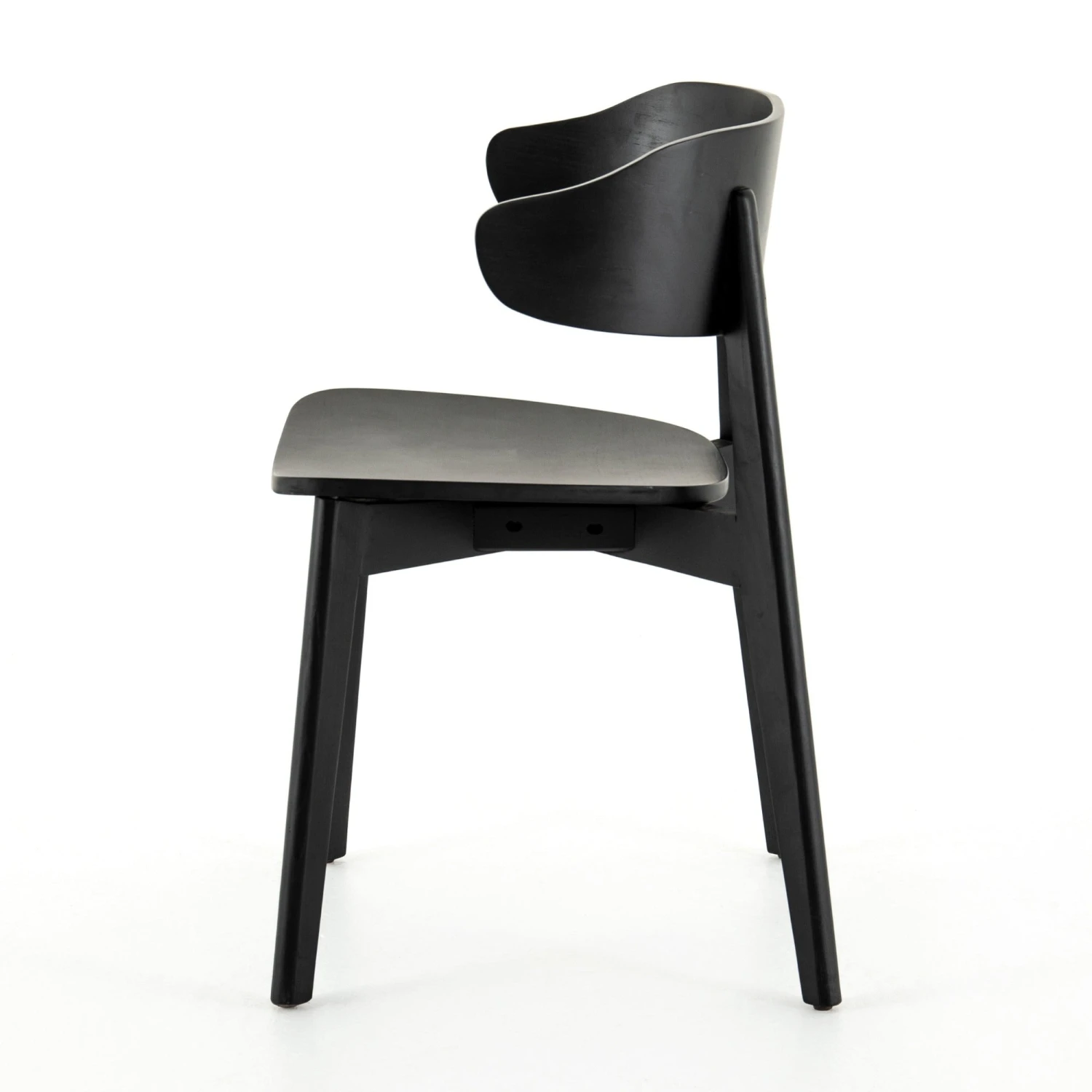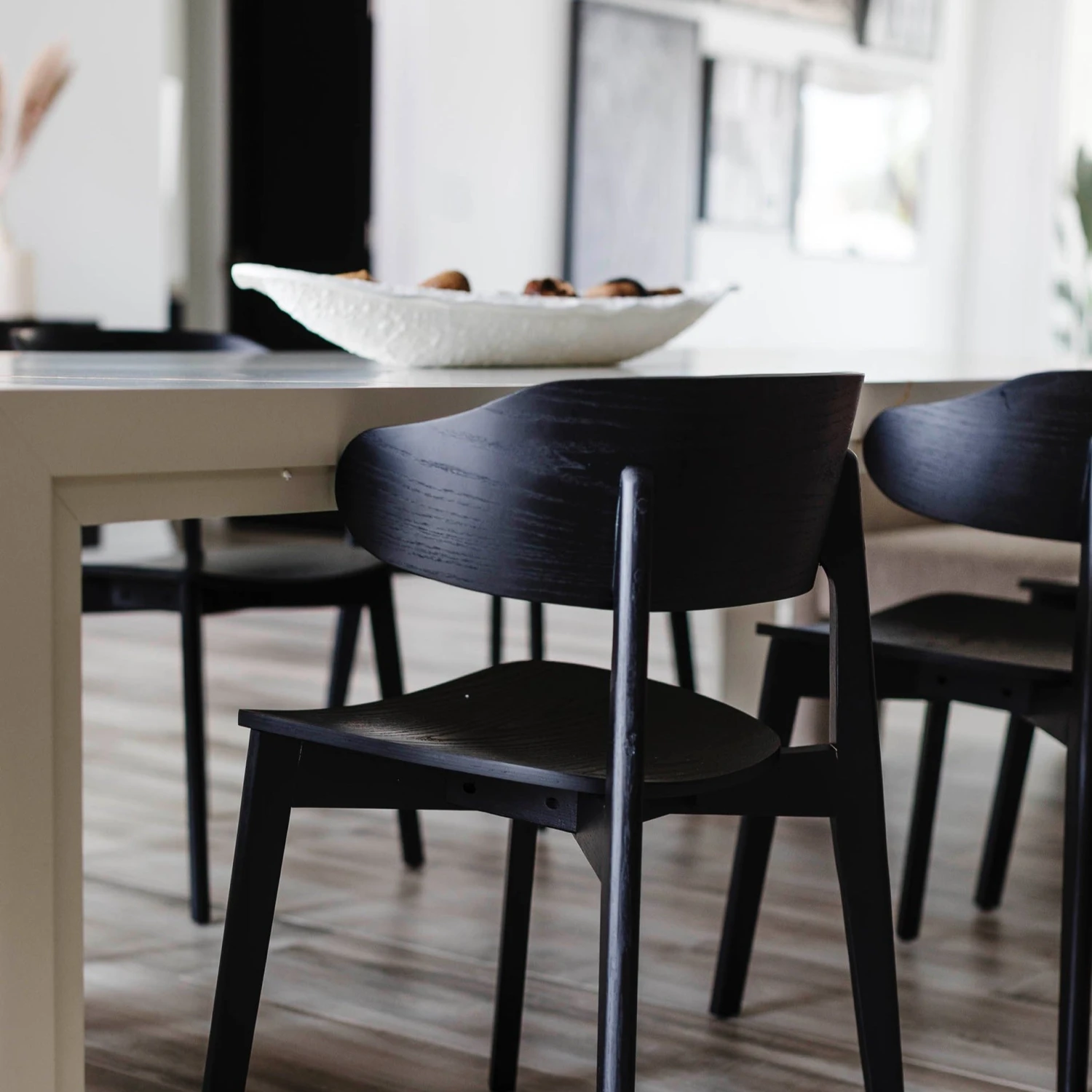 A fresh, exaggerated take on the wing-back dining chair. Finished in a natural hue, a mix of solid ash and ash veneer makes a modern and shapely seating statement with mid-century undertones.