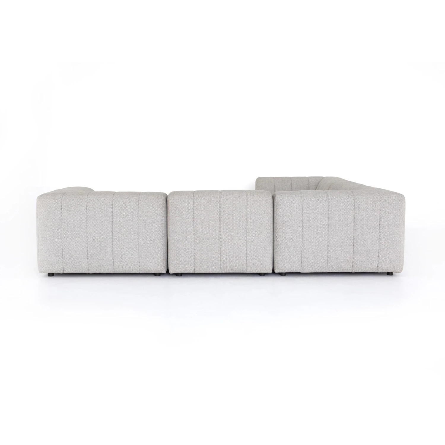Wide, vertical channels and low styling speaks to the Italian influence behind this outdoor-friendly five-piece sectional. Cover or store inside during inclement weather and when not in use.