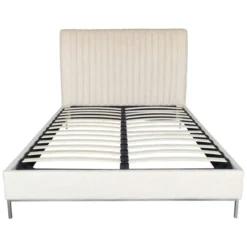 This classic upholstered bed has just what it takes to tie your bedroom together. Featuring an airy, poly blend upholstery with a buttonless tufted headboard in a light oatmeal color and finished with a chrome base. This bed offers brilliant style and soft textures that make it the perfect addition to your bedroom. Available in king and queen sizes.