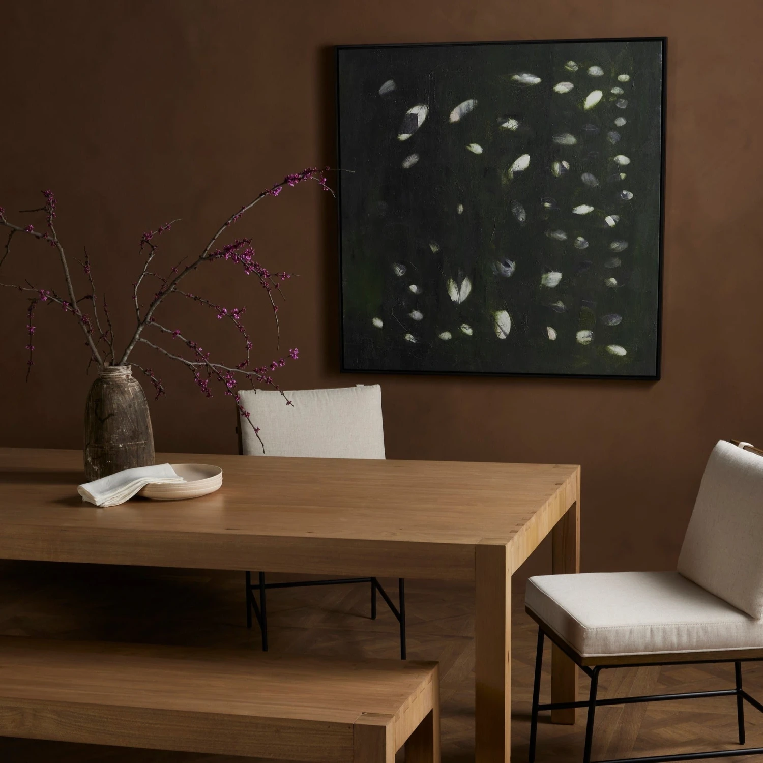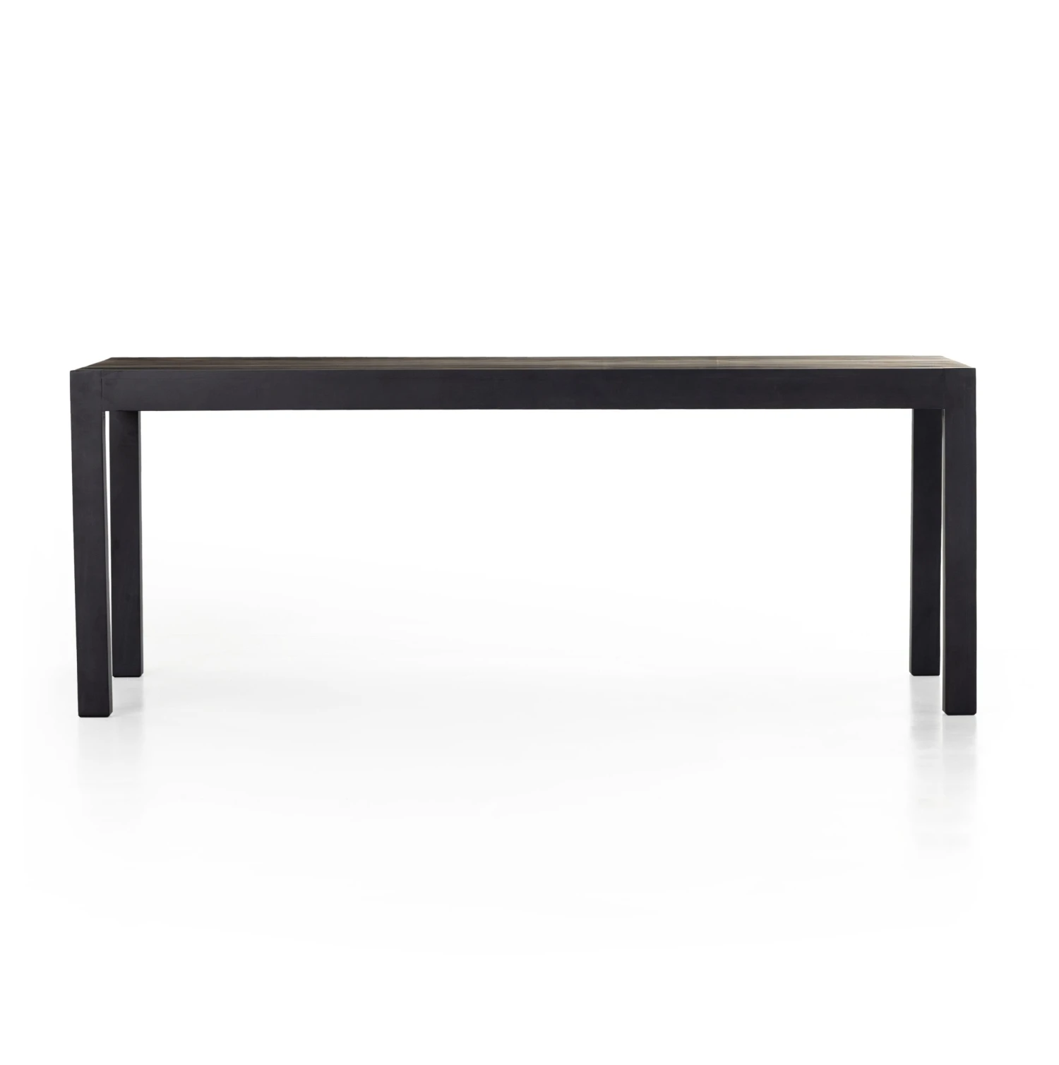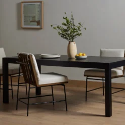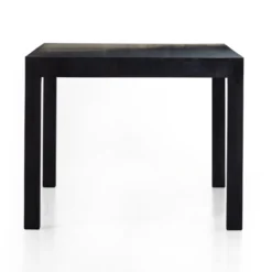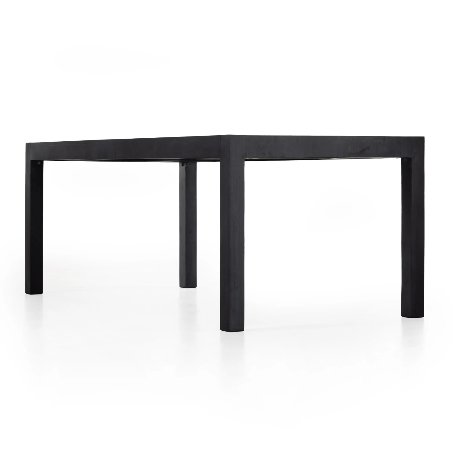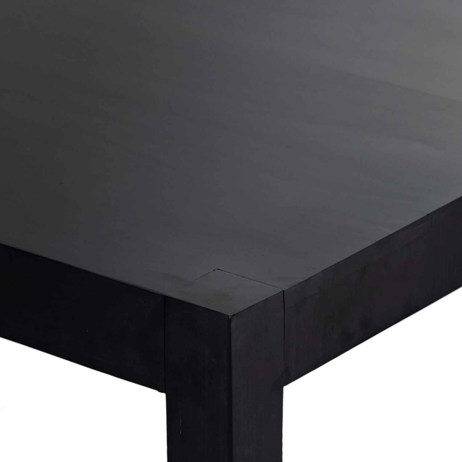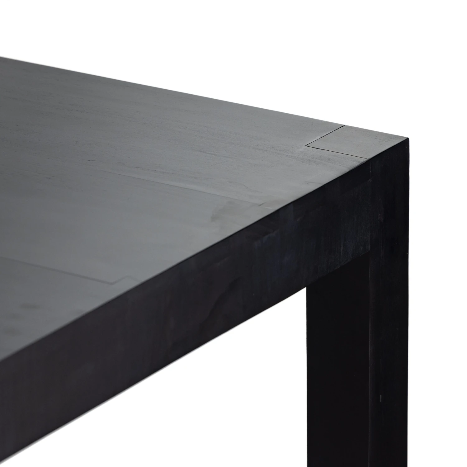 Beautifully simple in spirit. Black-washed solid poplar forms a clean, Parsons-style dining table with dovetail joinery, for a fresh update to Shaker-inspired styling.