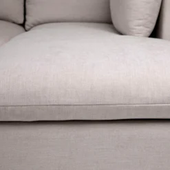 Immerse yourself in the enveloping comfort of the Juneau Sofa that embodies an atmosphere of modern leisure. It features a stylish form with ultimate comfort through its wide and low-profile silhouette, This L-shaped sofa features a select hardwood frame wrapped in high-quality polyester upholstery in a light taupe color, perfectly fit for any color scheme and décor.