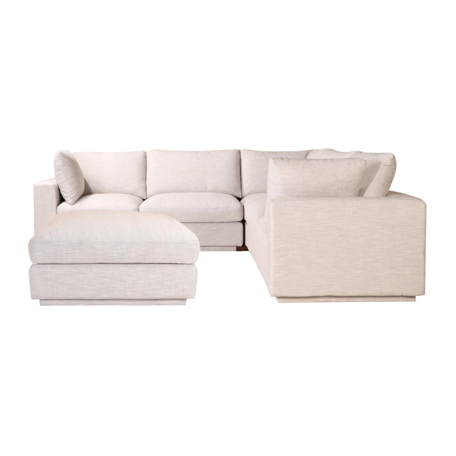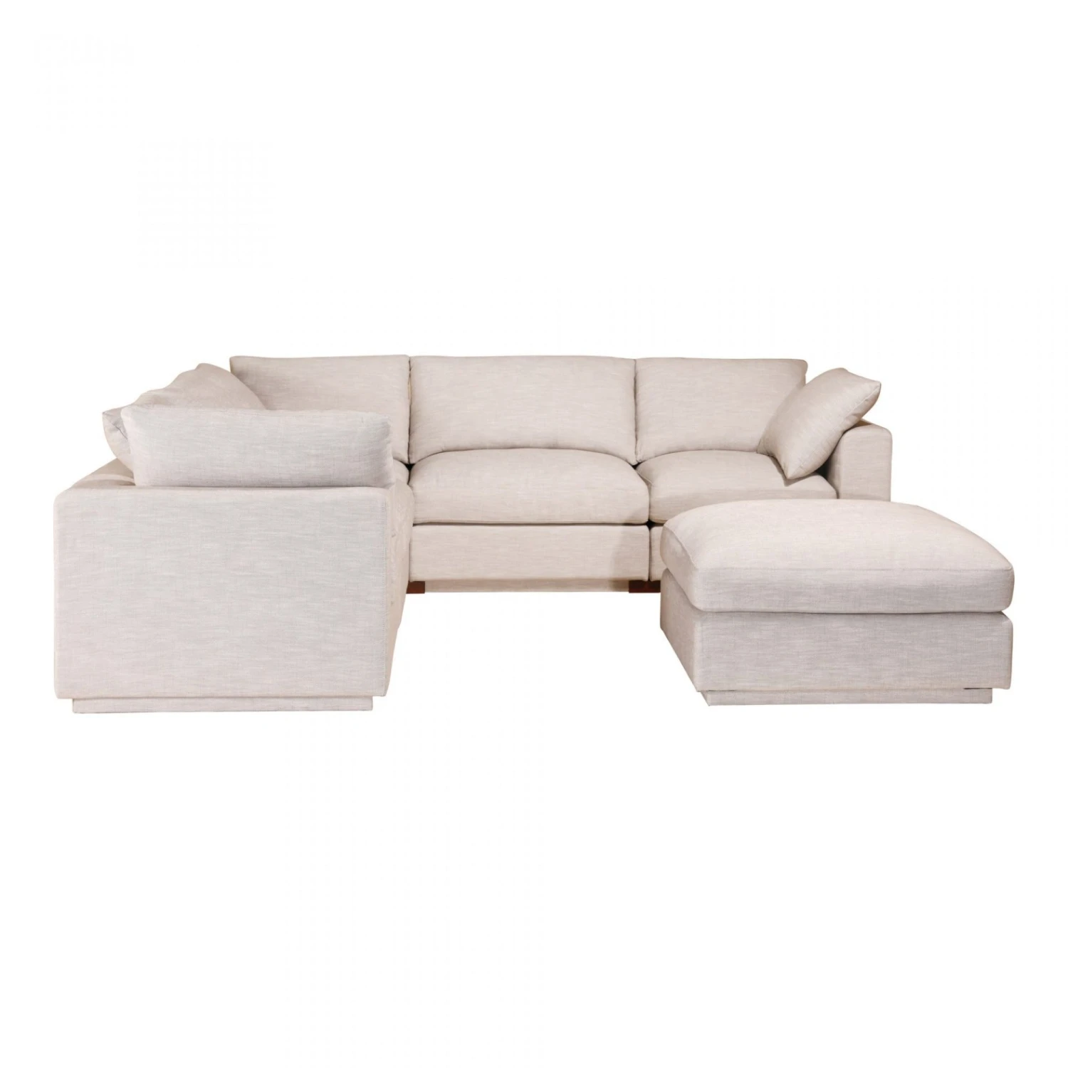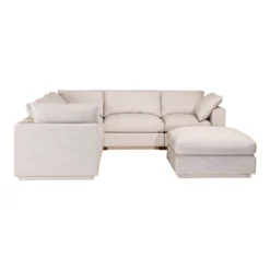The Justin modular sectional in Taupe is the ultimate seating area. It showcases two large chaises in its contemporary modern design. The linen polyester upholstery makes this sectional soft and cozy and its high-density foam cushioning is surely made to last. It’s perfect for a casual movie night or a fun hang-out spot for the family.