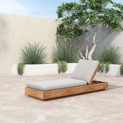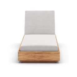 A stylish profile prime for lounging. A boxed base of FSC®-certified teak frames durable, outdoor-friendly cushioning. Adjustable back for comfort and ease. Cover or store indoors during inclement weather and when not in use.