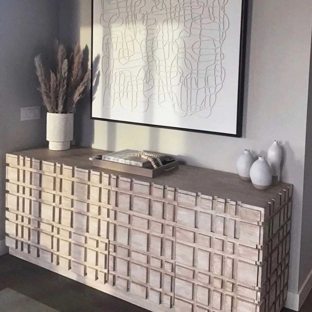 The Kodie Console is constructed from reclaimed Douglas Fir and finished in a Grey Wash Wax and Black Wash Wax.