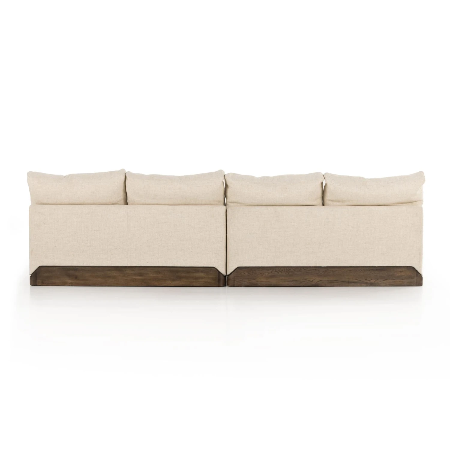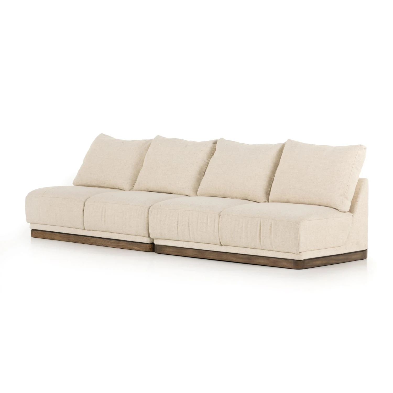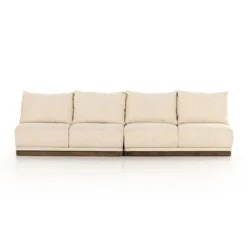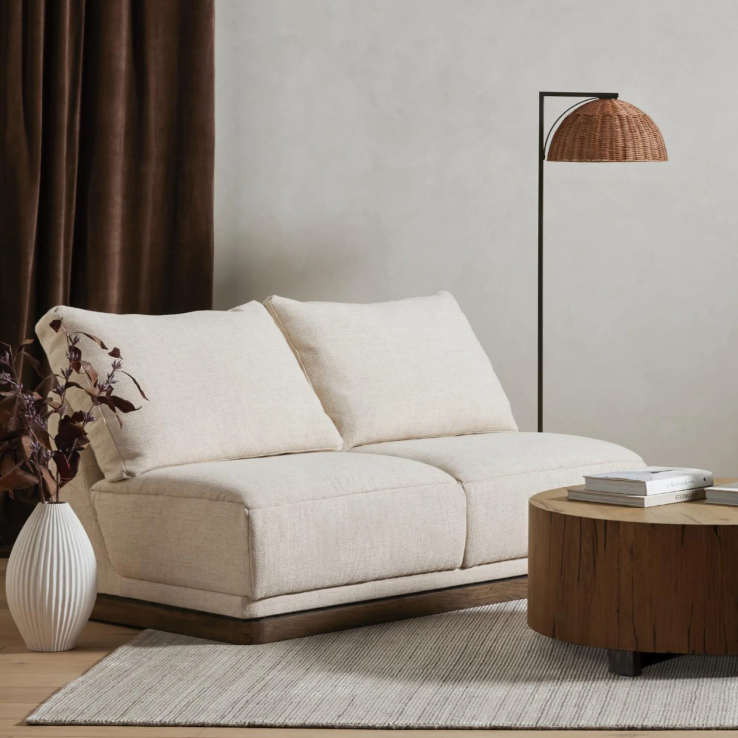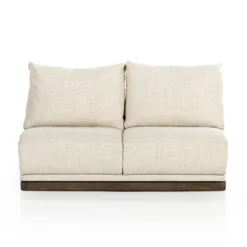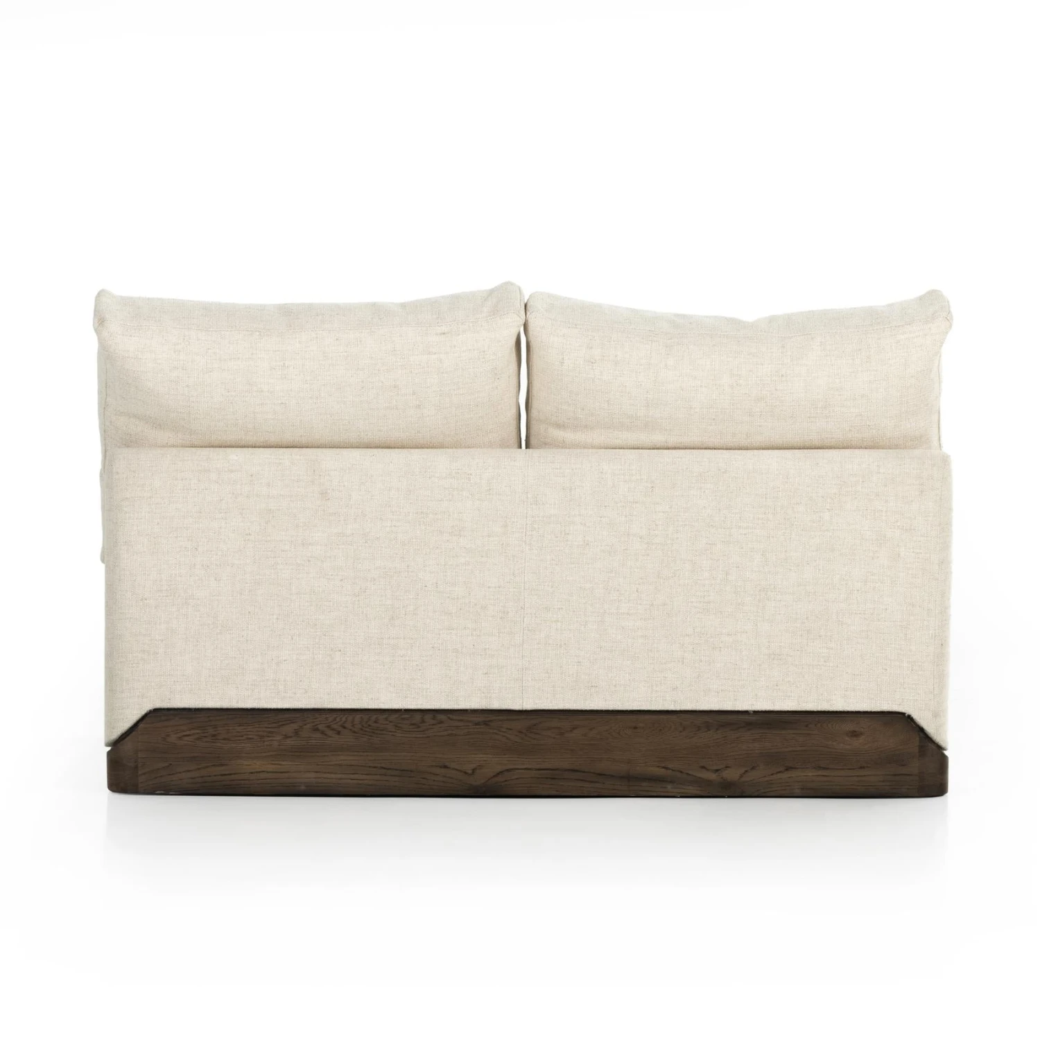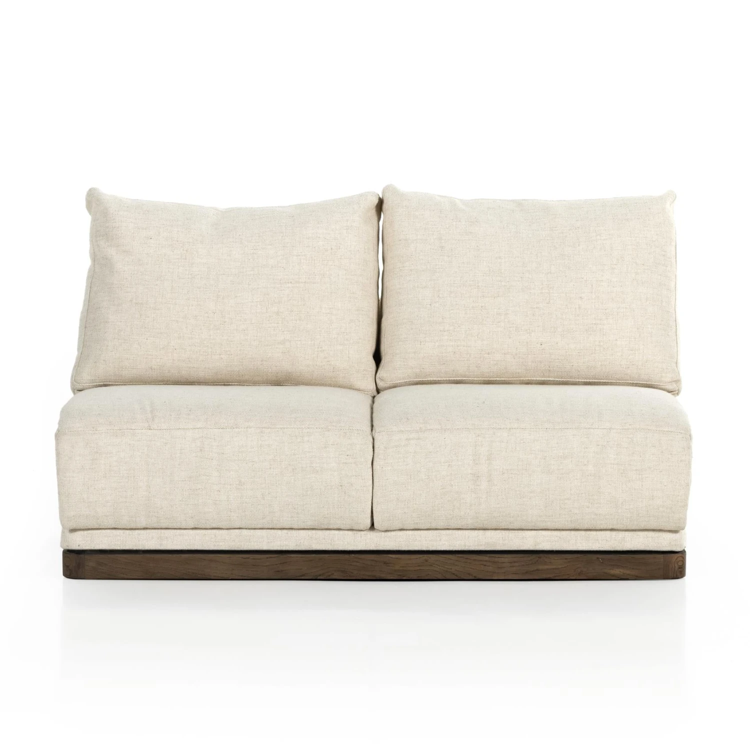 Timeless sophistication with a sensible spin. Made from water-repellant high-performance fabric in a versatile light cream, a relaxed, armless-style sofa features billowy cushioning atop a solid oak base. 60″ size great for smaller spaces. Performance fabrics are specially created to withstand spills, stains, high traffic and wear, ensuring long-term comfort and unmatched durability.