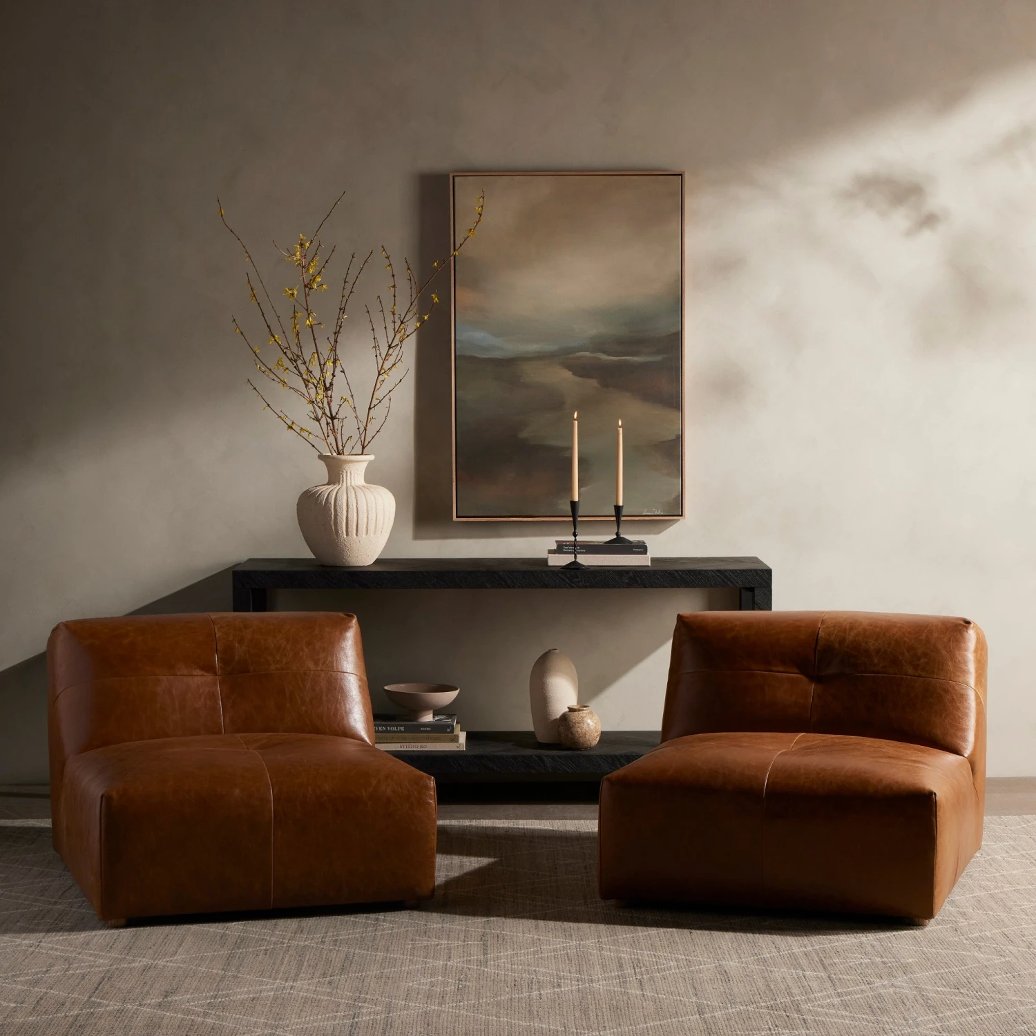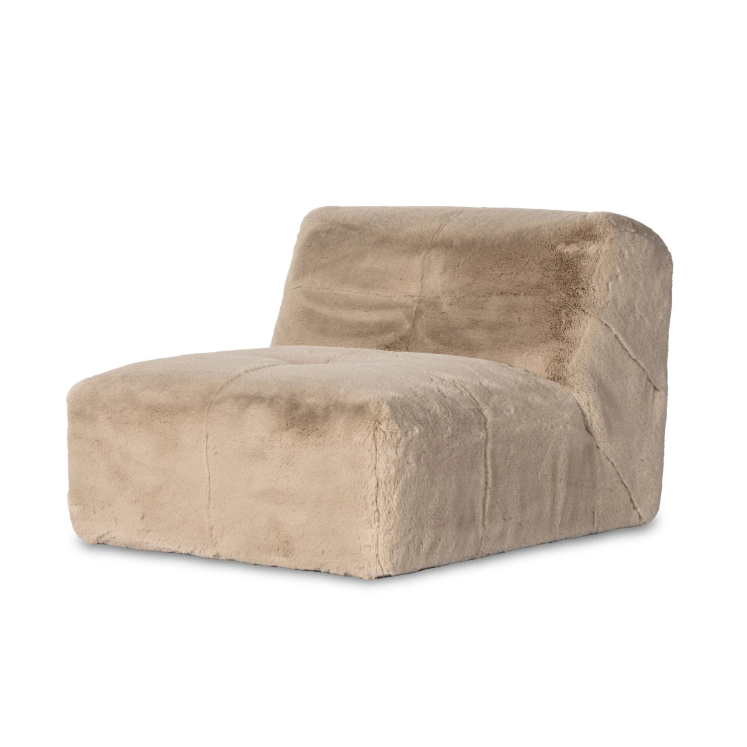 Modularity at its best. With soft, shaggy upholstery, this armless silhouette is prime for lounging. Pair two or three for a smart, stylish sofa.
