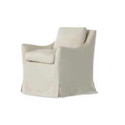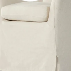 Flared arms and a soft, floor-length slipcover bring a traditional look to everyday dining. Concealed casters for modern ease. Durable and soft to the touch, Libecoâ„¢-sourced linens are artisan-made and free of toxic chemicals. Slipcovered styles are fully removable and machine-washable for easy care.