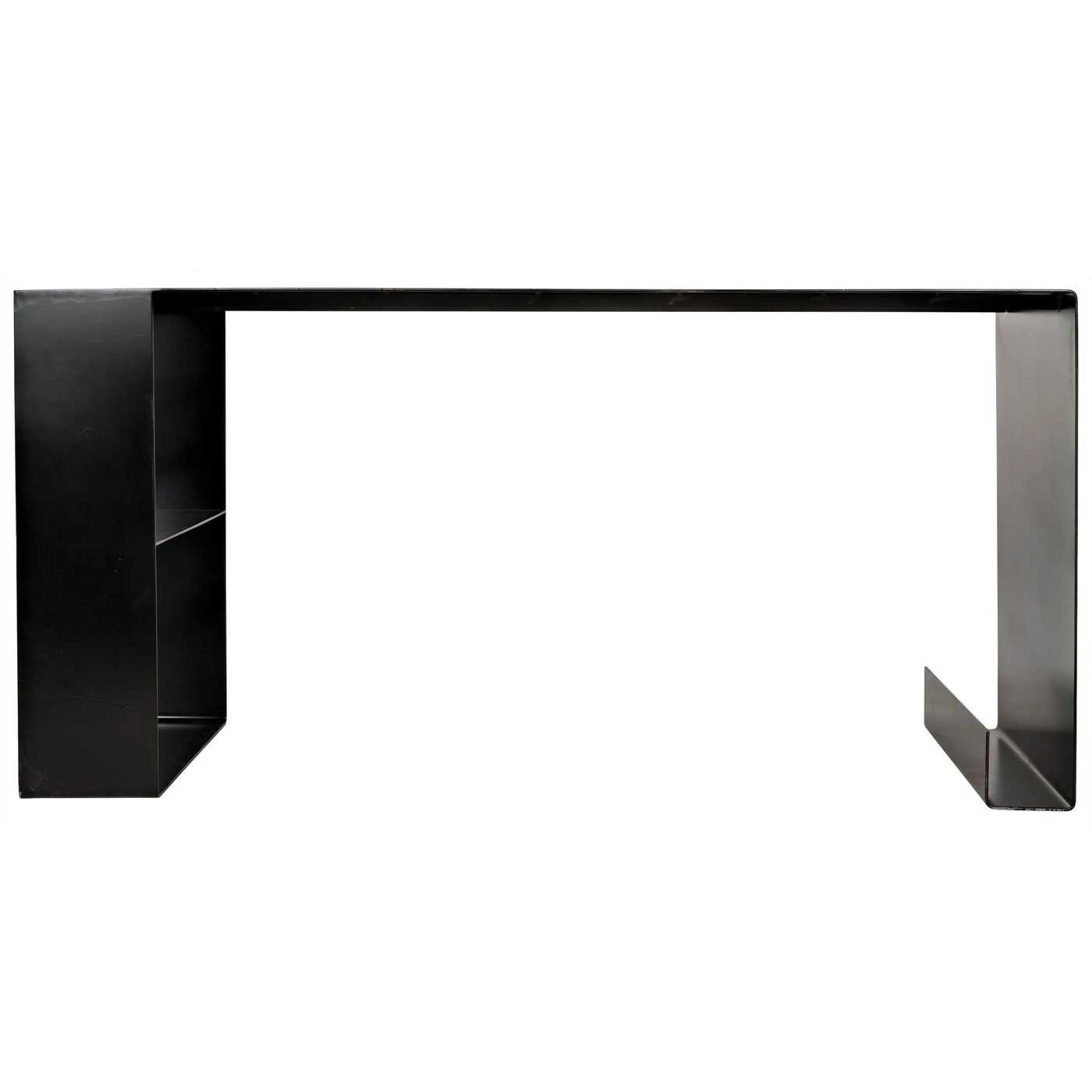 Our black steel desk made of industrial steel has a modern, sleek design and cured edges. Side shelving makes this desk a convenient work space for any user. Shop StyleMeGHD’s black steel desk and more of our industrial steel desks on our website today.