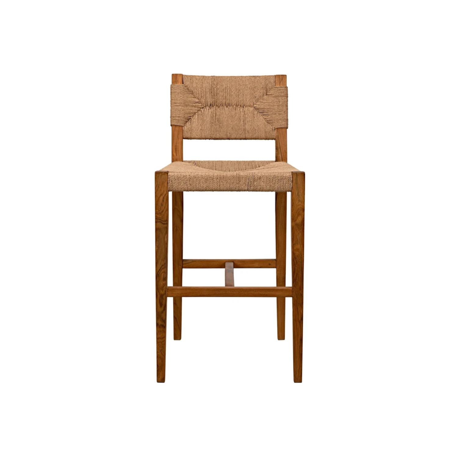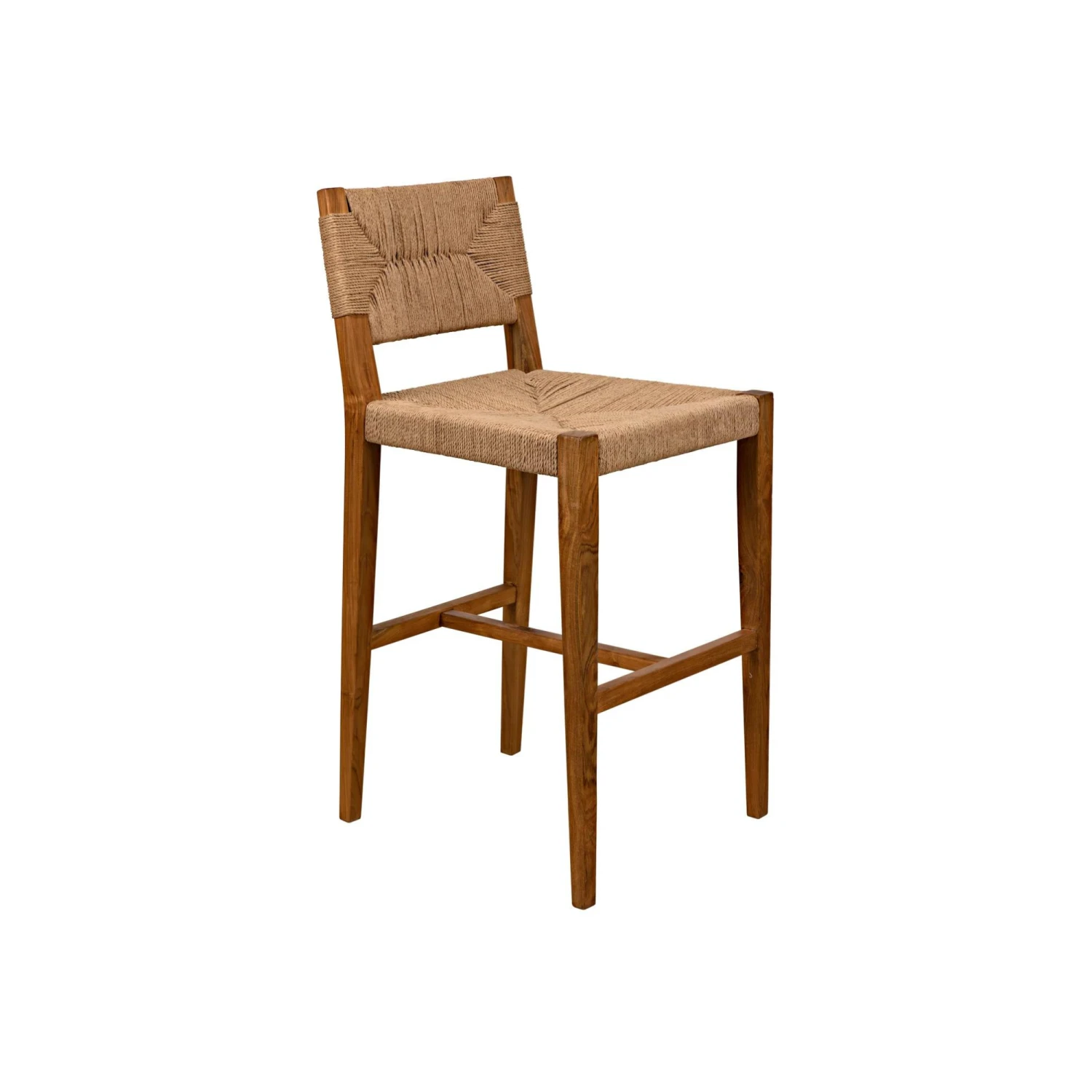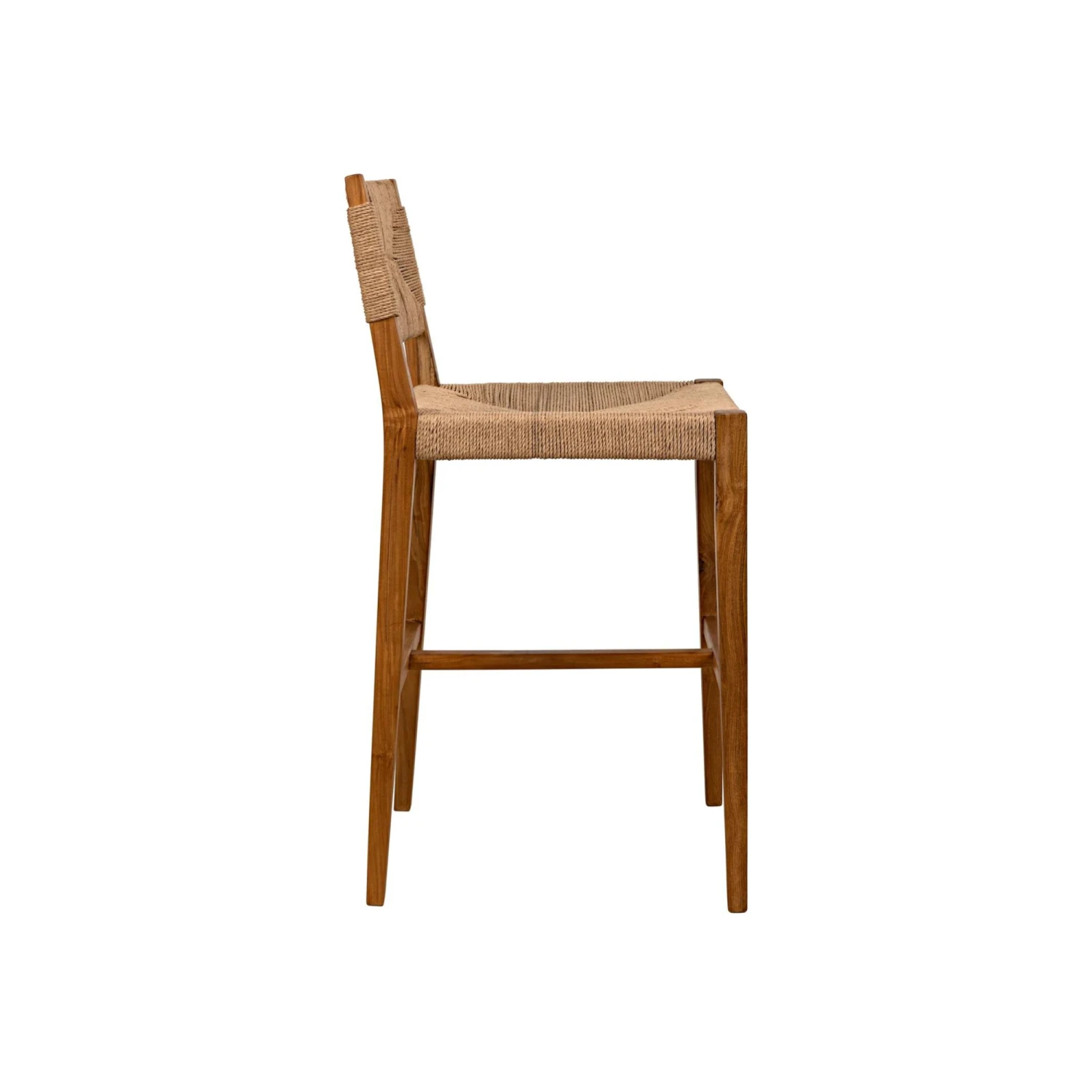 A traditional, tapered leg counter stool pairs teak and classic twisted multi-ply Danish cording for a versatile basic.
