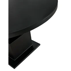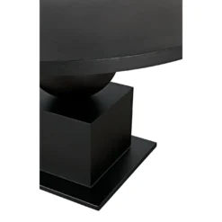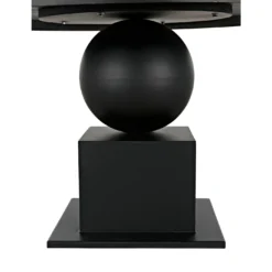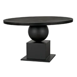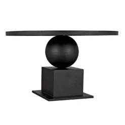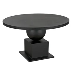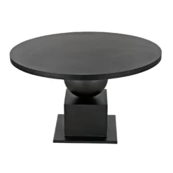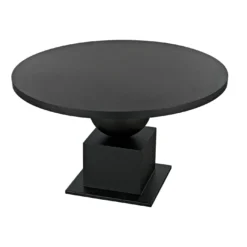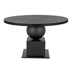 Fashioned entirely in industrial steel, and finished in black, our Emira dining table features stacked and supersized geometric forms and a 52″ top.