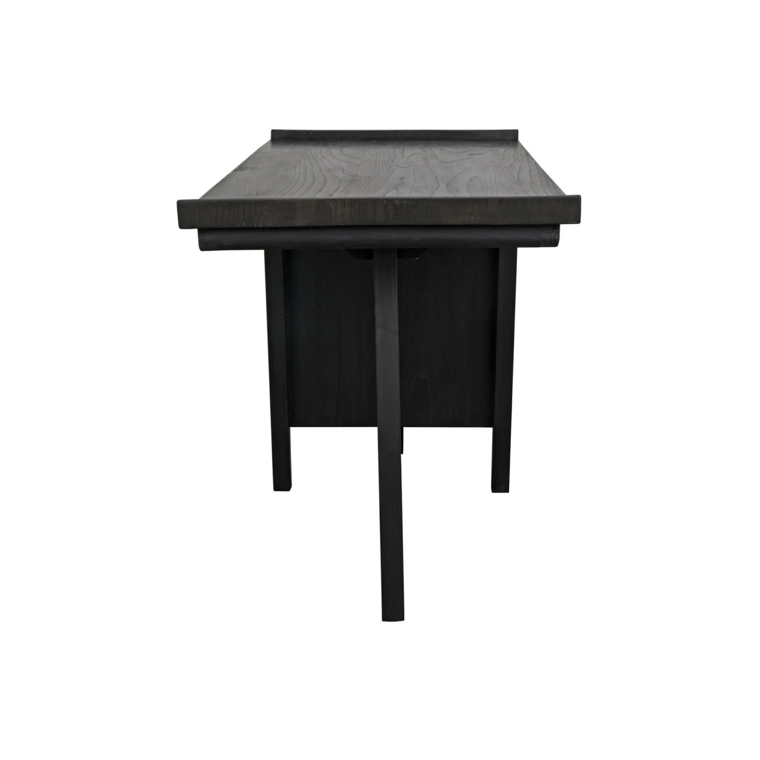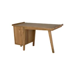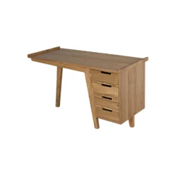 A mid-century modern inspiration and asymmetrical tapered legs provide this desk with plenty of styles. Smoothly sliding drawers and expert solid sungkai wood construction bring substance. Add your choice of two hand-applied finishes and this design has it all!