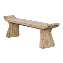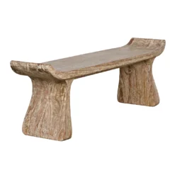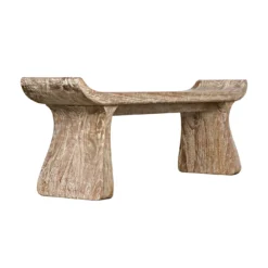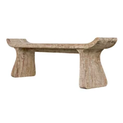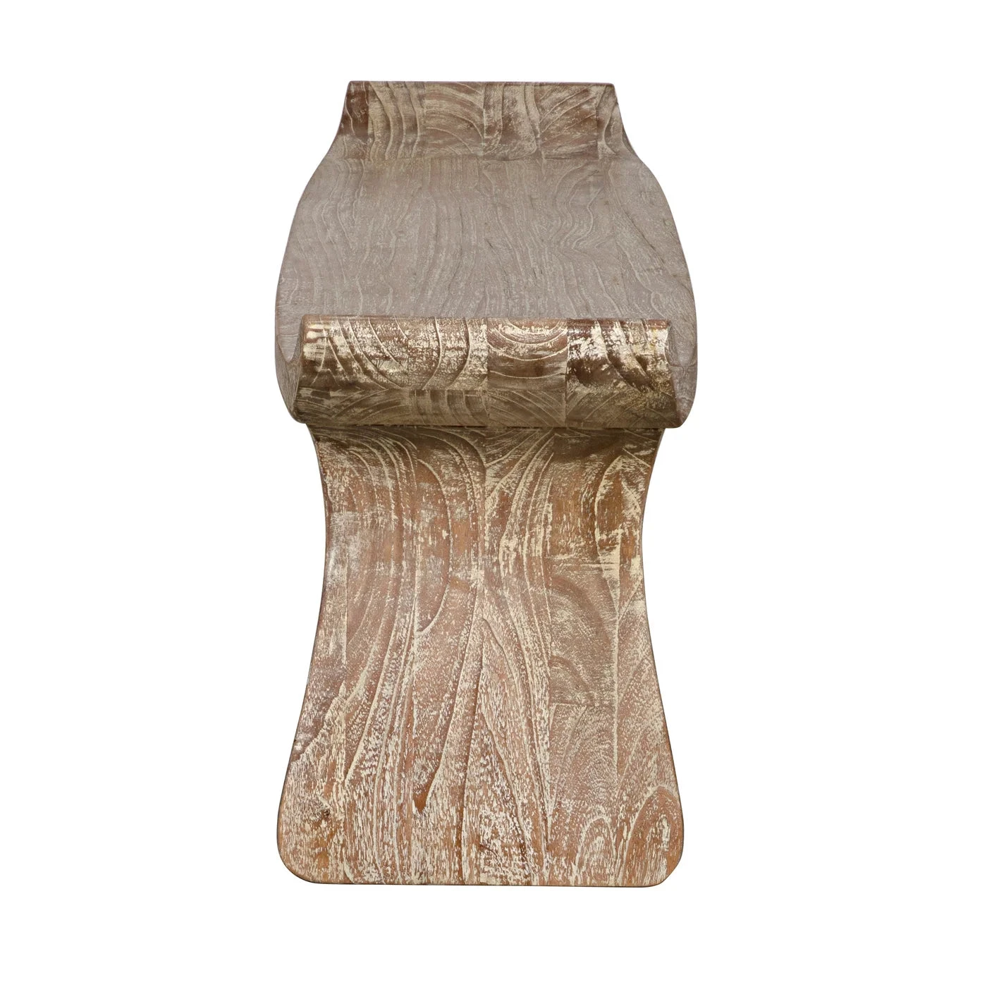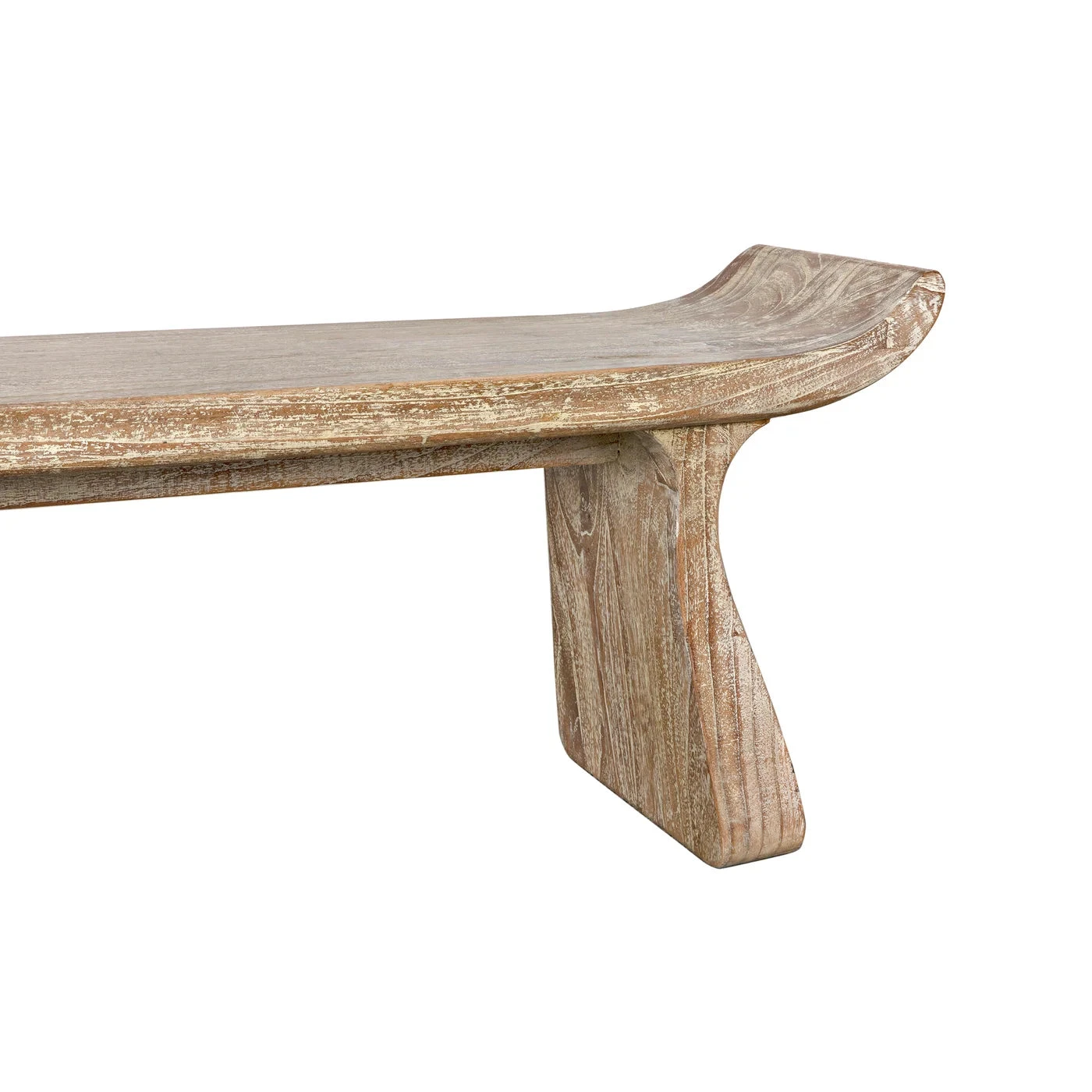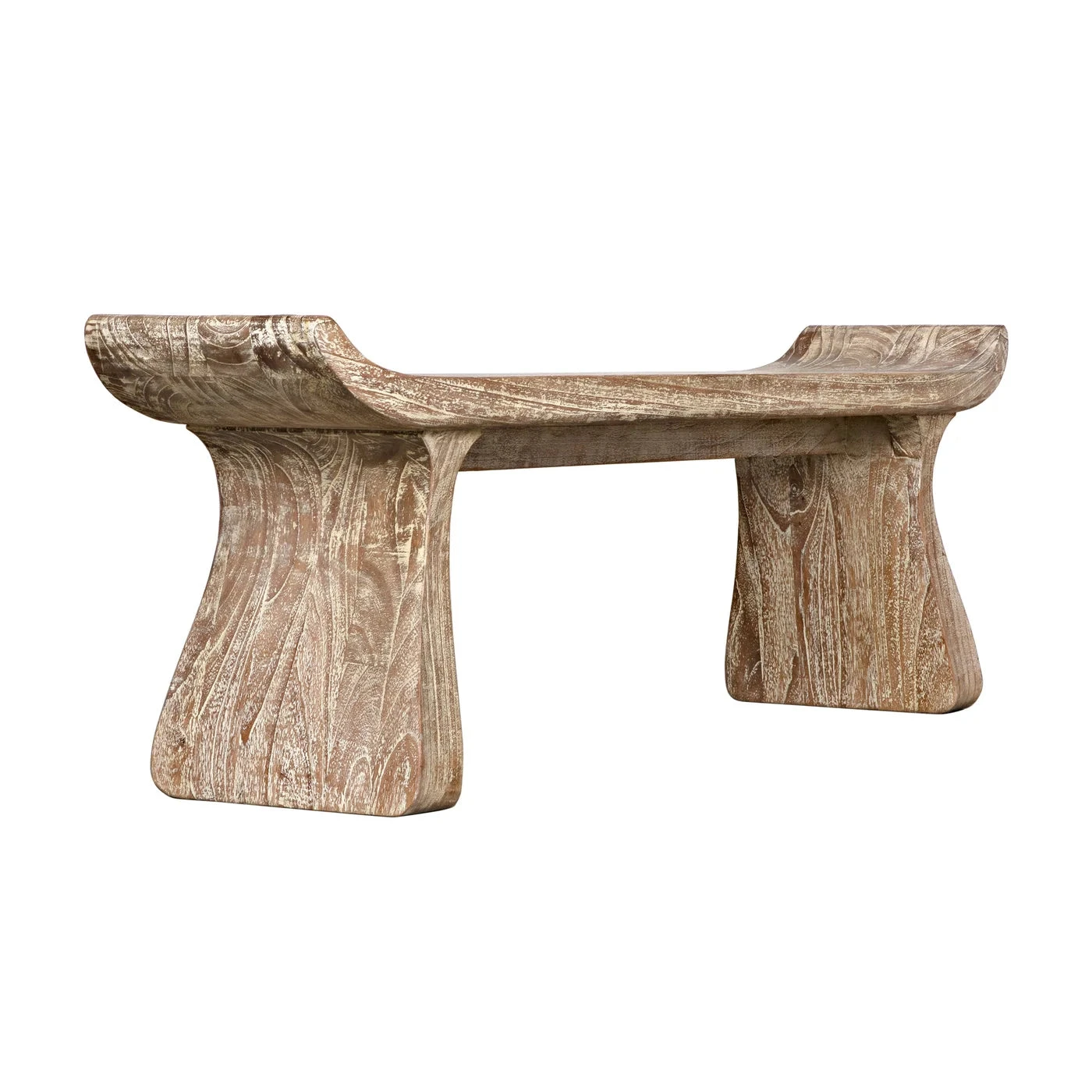 A deceptively rustic classic, this large bench has been beautifully handcrafted. It features strong, solid wood legs finished by hand in distressed Mindi.