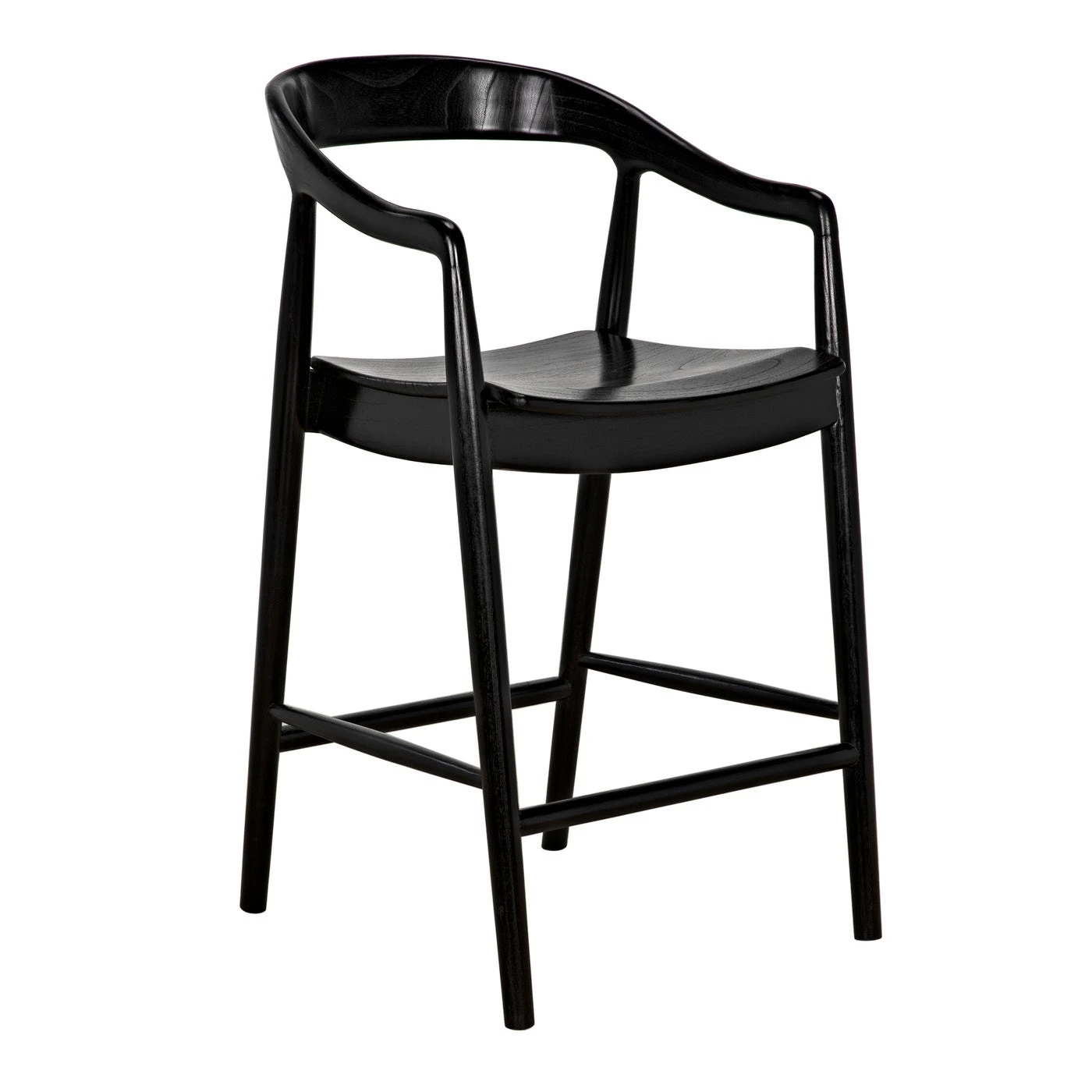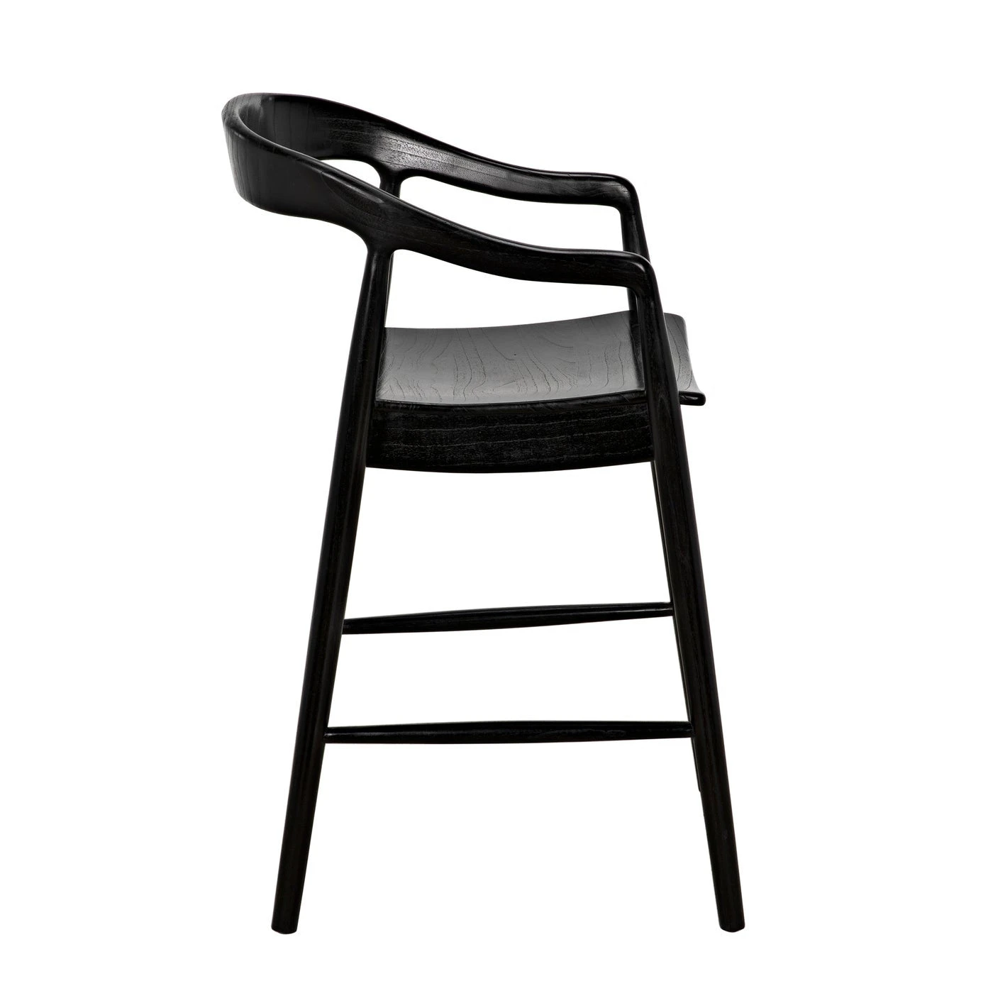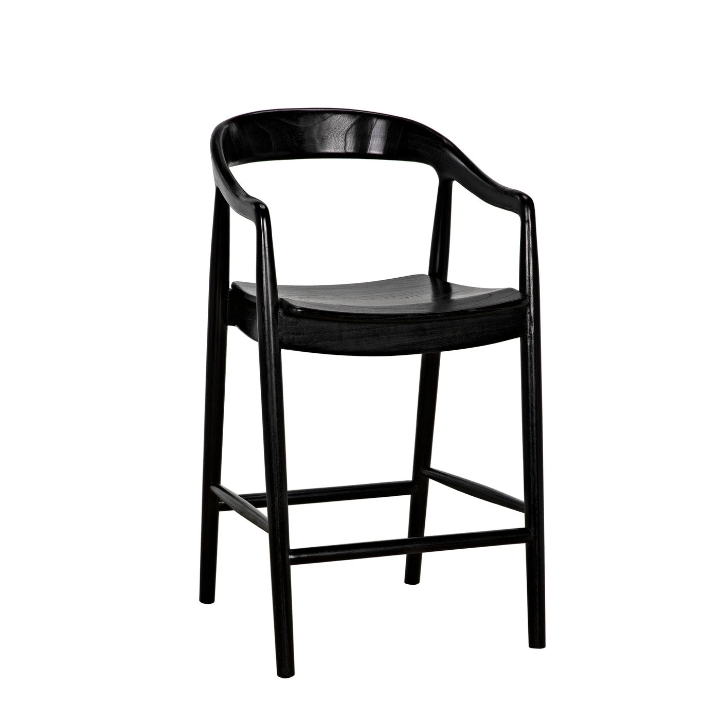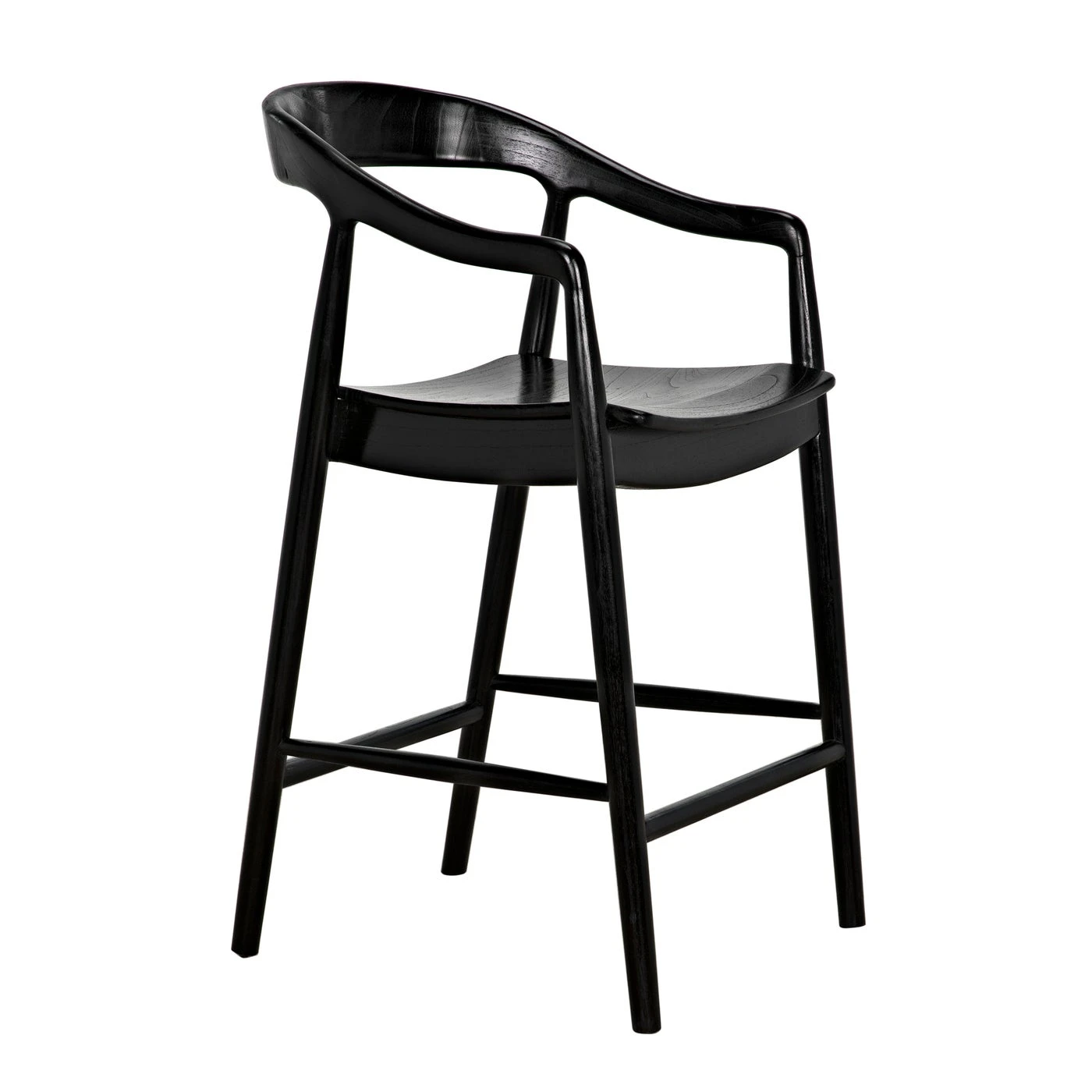 An ergonomically curved seat adds comfort to this beautiful counter-height chair. Expertly crafted of sungkai wood, a sustainably ranched hardwood, it is finished with multiple hand-applied layers of charcoal black.