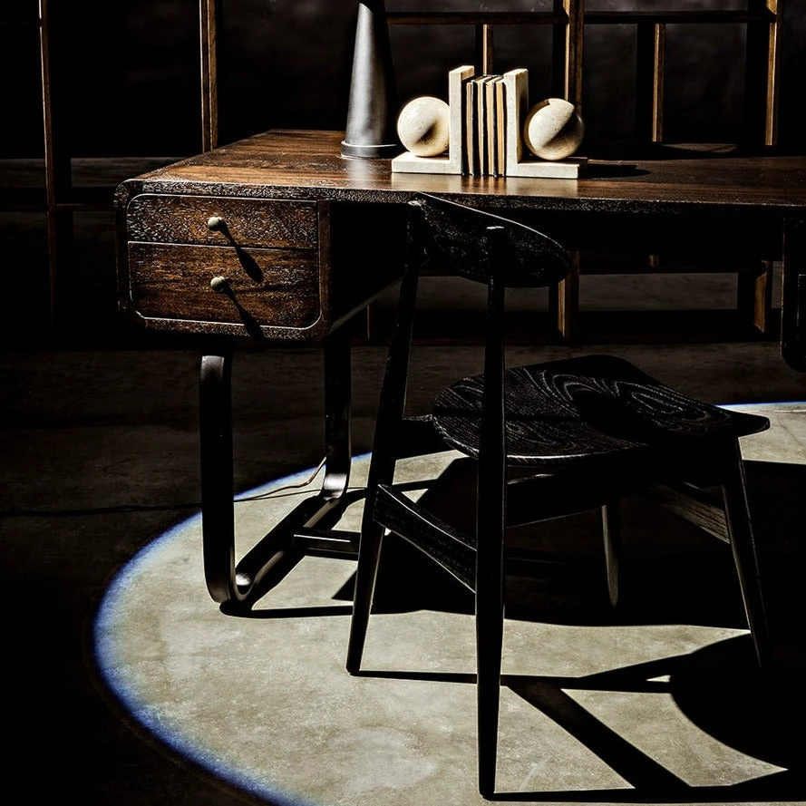 A softly curved seat and a surfboard-inspired seatback are both expertly rendered here in sungkai wood. A hand-applied charcoal black finish keeps the look clean.