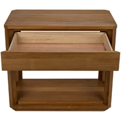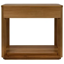 This simple teak side table, with clean, traditional lines is distinguished by both the excellence of its craftsmanship and the softly burnished gold finish that adds layers of hand-applied warmth to the hardwood.