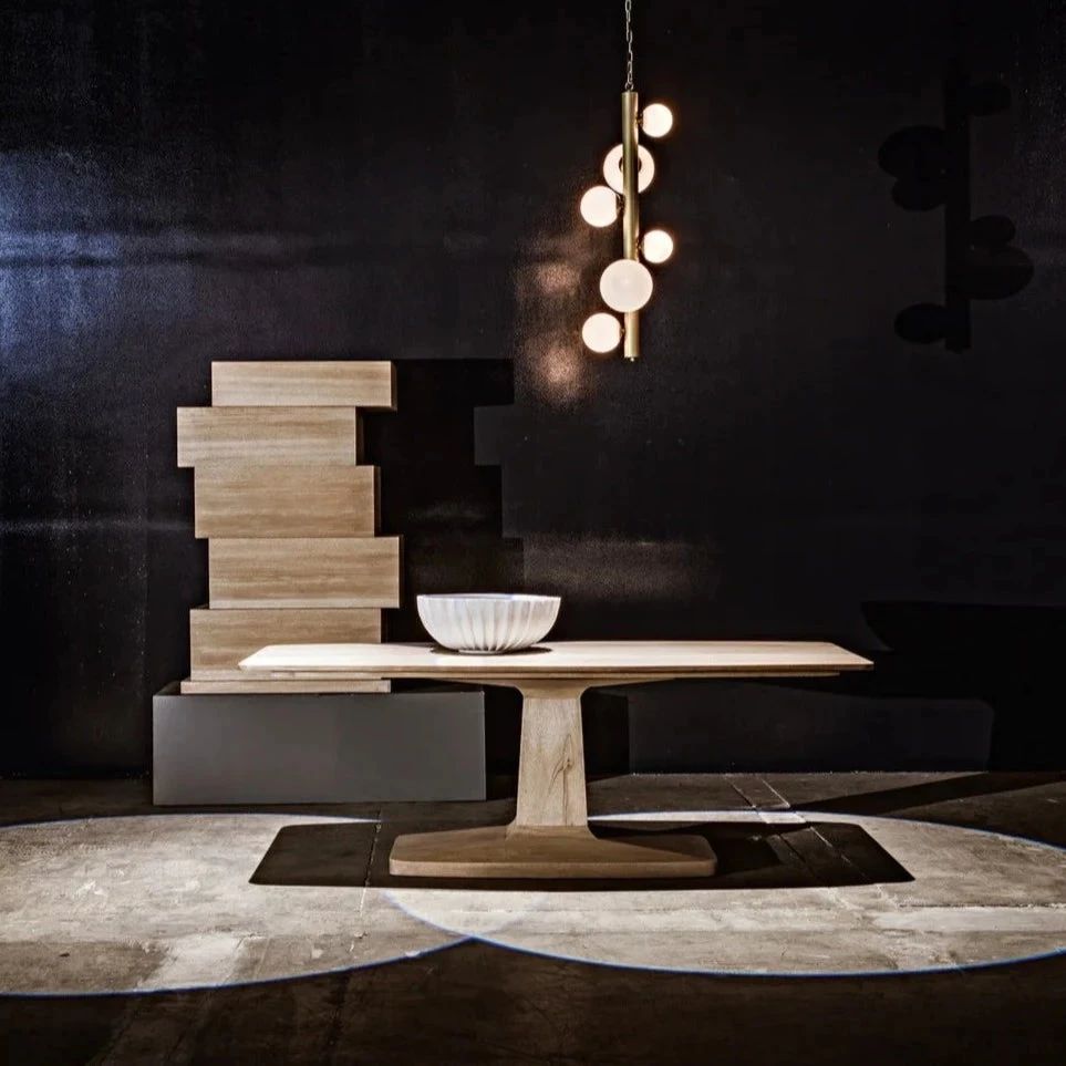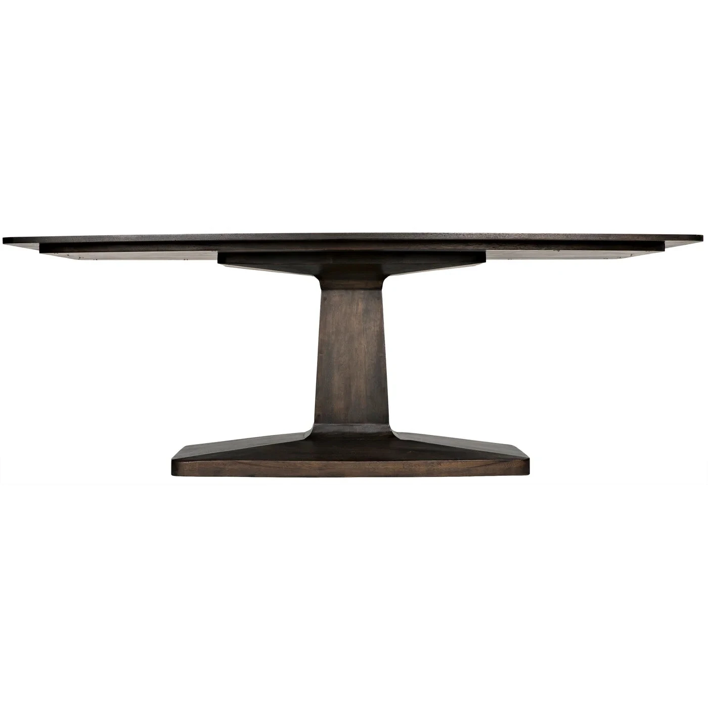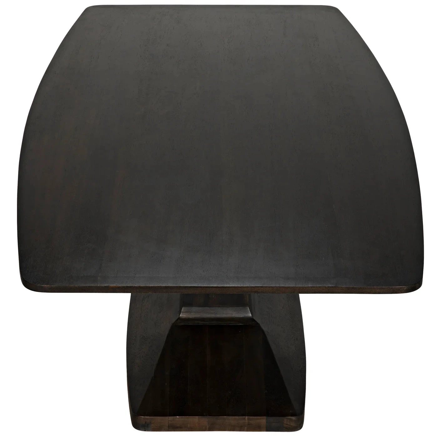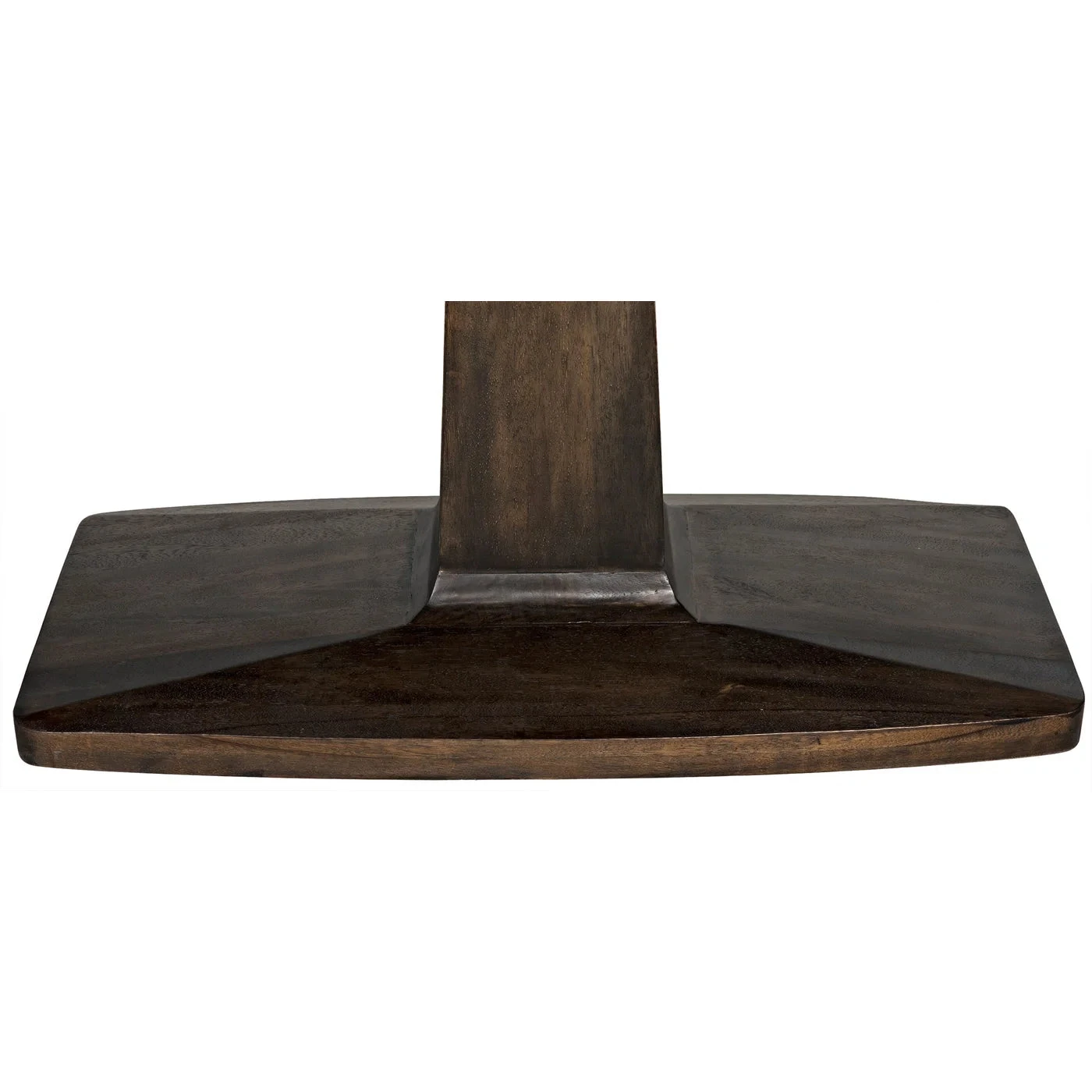 The Travis Table is a work of art in simplicity, beautifully constructed of walnut. Their simplicity is stunning, with a narrow, rounded rectangular top and a beautiful pedestal base.Â