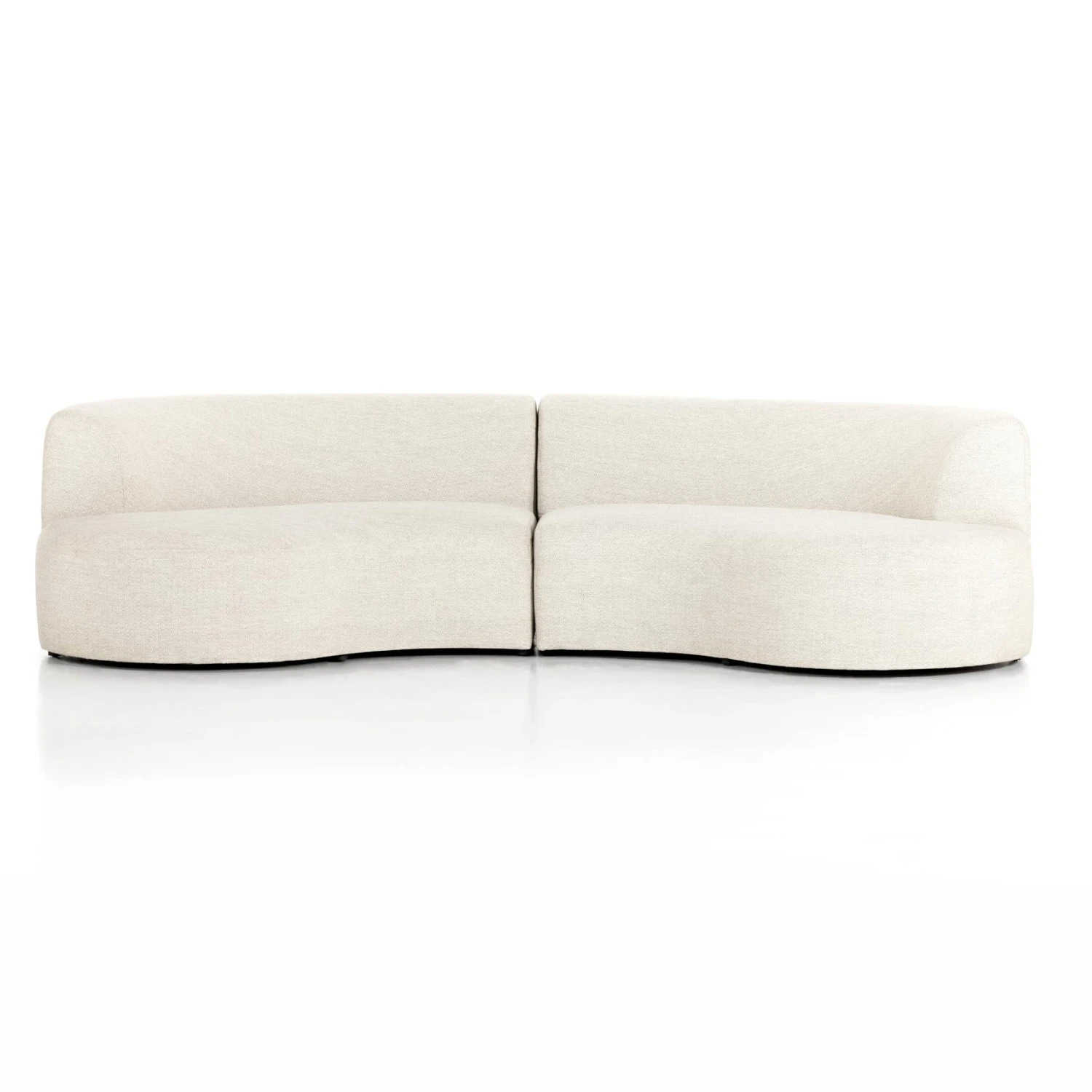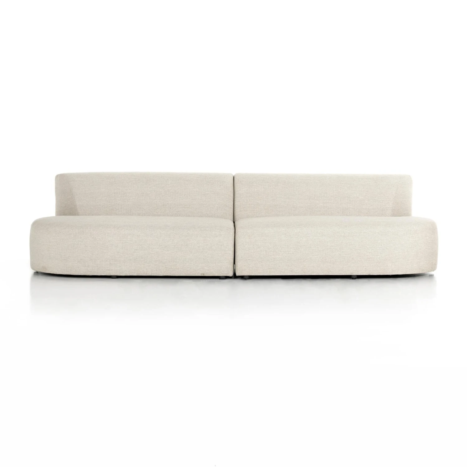 Bring a hint of old-Hollywood glamour outdoors with this soft, sculptural sectional. Plush cushioning all around is upholstered in UV-resistant, water-repellent, quick-drying fabric. Cover or store inside during inclement weather and when not in use.