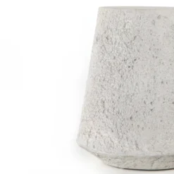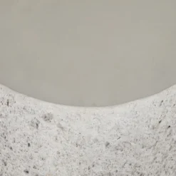 Bring a touch of industrialism to outdoor styling. A tapered end table of solid white concrete features raw edging for texture and novelty alike, with a smooth, clean surface. Cover or store indoors during inclement weather and when not in use.