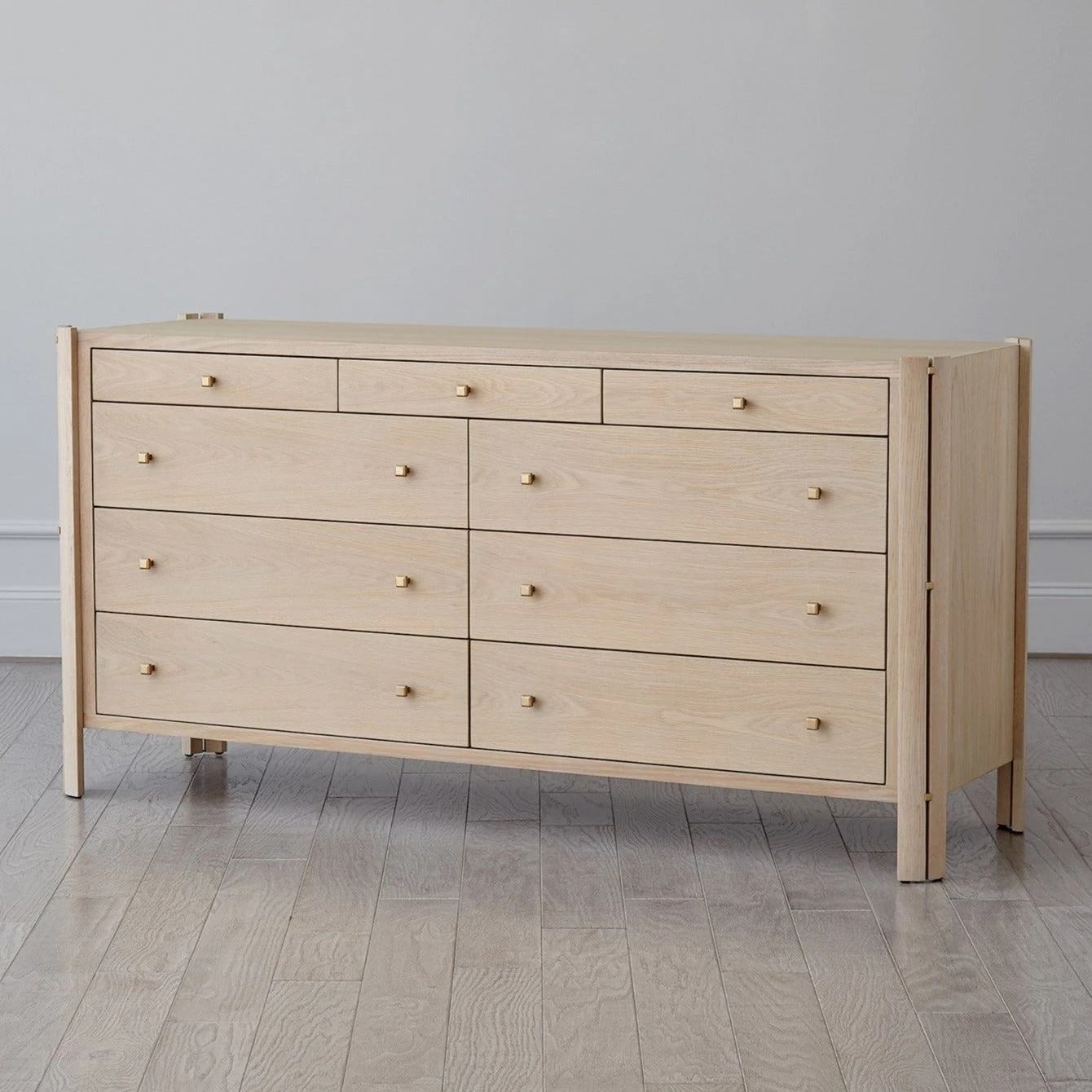 Unique slat construction, a bleached white oak finish and burnished brass accents define our Paxton Collection. Thoughtfully scaled to work in many different room settings, the modern details and sophisticated casual vibe make these pieces a go-to for refined, easy elegance.