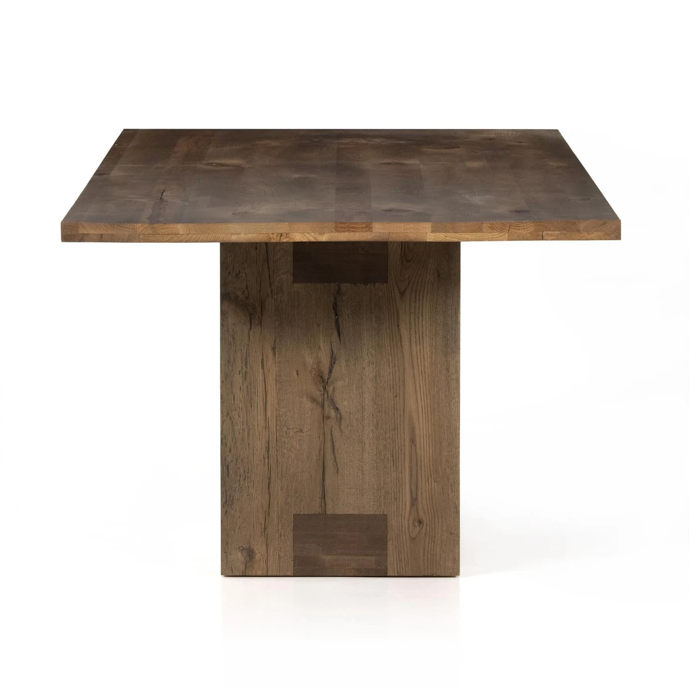 A grand dining table made from hand-selected oak veneer, with large-scale joinery for heft. Seats six comfortably. Designed in partnership with longtime Four Hands collaborator Thomas Bina and Brazilian designer Ronald Sasson.