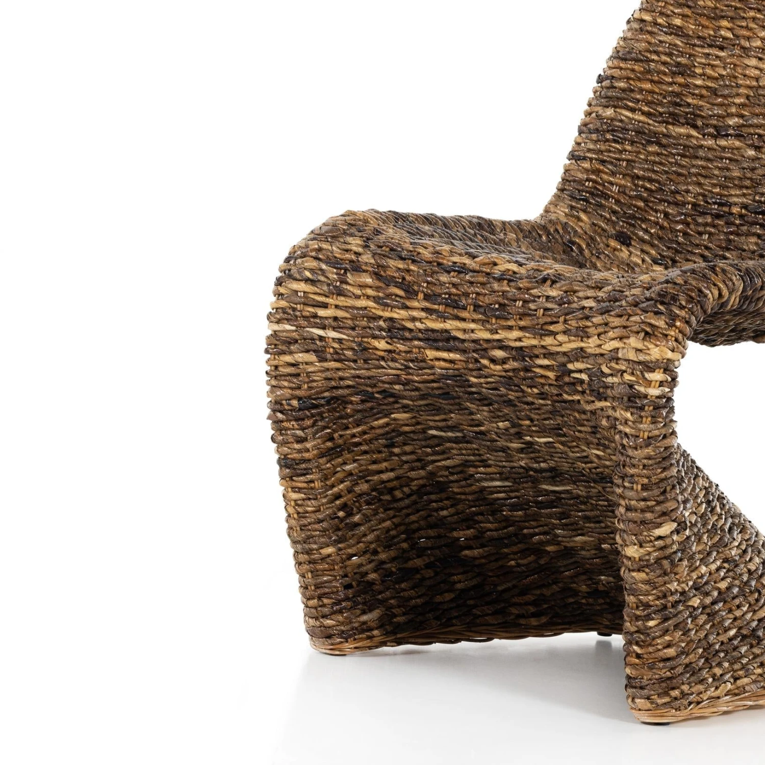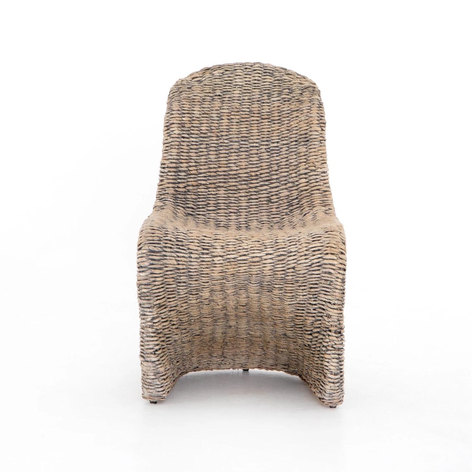 Strike a pose. Finished in a versatile washed grey, banana leaf seating curves to bring shapely intrigue to everyday dining.