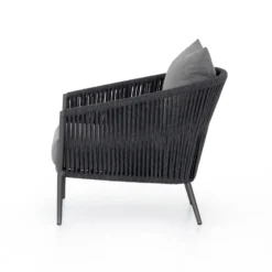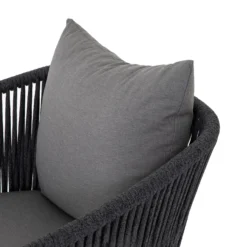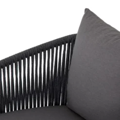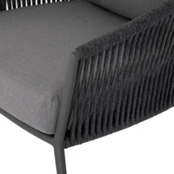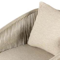The perfect place for outdoor daydreaming. A beautiful rope-based design is woven across a durable aluminum frame. Topped with a wide cushion and throw pillow, all upholstered in 100% olefin, known for its UV-resistant, water-repellent and quick-drying abilities. Cover or store indoors during inclement weather and when not in use.