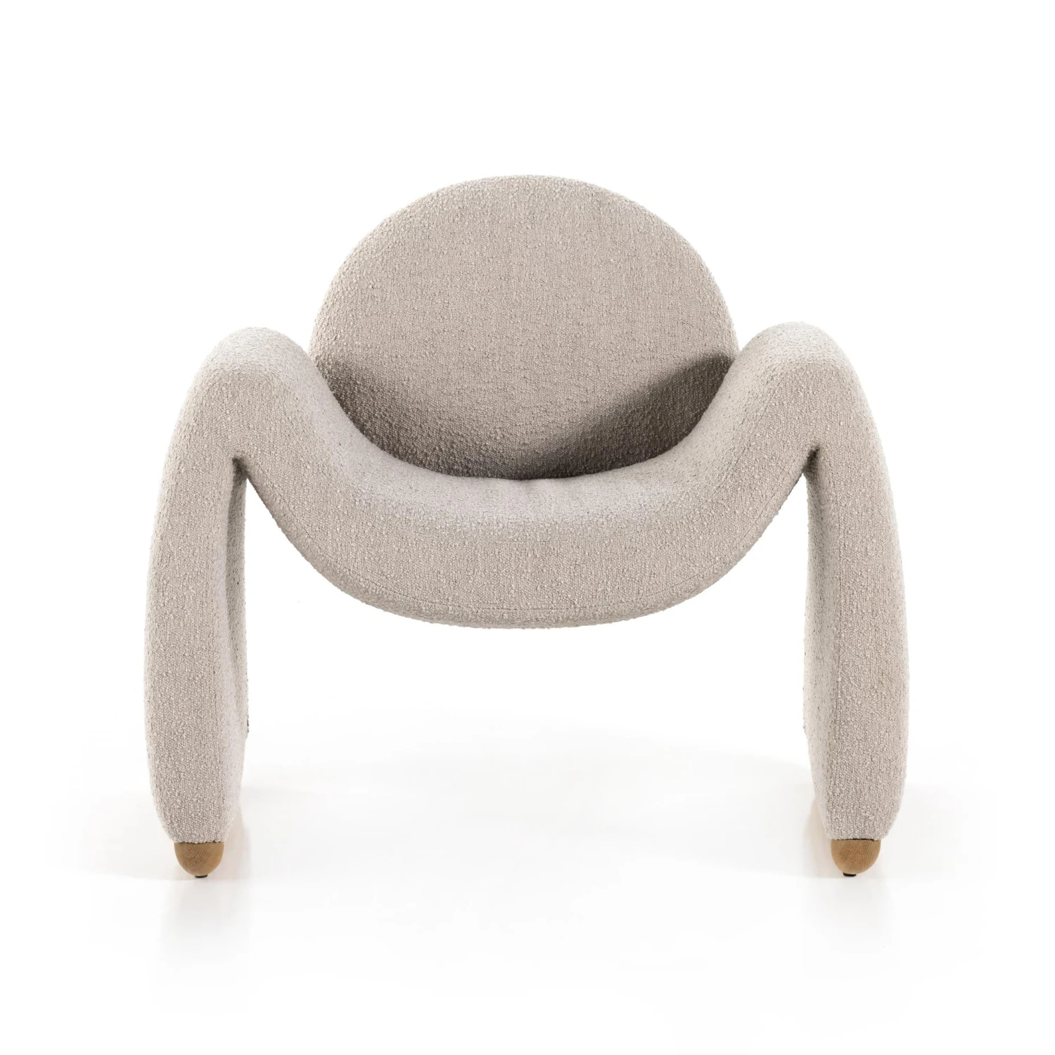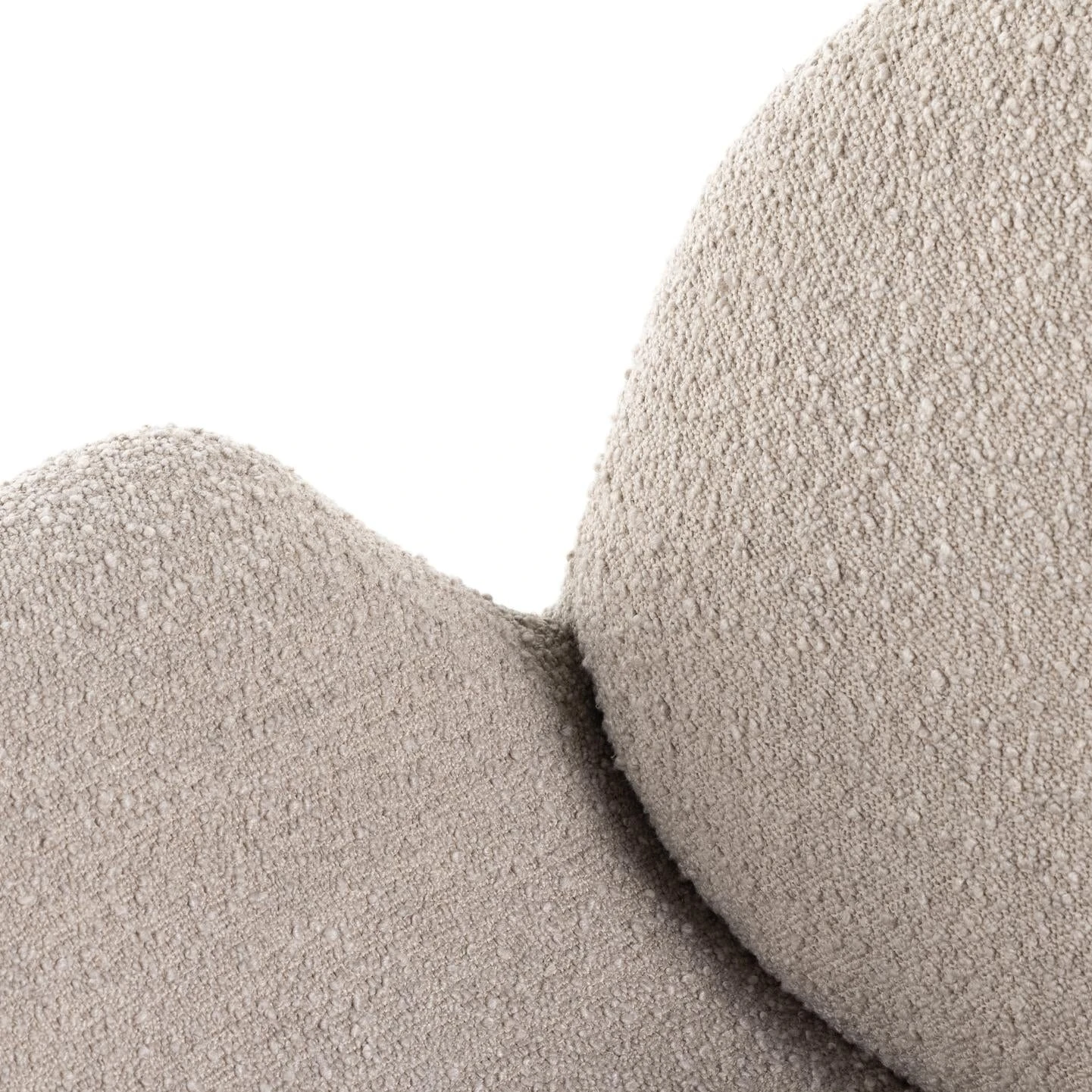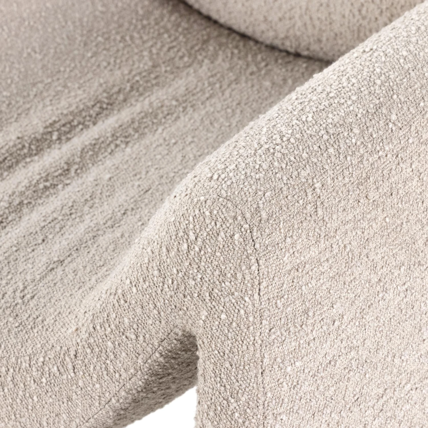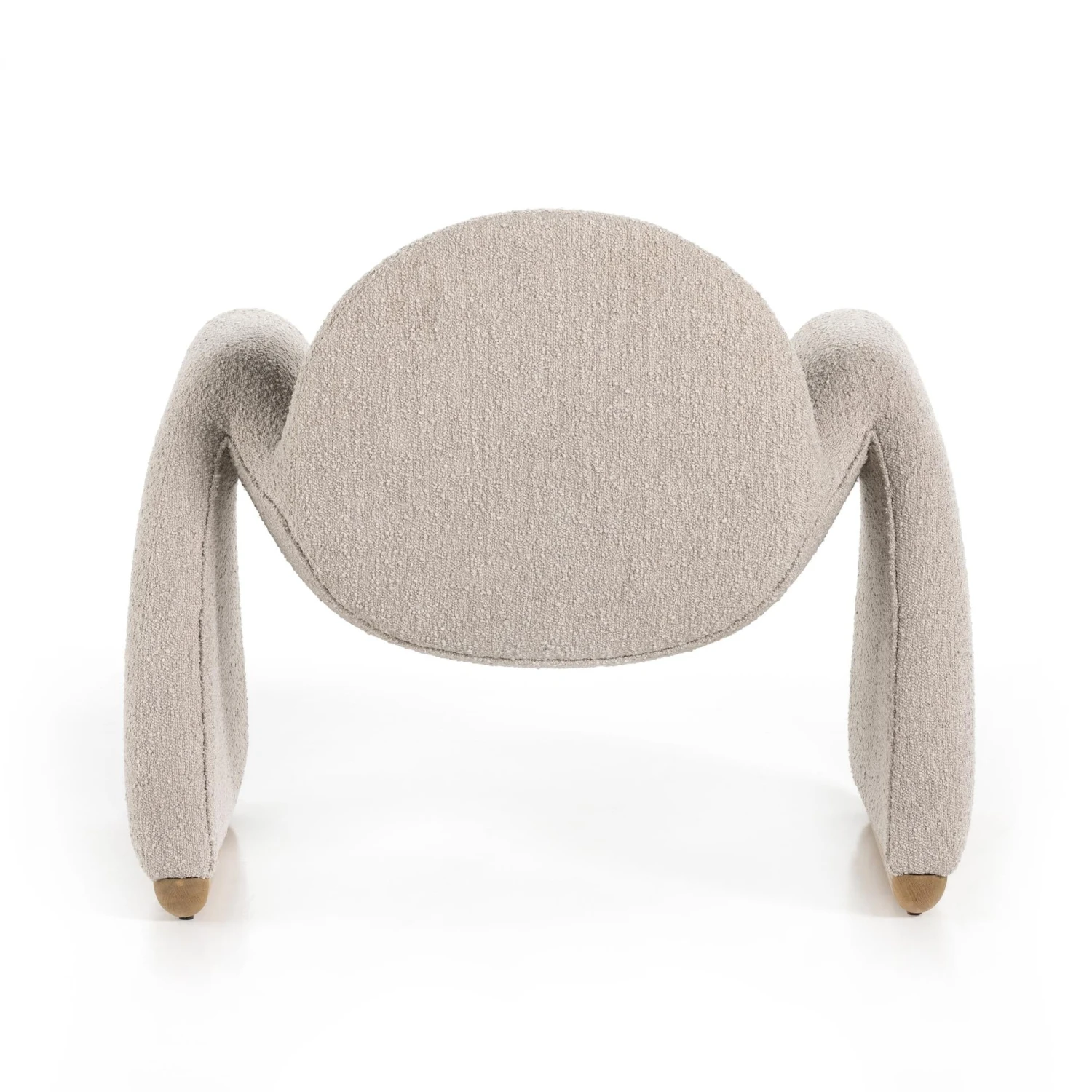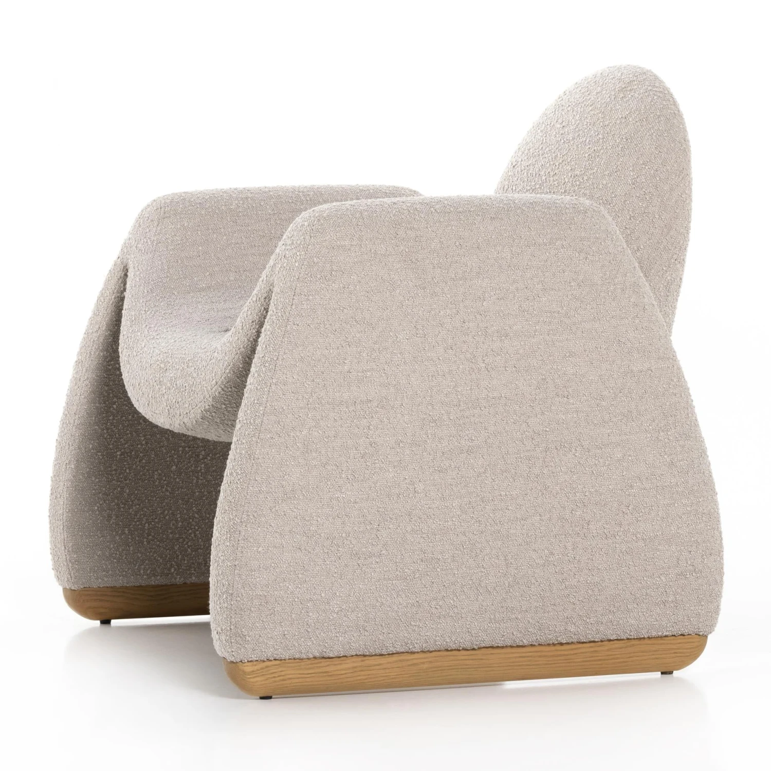 Bring some ’70s whimsy into play with a show-stopping accent chair. Made from high-performance fabric in a sandy boucle, dramatic shaping features fashionable folds and comfortable curves atop a minimal oak base. Performance fabrics are specially created to withstand spills, stains, high traffic and wear, ensuring long-term comfort and unmatched durability.