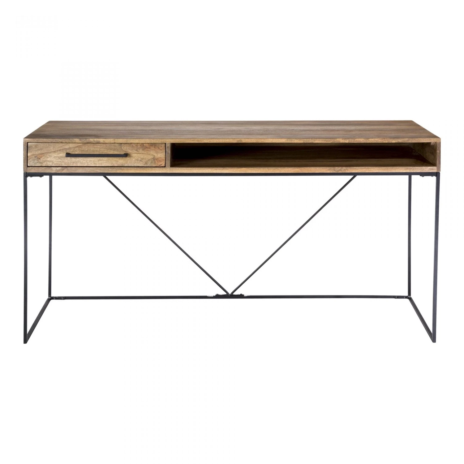 Storage and organization are easy with a single drawer and a large adjacent shelf. Made of solid mango wood and iron framing, this desk’s organic finish is warm and inviting, making your work days feel less like work days.