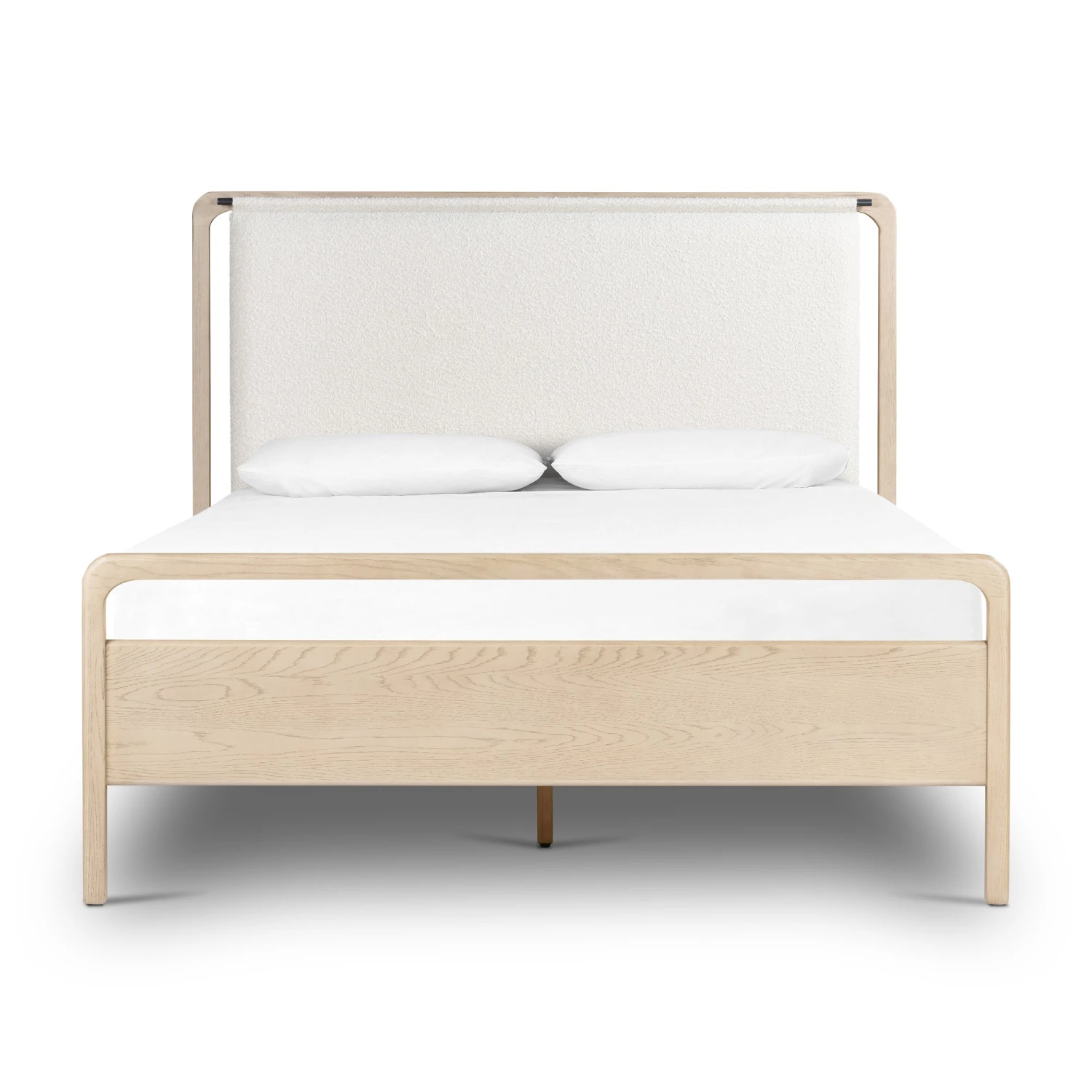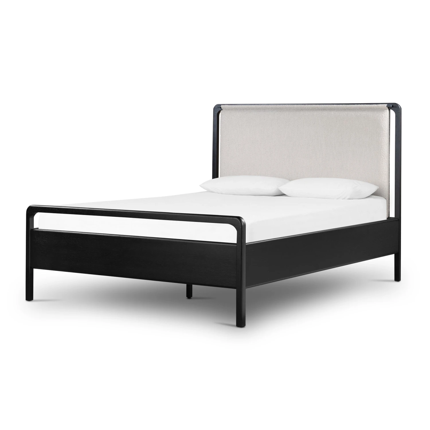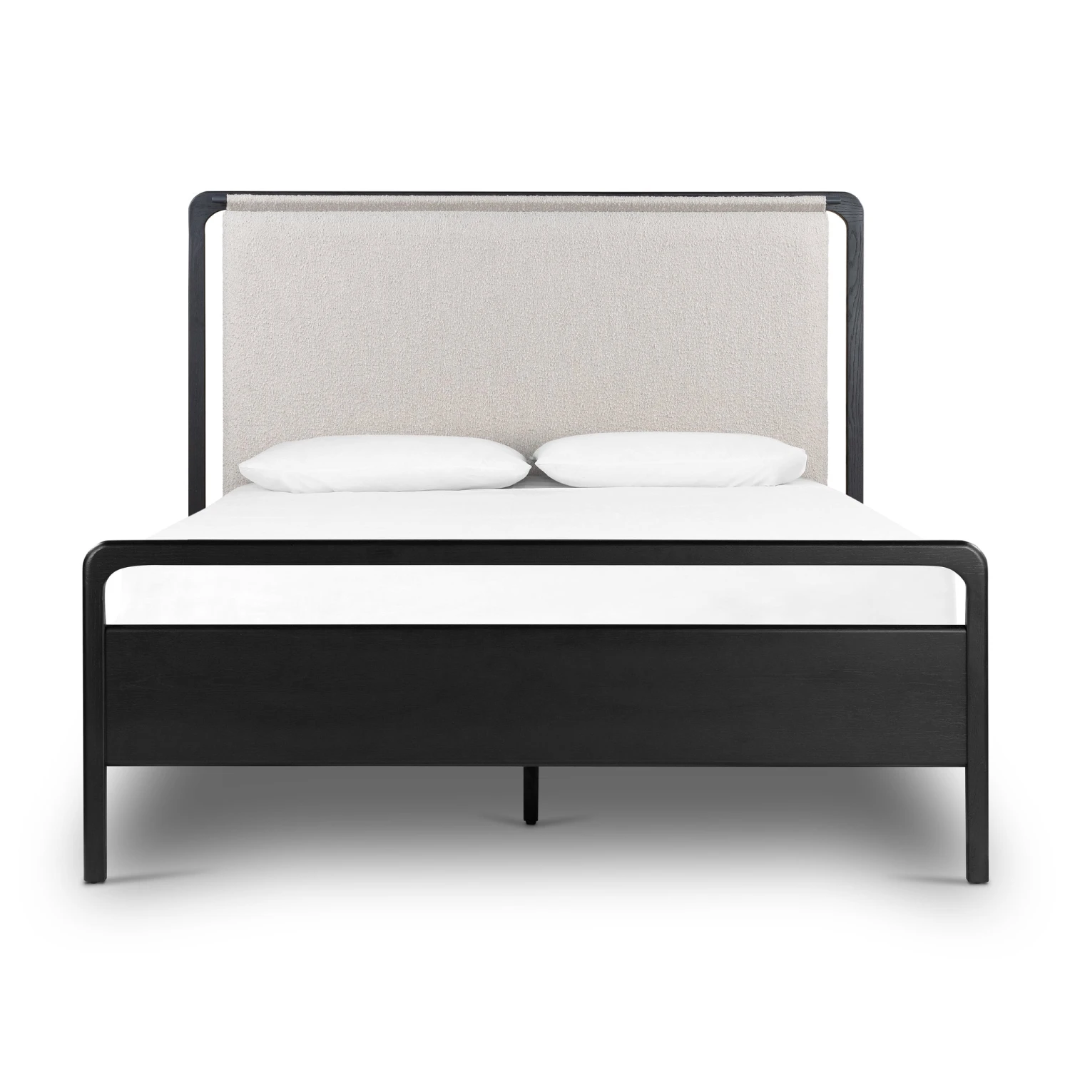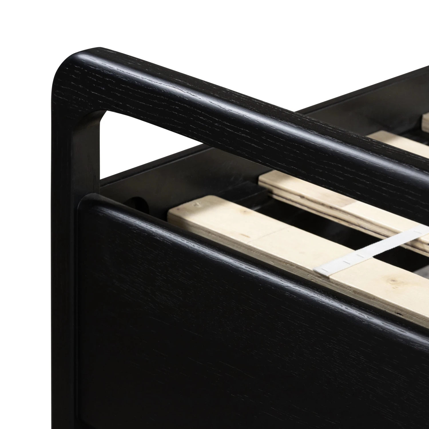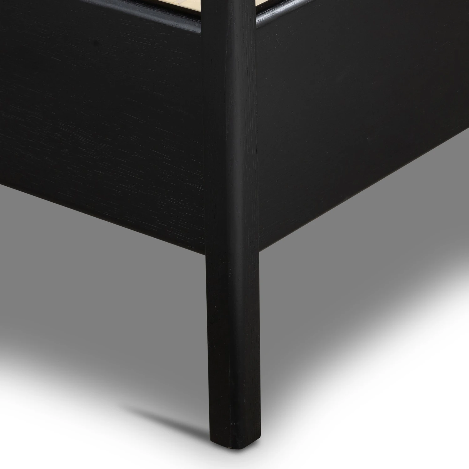 Ebony-finished oak frames a sling-style headboard made from high-performance fabric. Performance fabrics are specially created to withstand spills, stains, high traffic and wear, ensuring long-term comfort and unmatched durability. This bed is not compatible with an adjustable mattress.