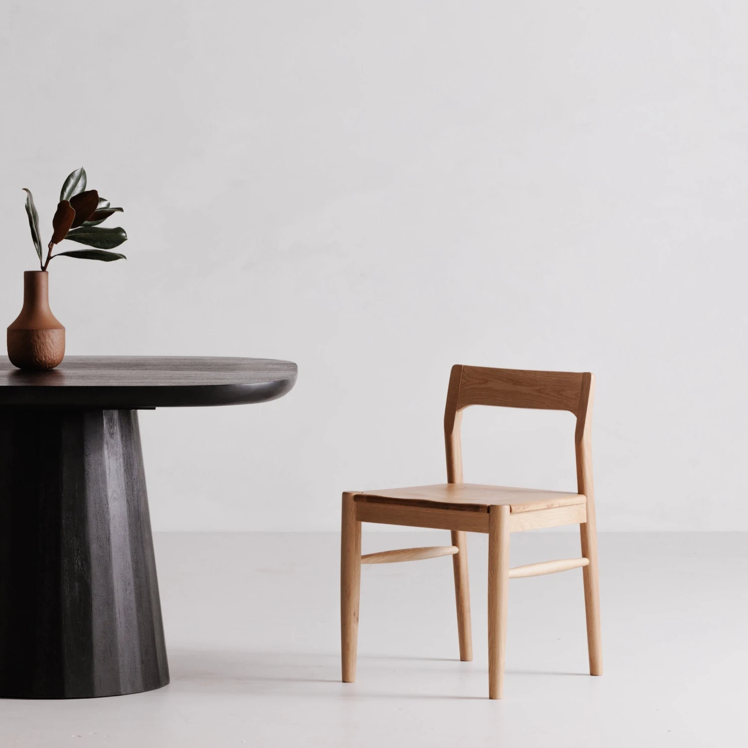 The Saskia dining chair is a sophisticated spin on the traditional. Its mid-height, curved, open-back design combines comfort with casual appeal while its solid wood frame creates a timeless, mid-century silhouette—a seat that is as distinguished as it is inviting.