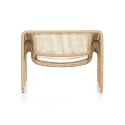 Great texture for the great outdoors. Woven all-weather wicker forms a dark, hyacinth-like frame for a durable ivory seat cushion, creating a grand, shapely look and feel. Cover or store indoors during inclement weather and when not in use.