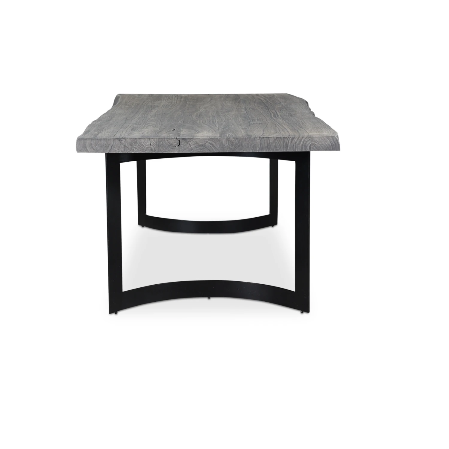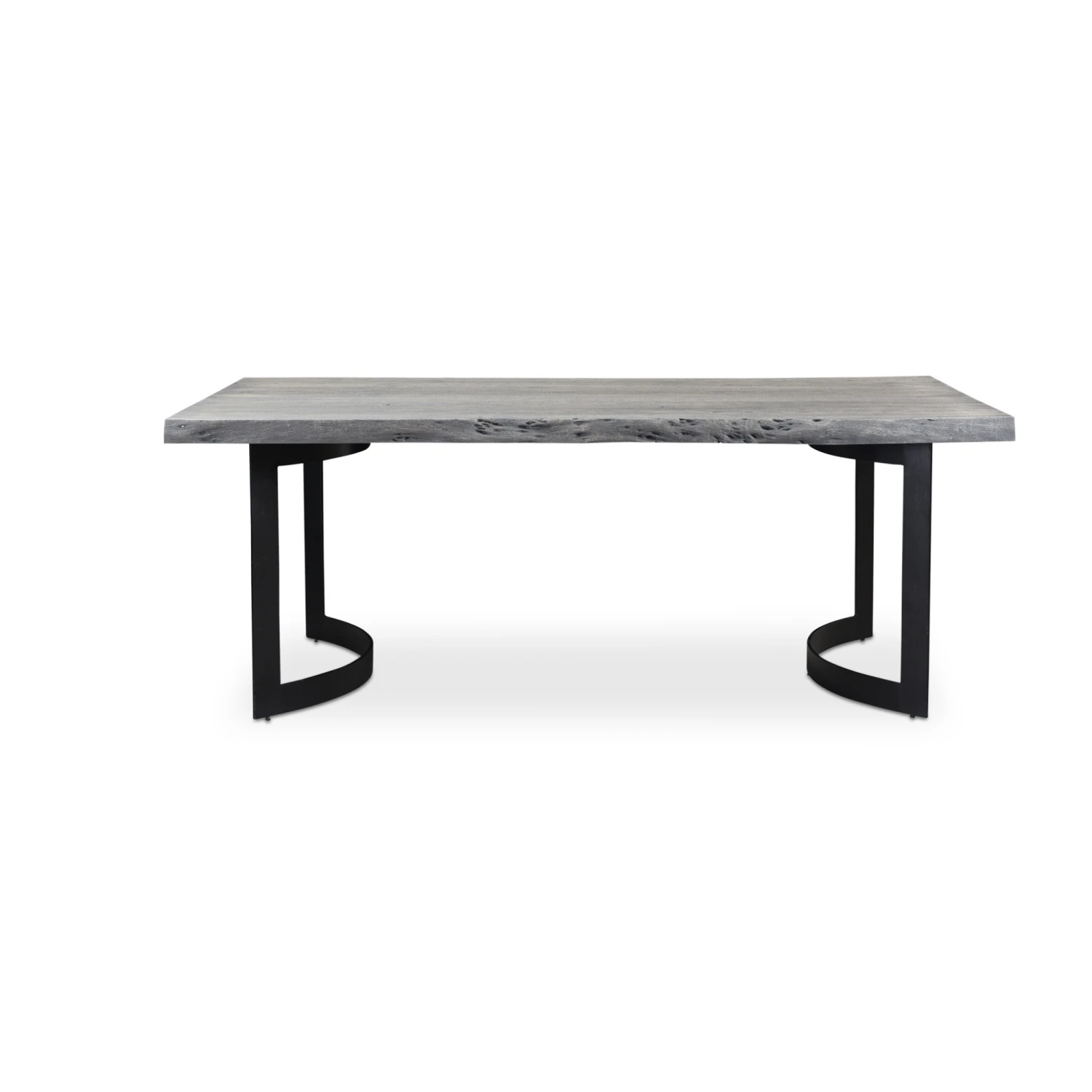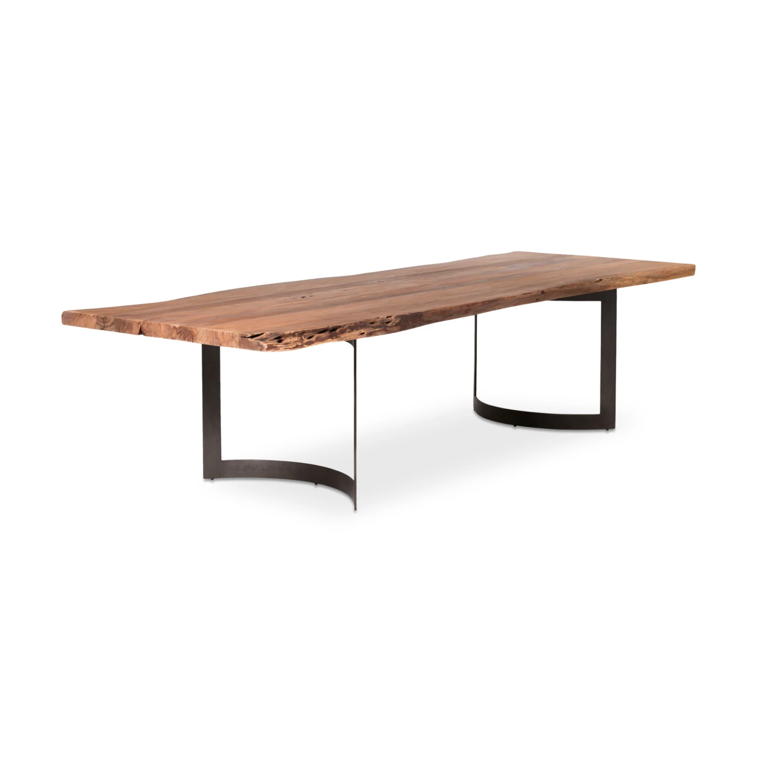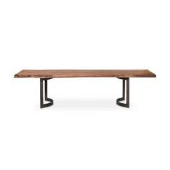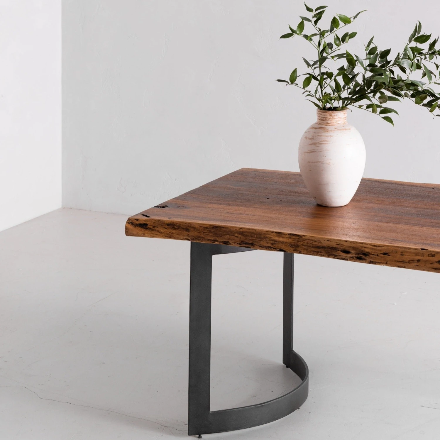 The Senna collection puts nature’s craft front and center. Made of beautiful solid acacia wood, rustic live edge detailing shows off the unique knots and whorls of the wood. This dining table’s expansive surface beautifully showcases the wood’s personality, and is offset by a sturdy industrial metal base.
