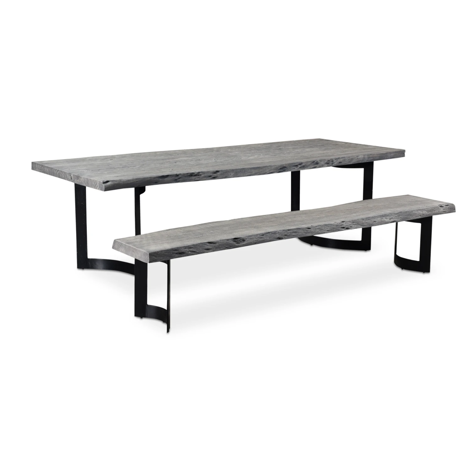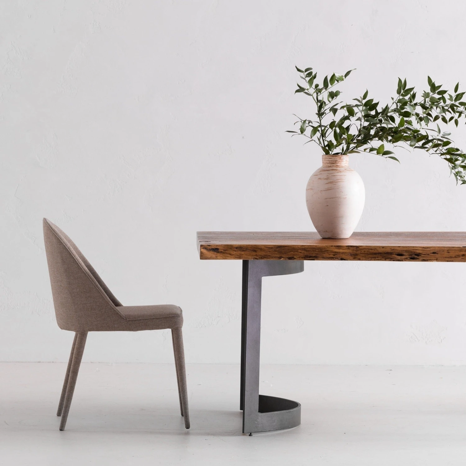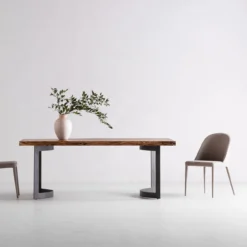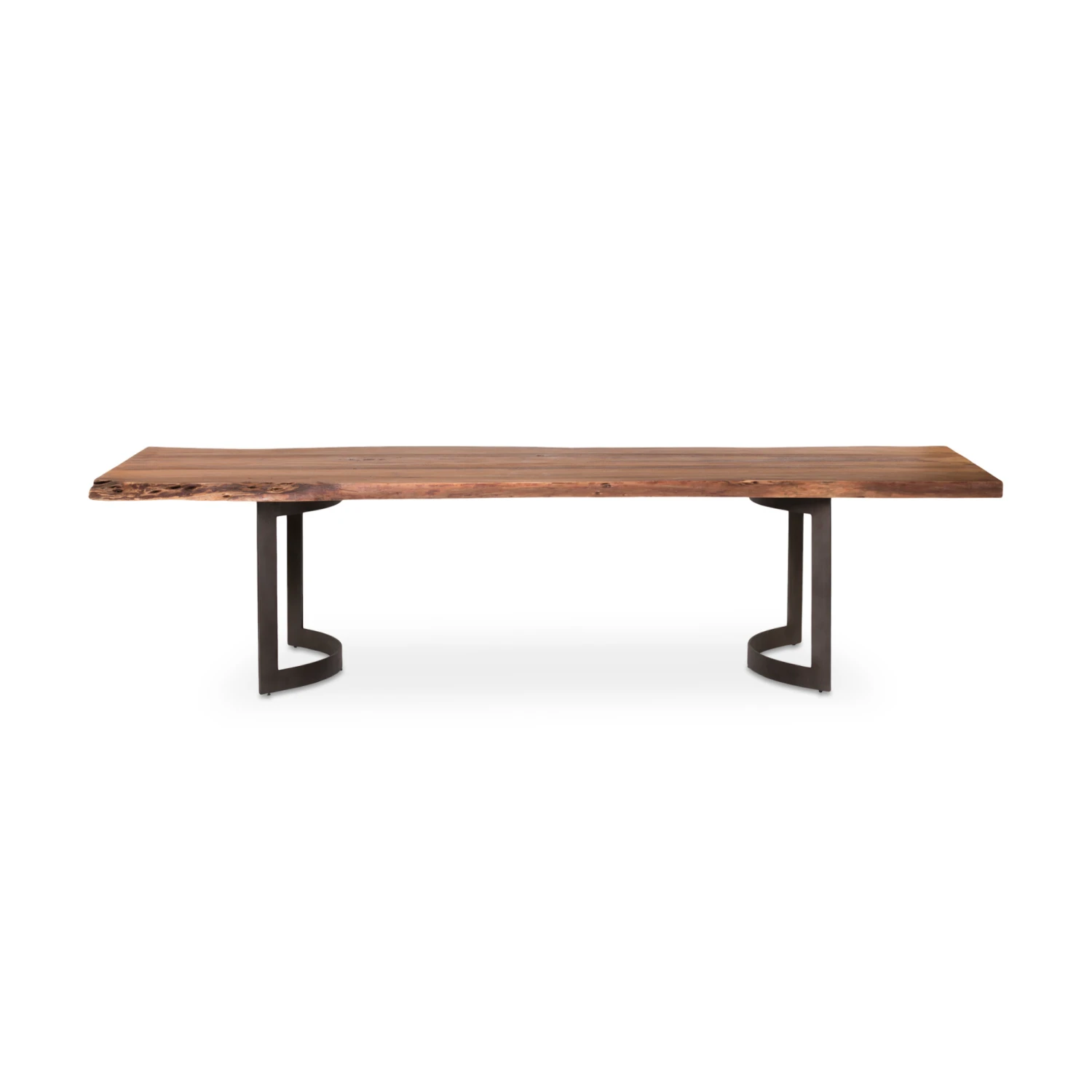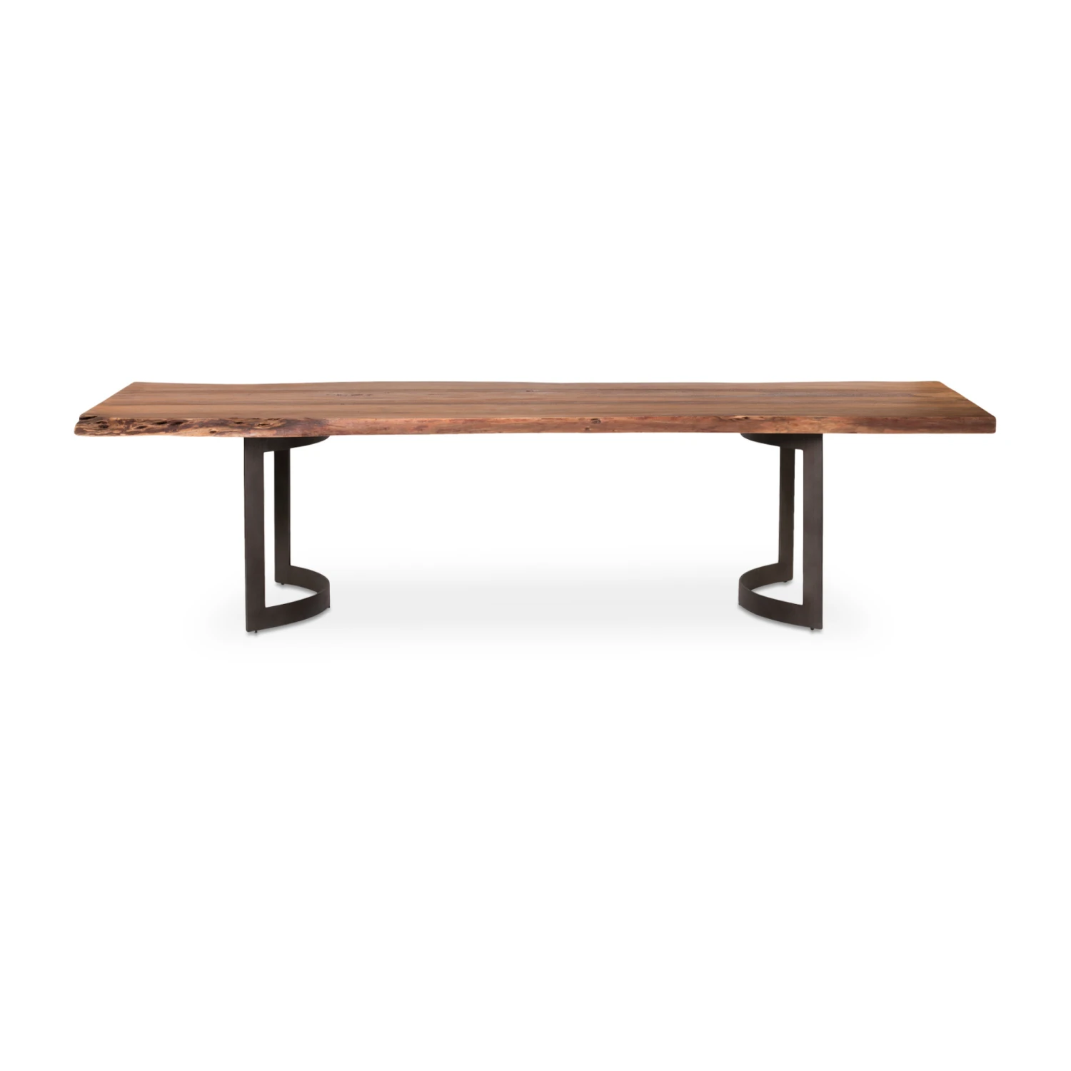The Senna collection puts nature’s craft front and center. Made of beautiful solid acacia wood, rustic live edge detailing shows off the unique knots and whorls of the wood. This dining table’s expansive surface beautifully showcases the wood’s personality, and is offset by a sturdy industrial metal base.