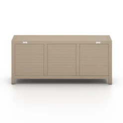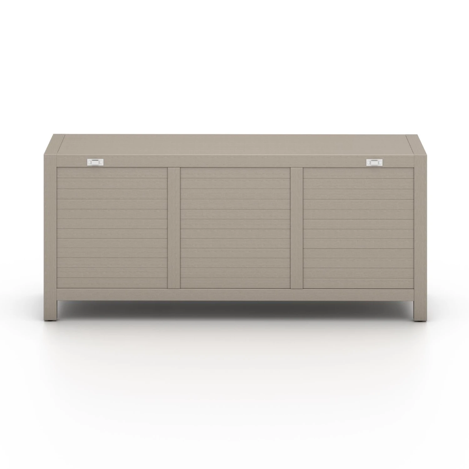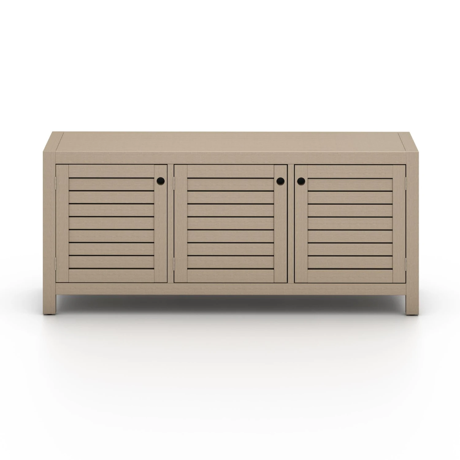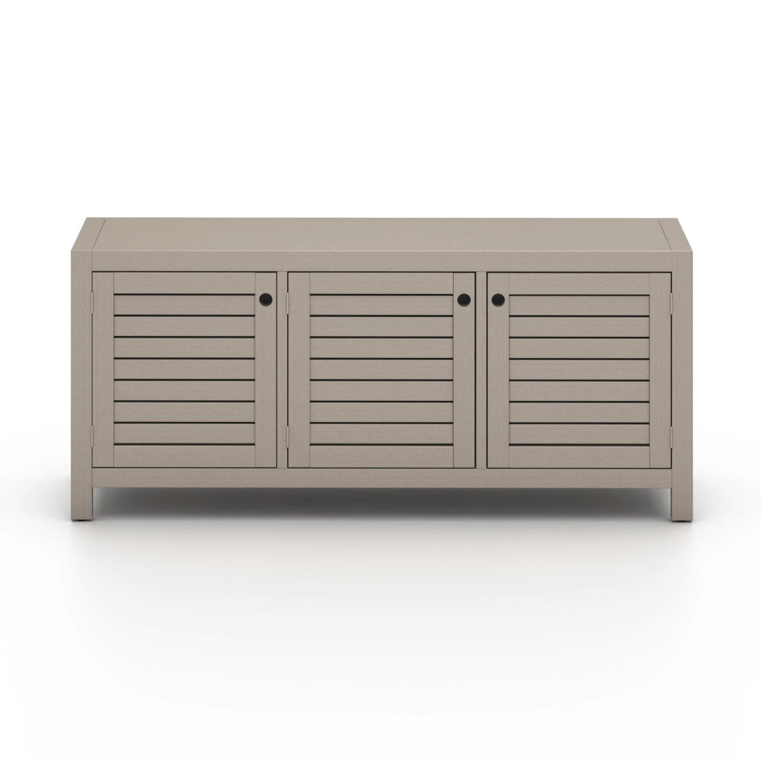 Take outdoor storage to new heights. Finished in a weathered grey, solid FSC®-certified teak forms a modern-minded sideboard, with slatted fronts for a light, linear look. Cover or store indoors during inclement weather and when not in use.