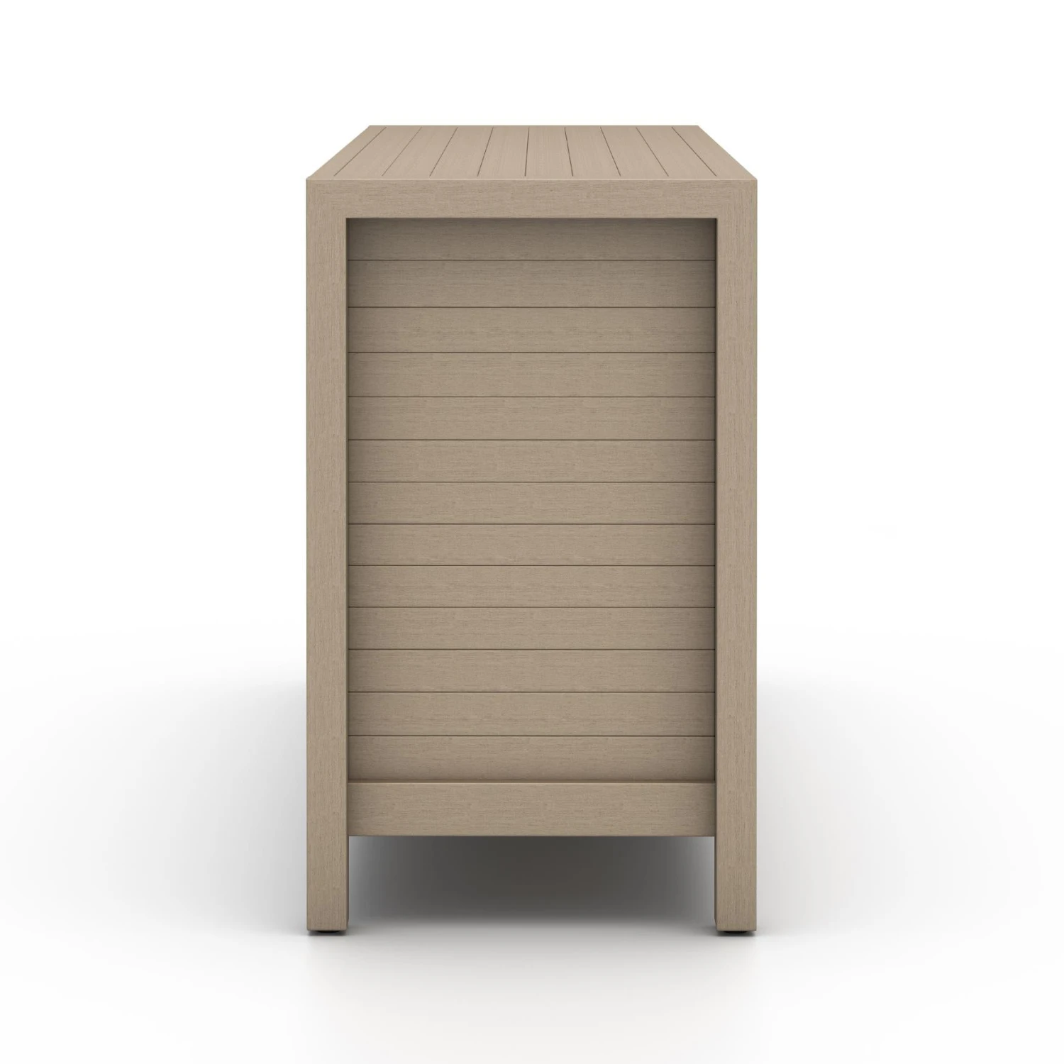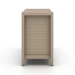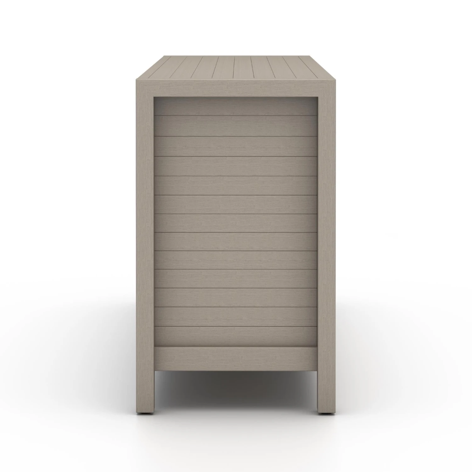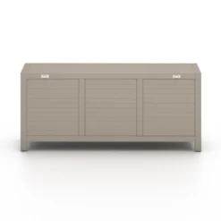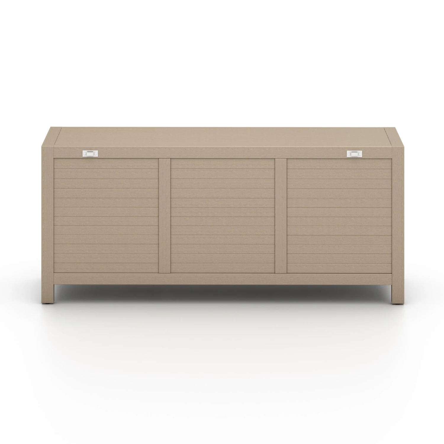 Take outdoor storage to new heights. Finished in a weathered grey, solid FSC®-certified teak forms a modern-minded sideboard, with slatted fronts for a light, linear look. Cover or store indoors during inclement weather and when not in use.