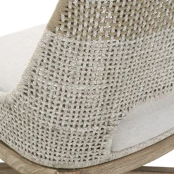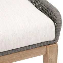 - Materials: Solid Mahogany Wood, Powder Coated Steel, Polyolefin Rope, 100% Olefin Fabric, Foam