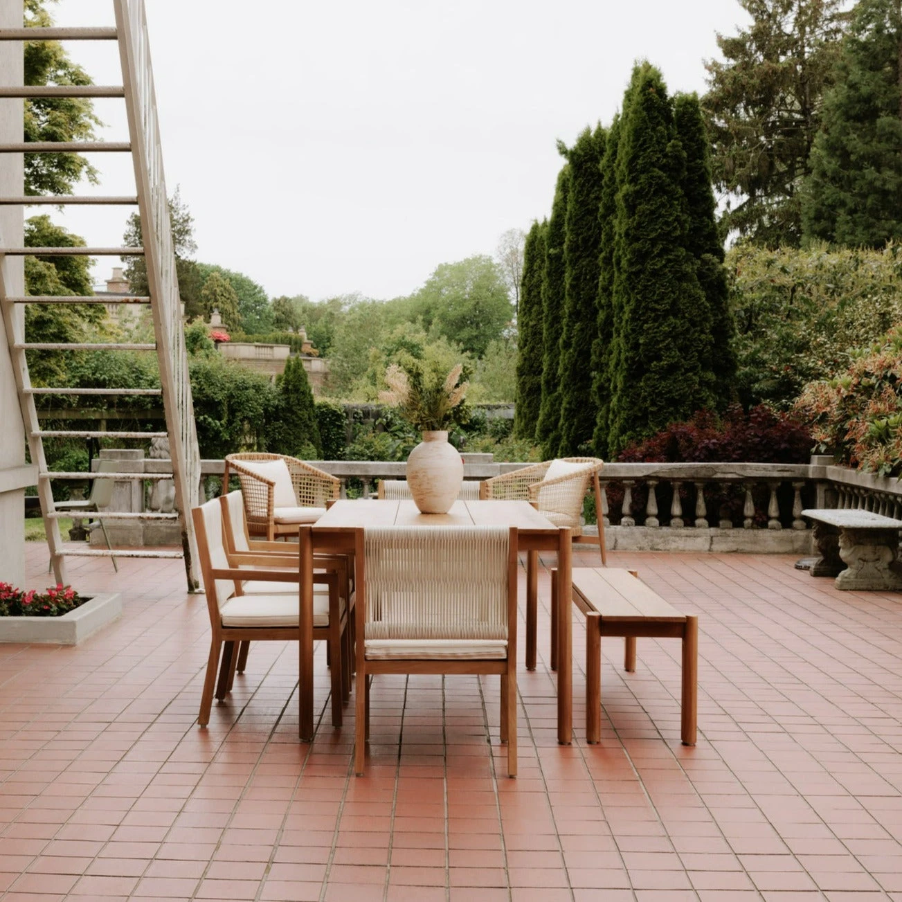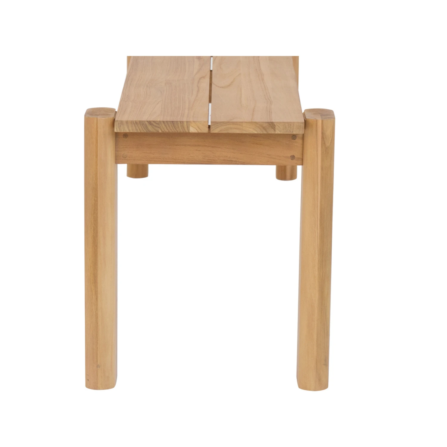 - Solid teak that turns in a darker patina over time