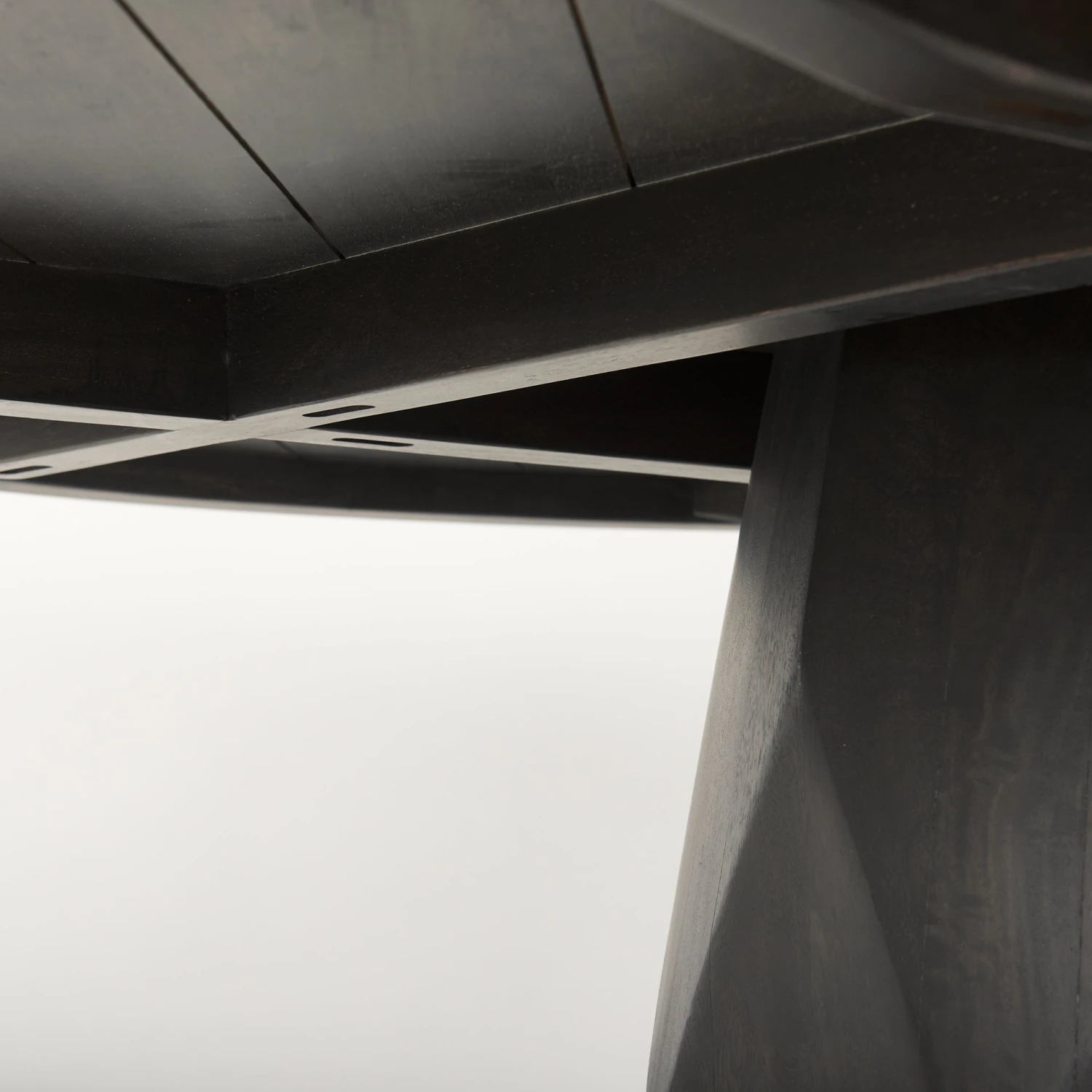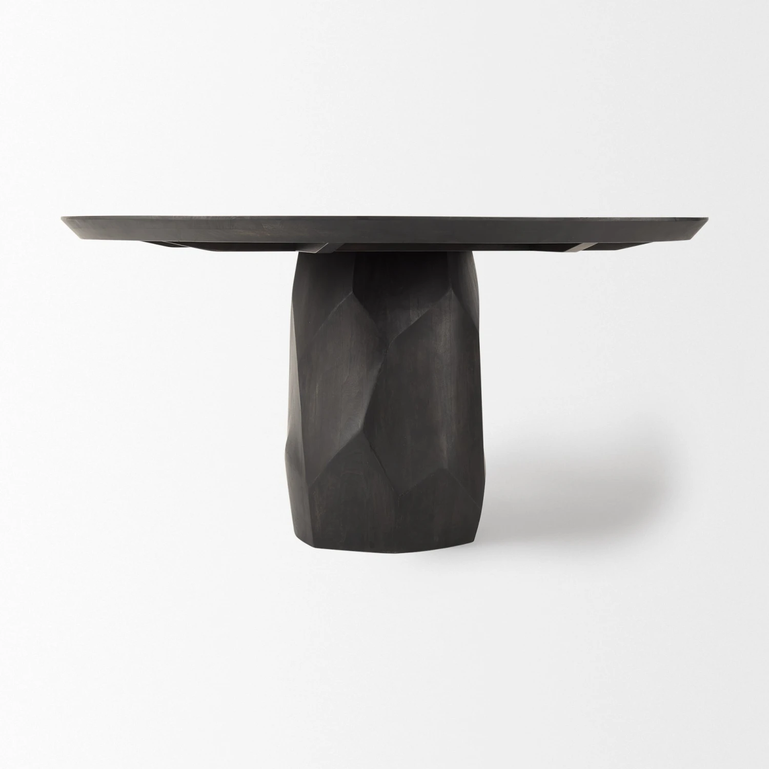 The Fitzgerald is the perfect round dining table for your home, featuring the right amount of subdued drama with its dark finish and sleek look.